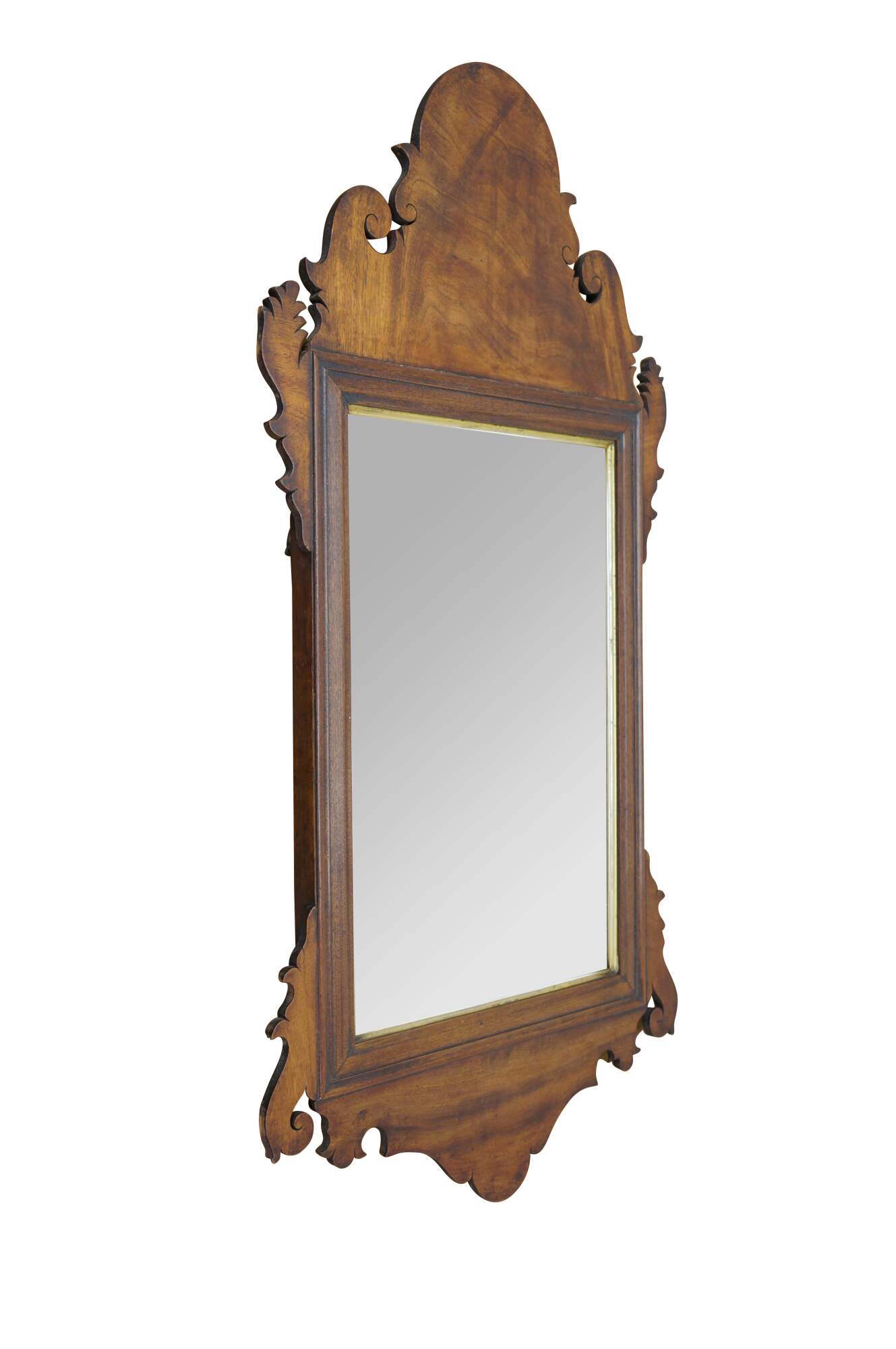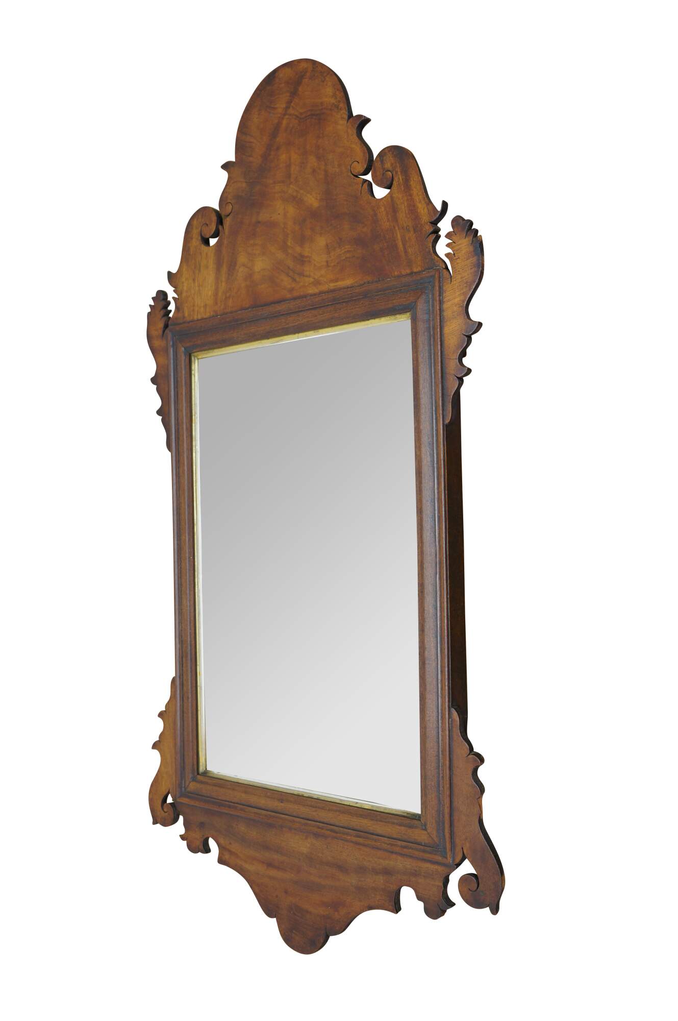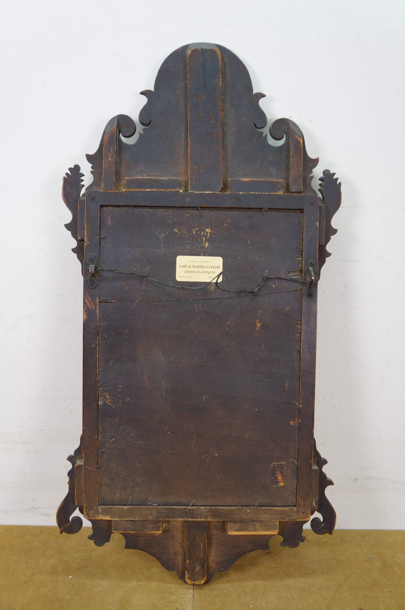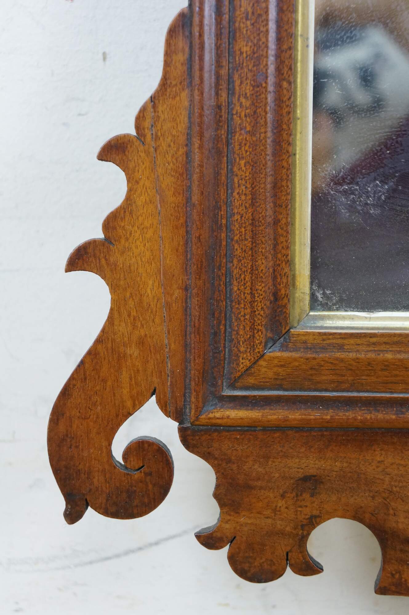 Antique 18th century Chippendale wall mirror attributed to John Elliot & Sons of Philladelphia. It features a beveled frame accented with broad carved fret and a gilt inner edge.