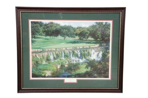The Hills of Lakeway is a member only club featuring two Jack Nicklaus signature courses. The print is professionally framed with a green mat and mahogany tone trim.