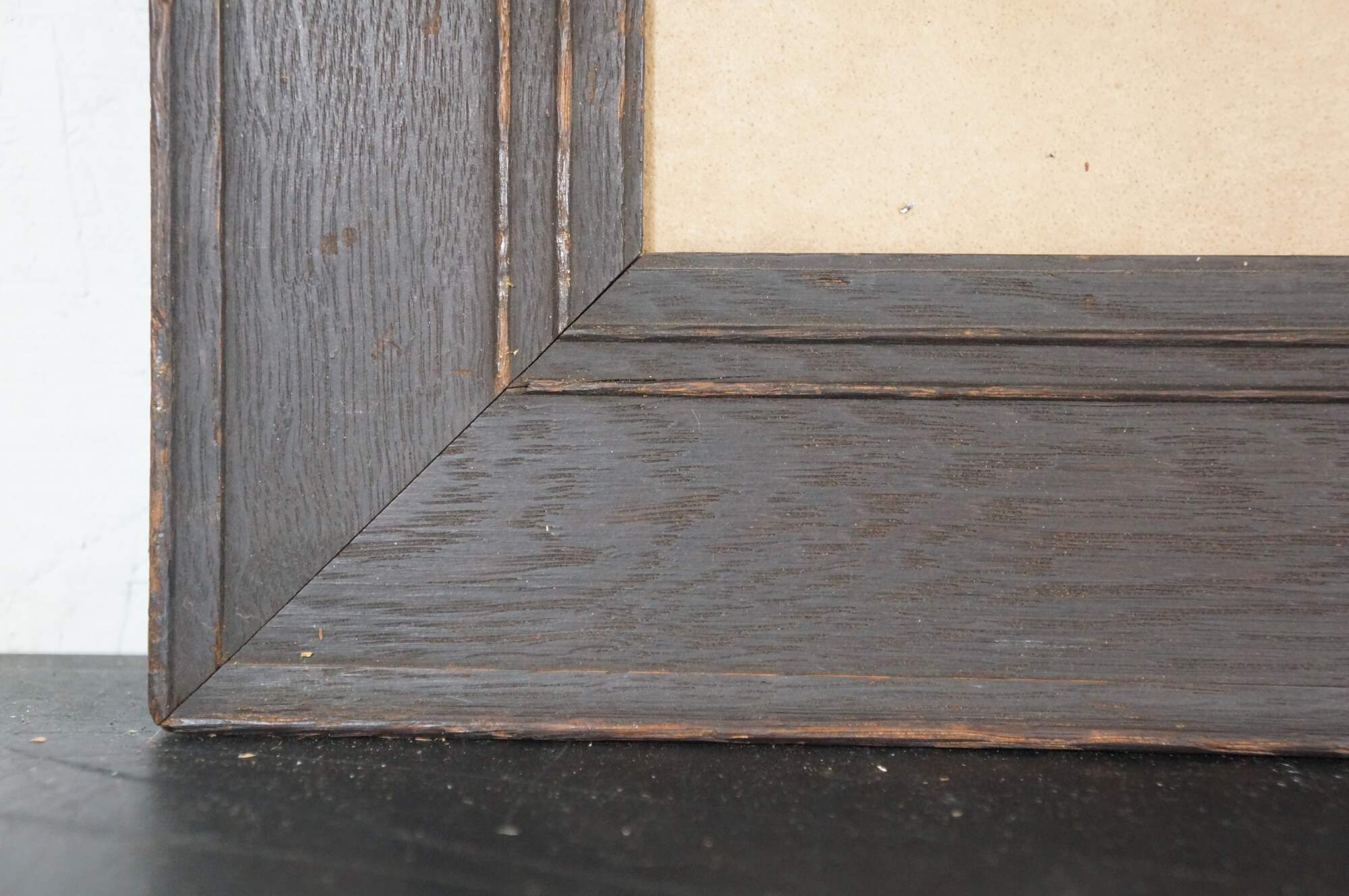 foxing / discoloration; damage/discoloration to mat; wear to frame; no glass
