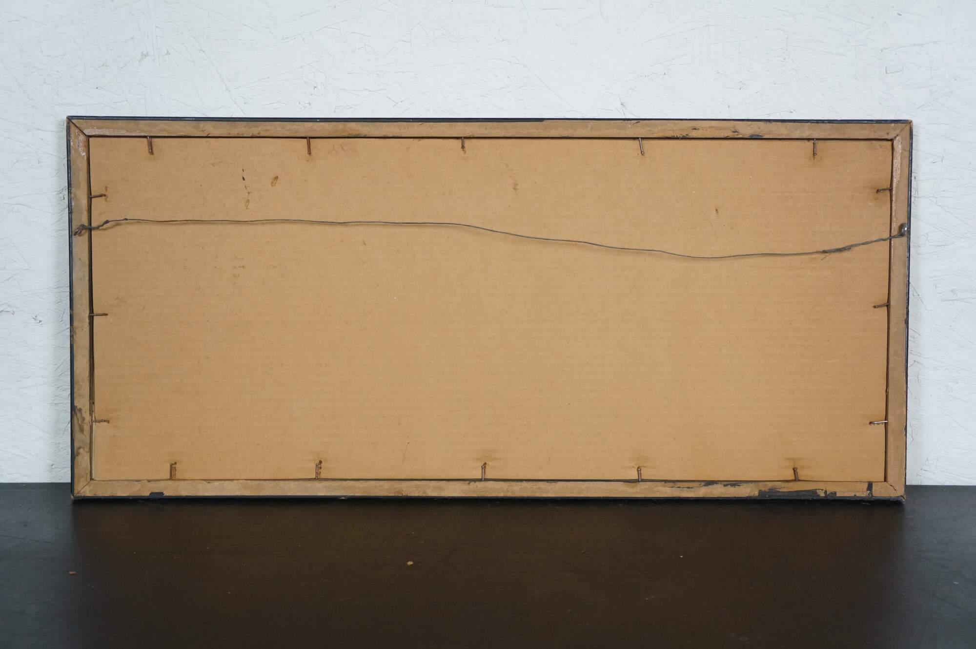 Wear to frame; no glass; small tear to print/mat; discoloration / foxing.