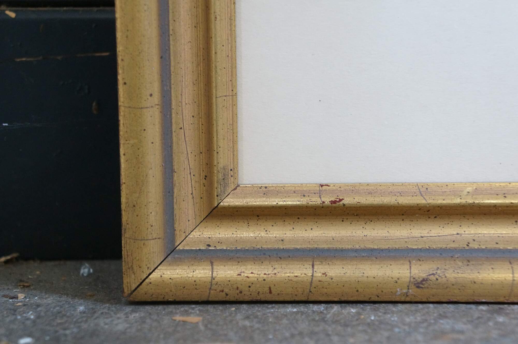 Wear to frame; no glass; foxing / discoloration to mat/print; scrape to print