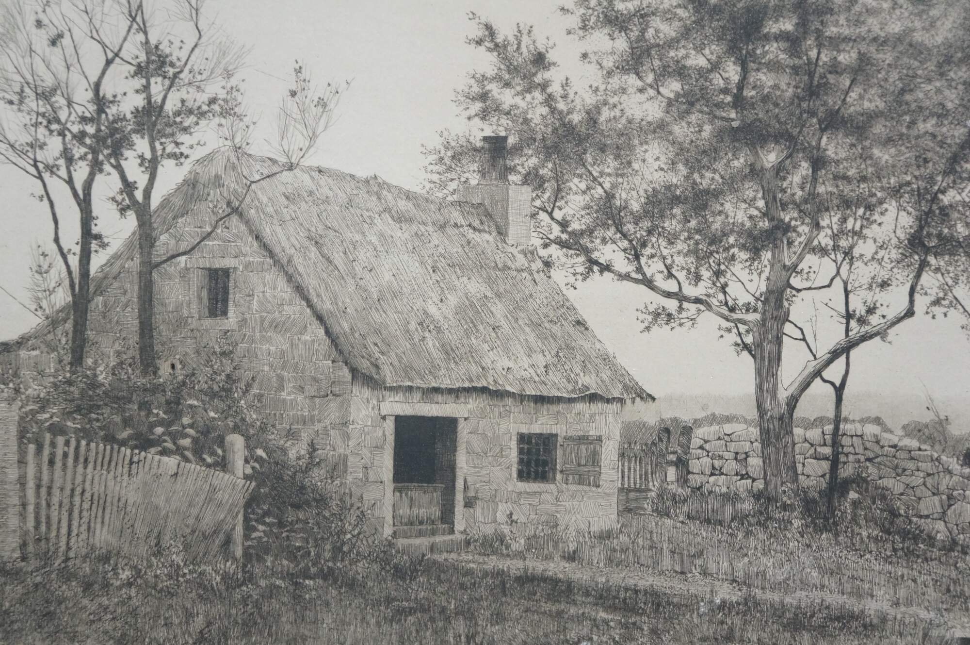 Antique John Octavius Anderson Signed Dear Sweet Spot Home Etching 37"