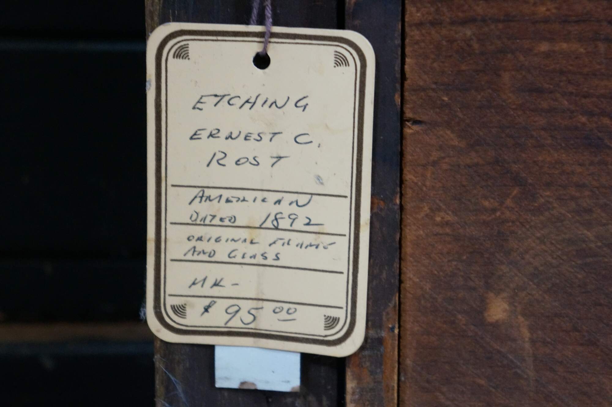 "Ernest Christian Rost - American, 1866 - 1940 - Ernest was born January 20, 1866, at Mt. Vernon, N.Y. and was probably the son of Christian Rost (a locally known engraver) and Minna M. Rost. Nothing is known of his childhood except he was the fourth of six children in the family. By the mid-1880's E.C. Rost was exhibiting landscapes in oil at the National Academy of Design, New York City. After 1887 his oil painting stopped and by 1891 etching became his primary occupation. Today, the Library of Congress (Prints and Photographs Division) maintains 63 etchings signed 'Ernest C. Rost' or 'E. C. Rost', with dates running from 1891 to 1896. These often portray country lanes, cottages, rural scenes, sea, river and bayside settings, mostly in New York State, but several depict homes of famous statesmen and writers. With the outbreak of the Spanish-American War, Rost was sent by the U.S. War Department to Cuba, Puerto Rico, the Philippines, and Guam as a civilian photographer of military operations and installations. Today, 21 photographs taken by E. C. Rost of these islands are held by the National Archives (Audio-Visual Division), while still another 26 photographs, all of Cuba, are held by the Library of Congress. In 1894 he sued his agents, Fishel, Adler and Schwartz Co. for the sale of his etchings as artist's proofs to which his signature had been forged. He went to the shop and bought 2 of these fo $.90 each, whereas Ernest testified that they were worth $5 each. He was so angered by the lawsuit experience that he never again etched. By 1898 Rost had apparently given up etching and entered photography full-time. Still, photography was not his only occupation during this time period, for he began writing, too. Between 1899 and 1900, at least 7 articles by Rost appeared in the popular 'Leslie's Illustrated Weekly Newspaper'." (Source: Iowa State University Museum)