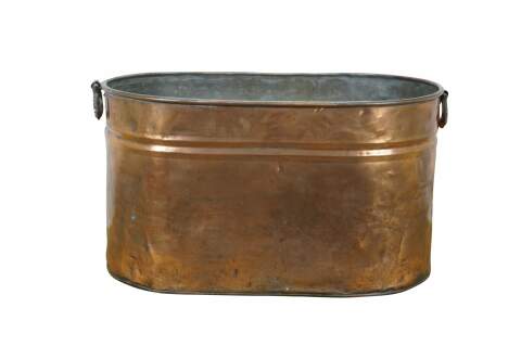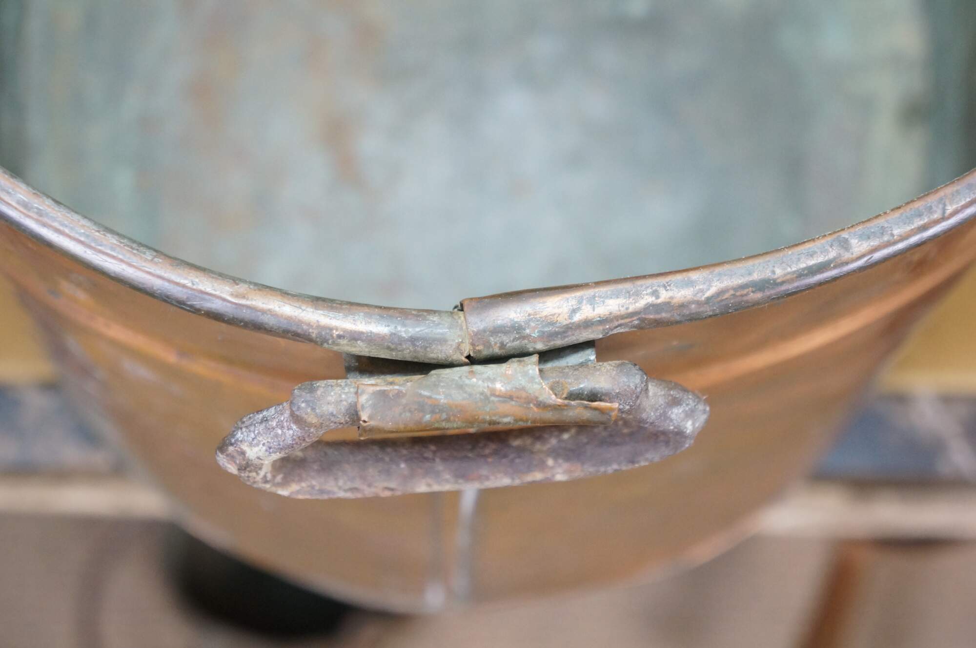 Circa early 20th century oval shaped galvanized copper boiler / wash tub with rotating iron handles.
