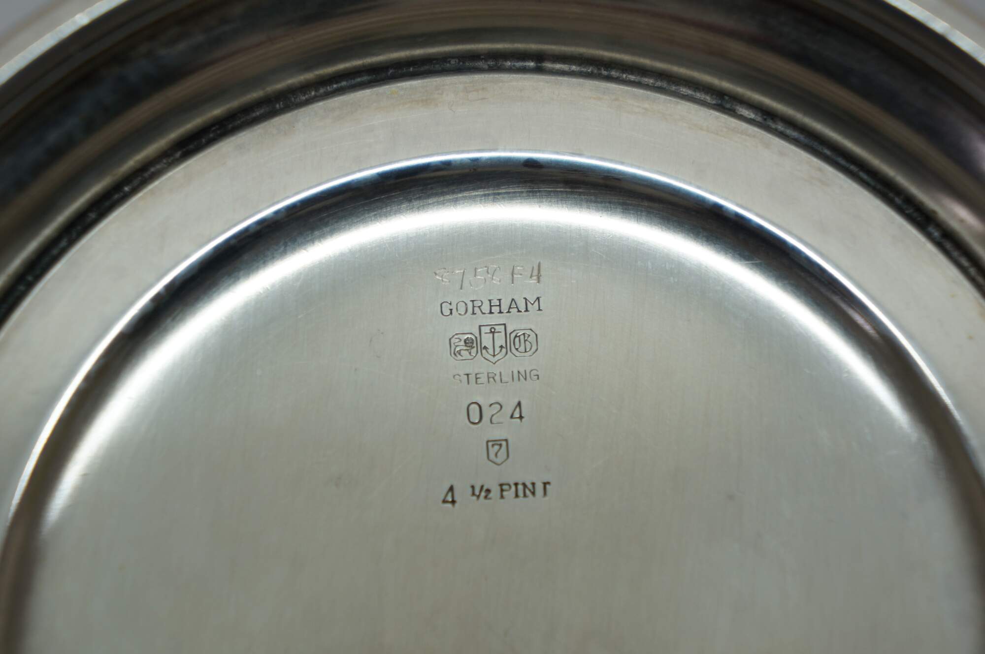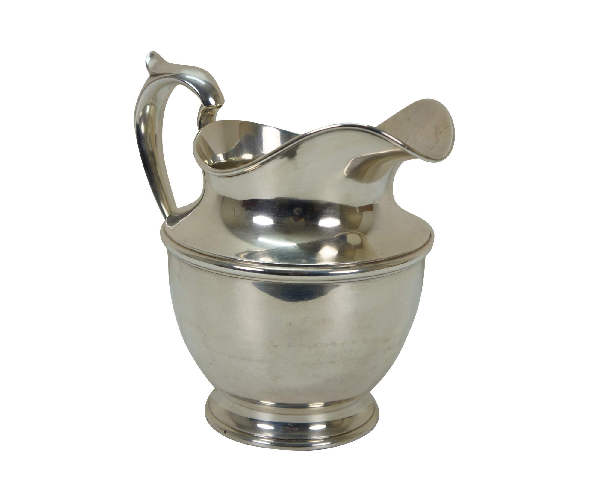 Mid 20th century Gorham number 024 sterling silver water pitcher. 4 1/2 Pints (or 86.5 ounce) Capacity. Simple colonial / Georgian inspired design. Introduced circa 1951.