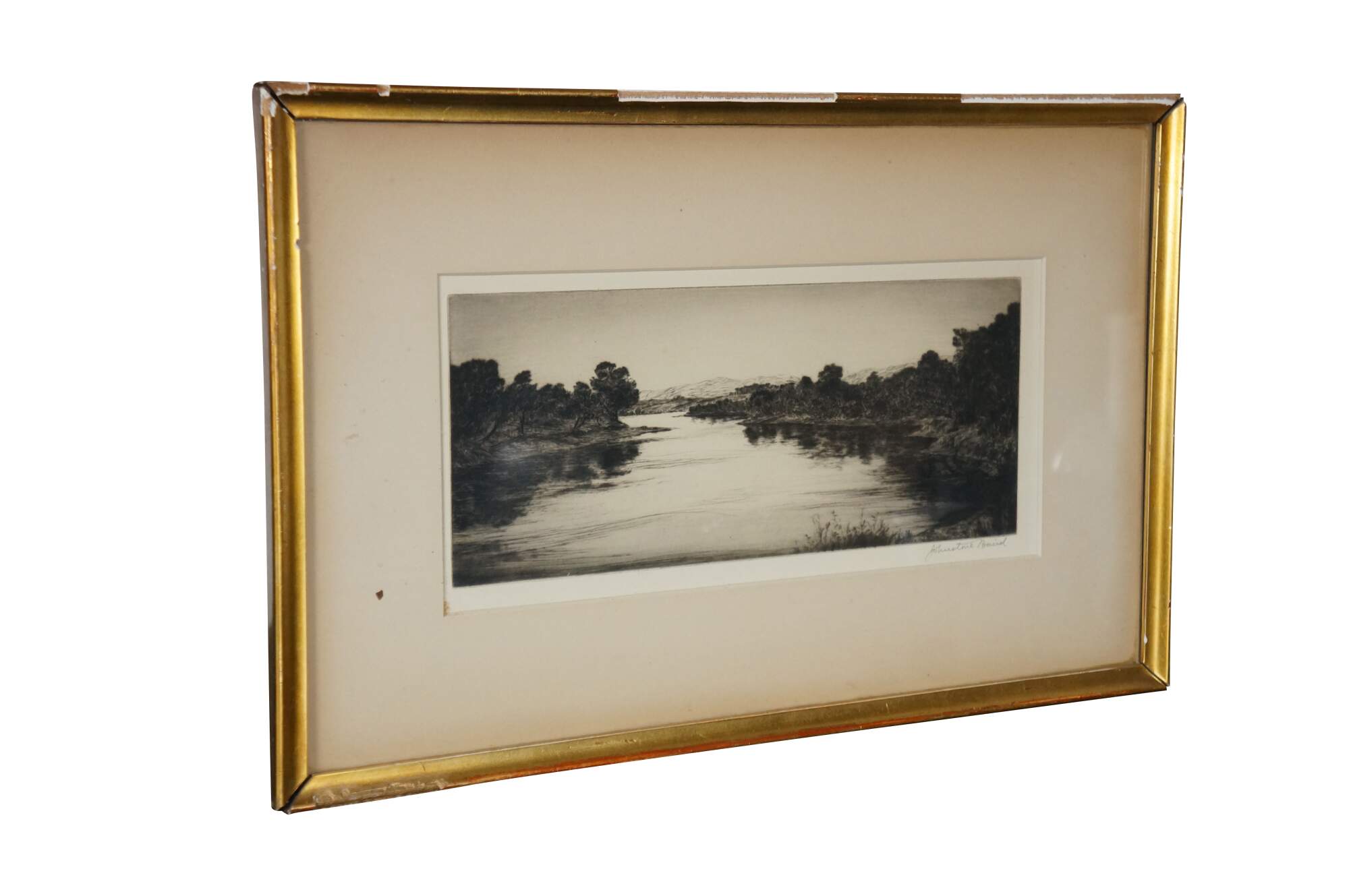 Antique Scottish Johnstone Baird Signed Perthshire Riverscape Etching 19"