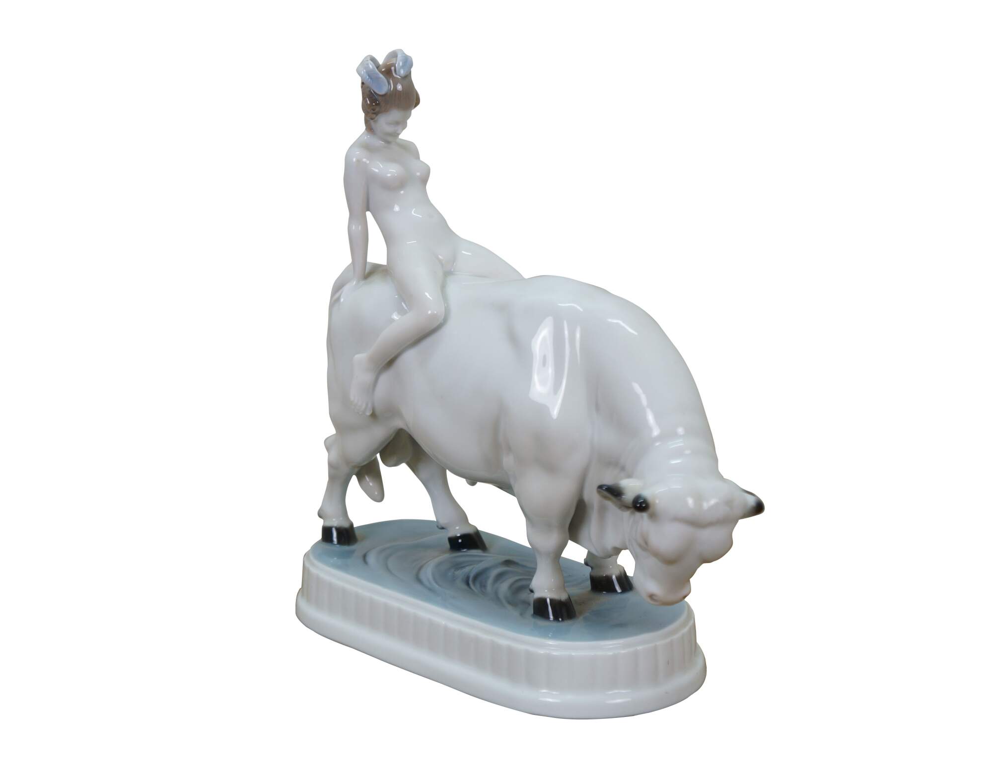 Rare antique Art Deco c.1921 Rosenthal porcelain figurine depicting Europa and the Bull, designed by Adolf Opel. H 603/2 incised on base. Green stamp.