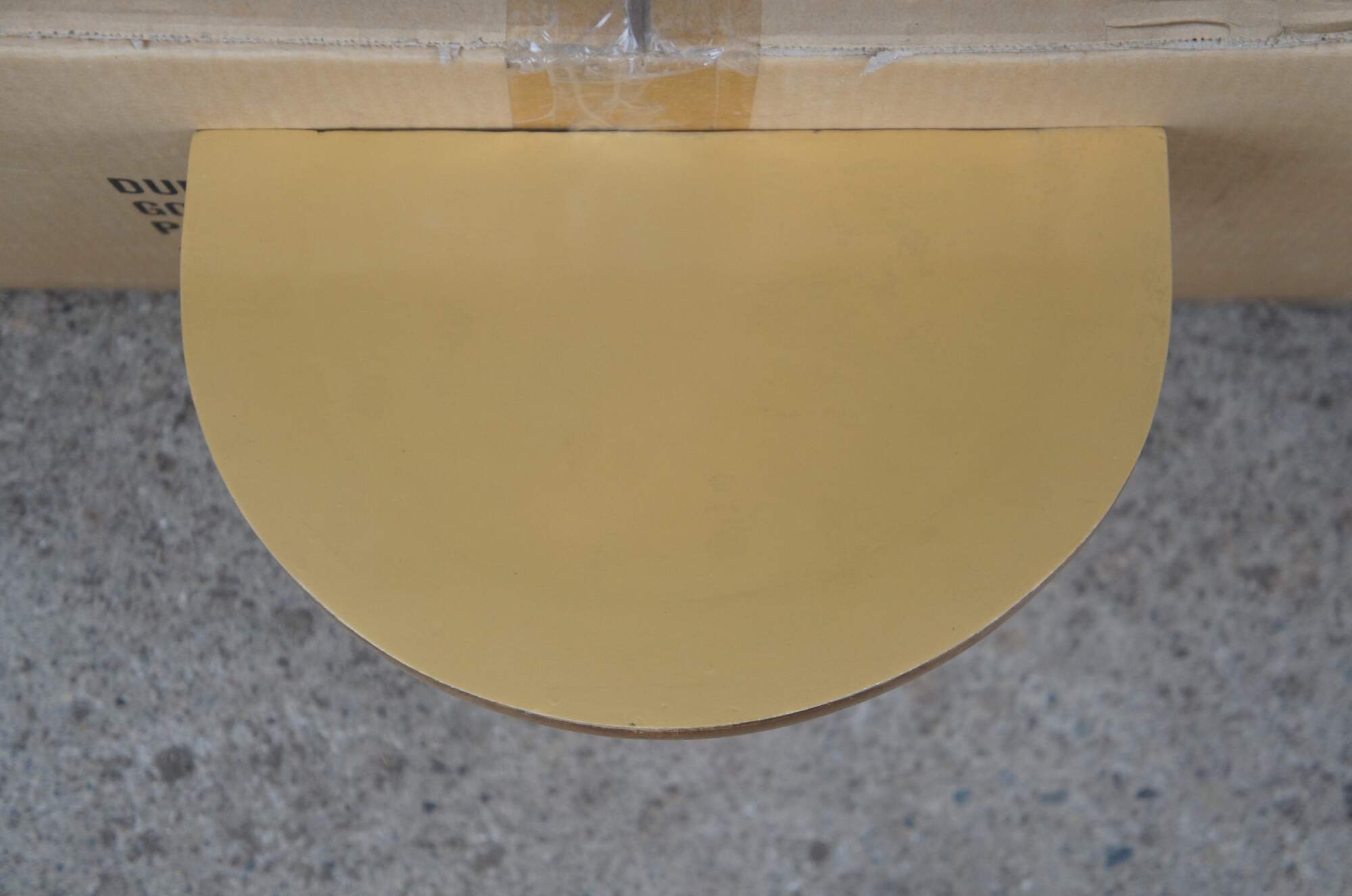 Early 21st century gilt composite wall brackets / sconces / shelves, featuring tapered torch-shaped bases with a pineapple and acanthus leaf motif, with a scalloped edge demilune / half-round top.