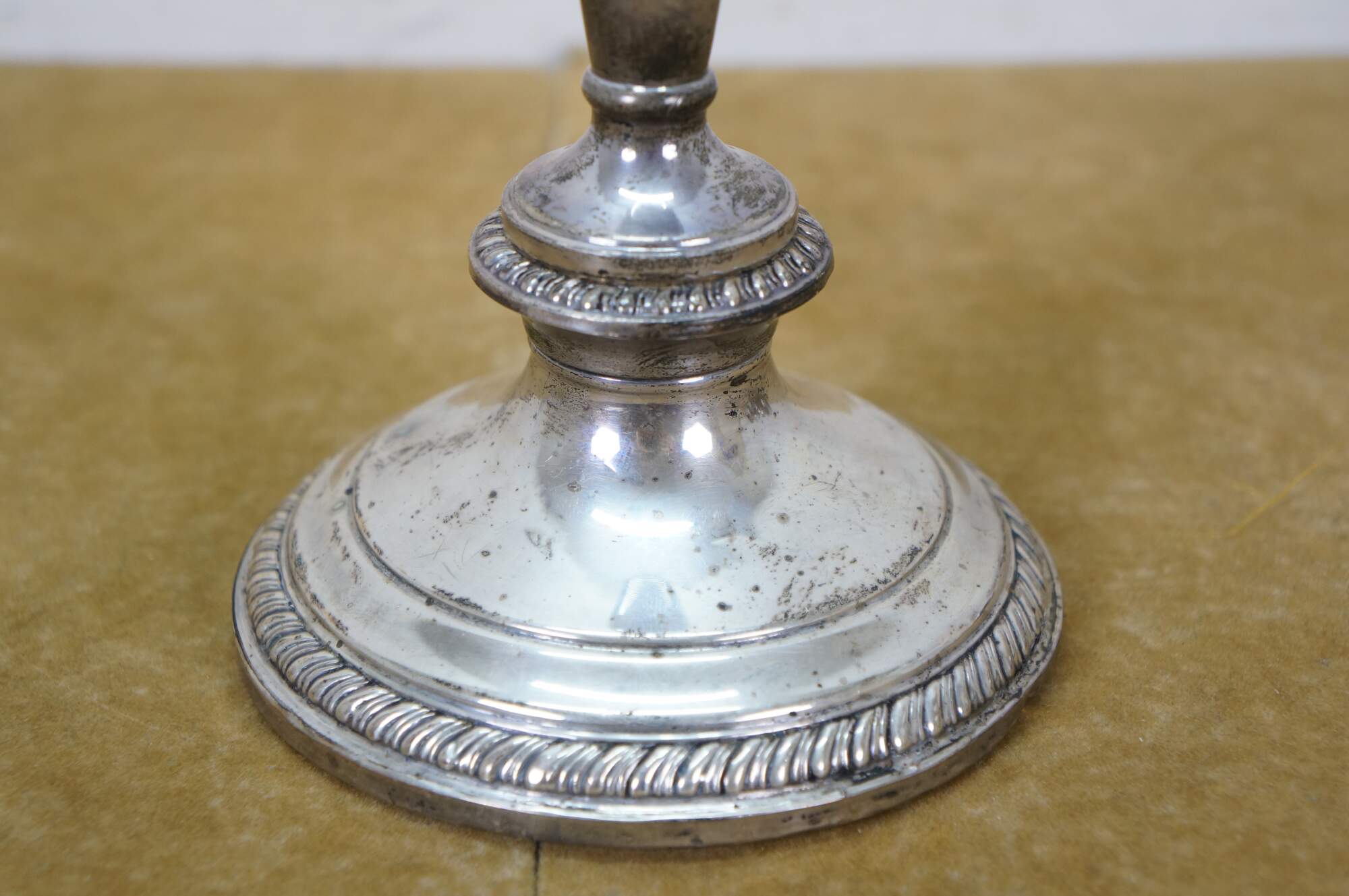 Vintage weighted sterling silver three piece / convertible number 752 candelabra by Poole Silver Company. Traditional form with rope twist details, three light top with twisted arms that can be switched out for a single candle cup. For parts or use as a single short or tall candlestick.