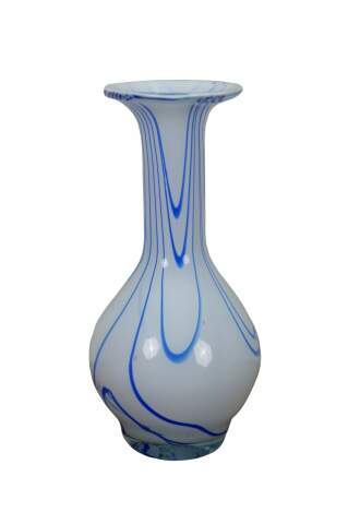Vintage Hand Blown Art Glass White & Blue Swirl Flower Bud Vase 9"