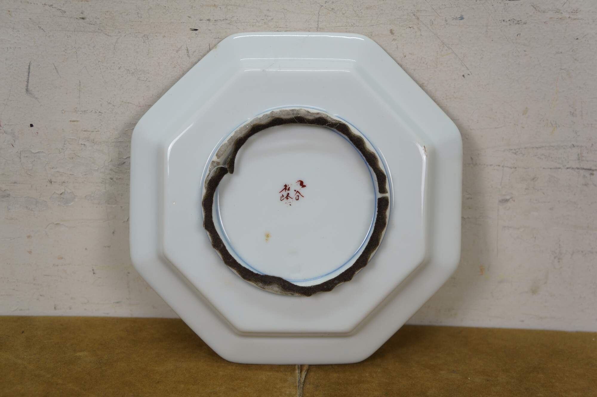 Chinese Chinoiserie Octagonal Porcelain Floral Lilies Plate Dish 7"