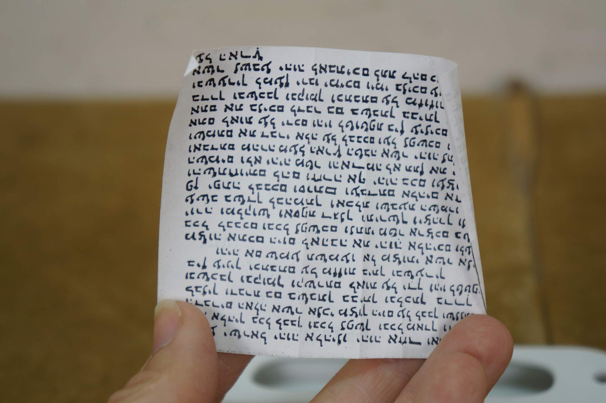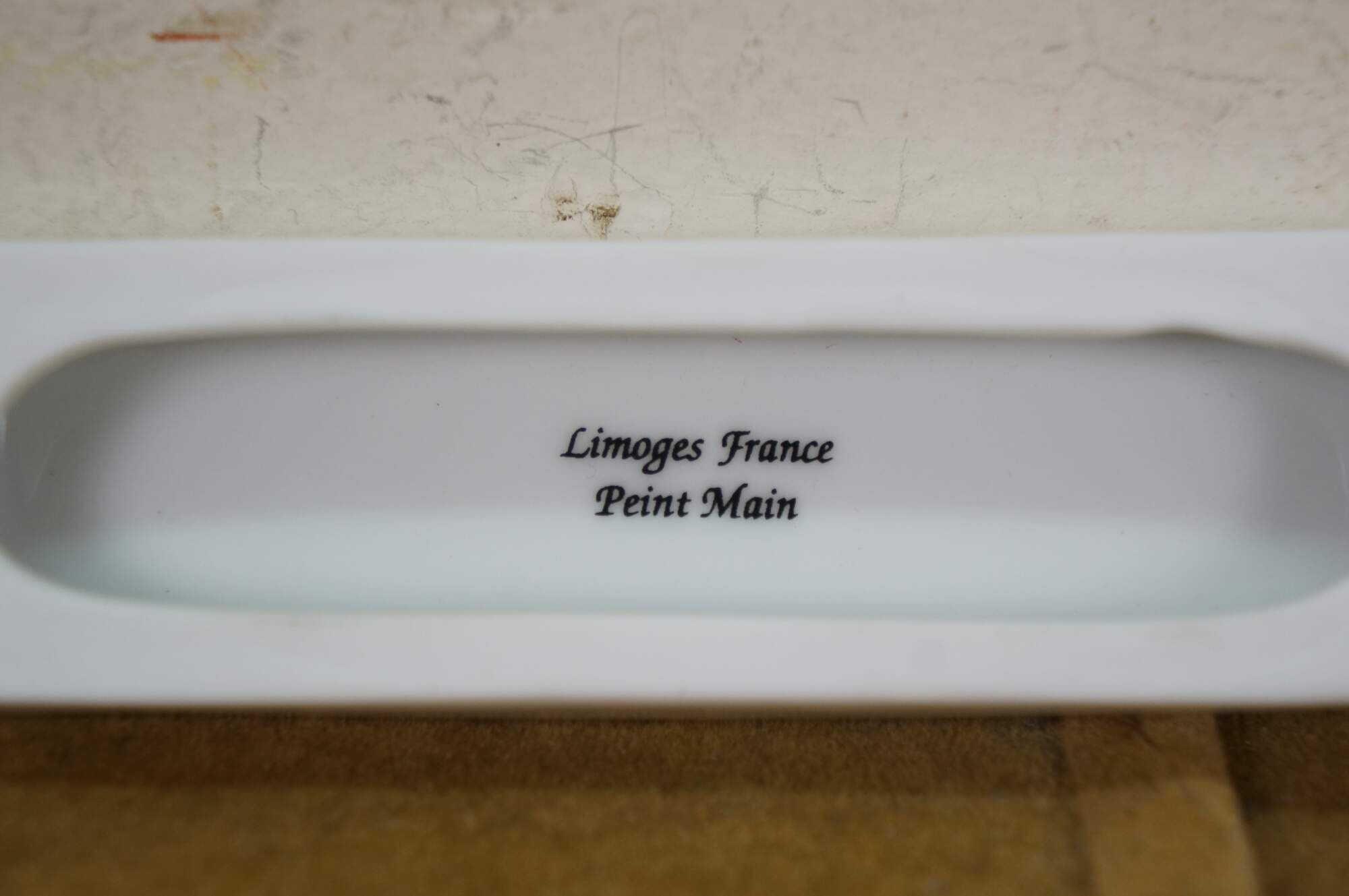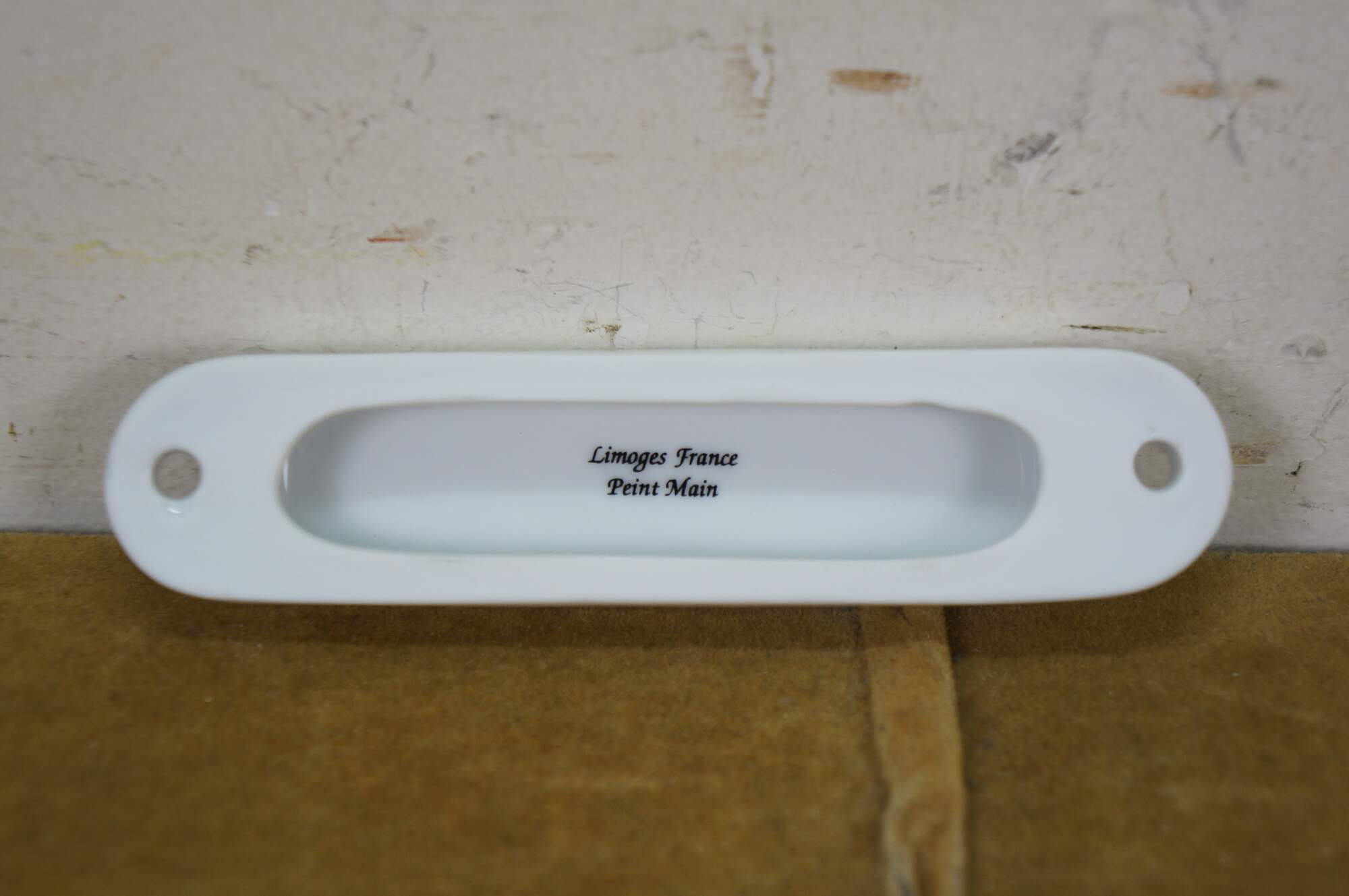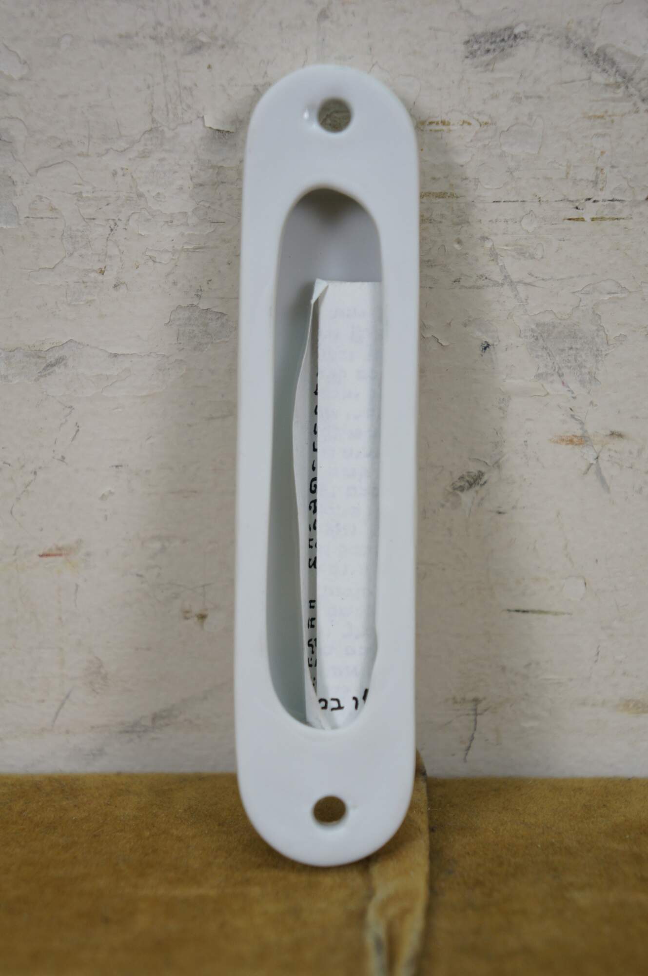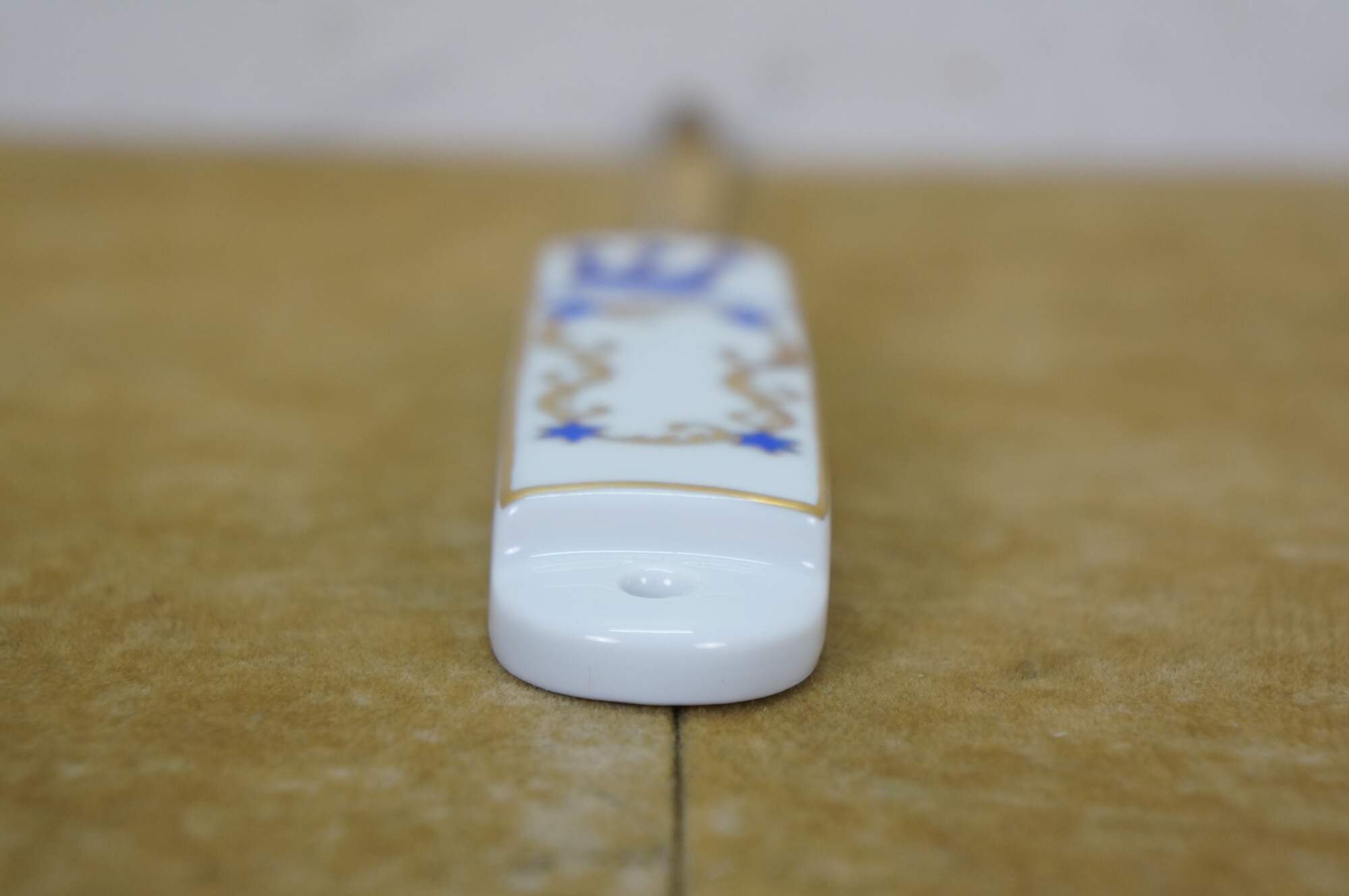 Vintage Rochard Limoges France white porcelain mezuzah case, hand painted in blue and gold. Includes prayer scroll.