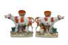 Pair of late 19th century Staffordshire porcelain flatback spill vase figurines depicting red and white cows, standing by a tree triunk and being milked by milkmaids with green buckets.