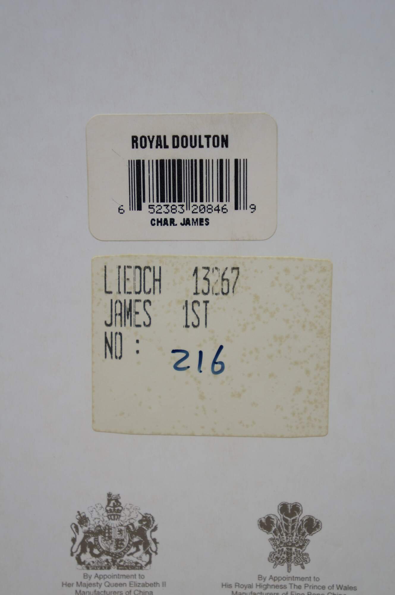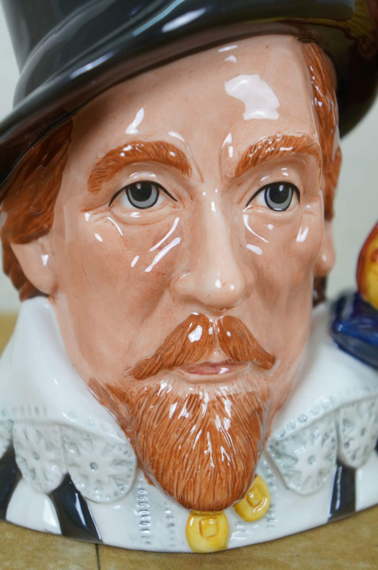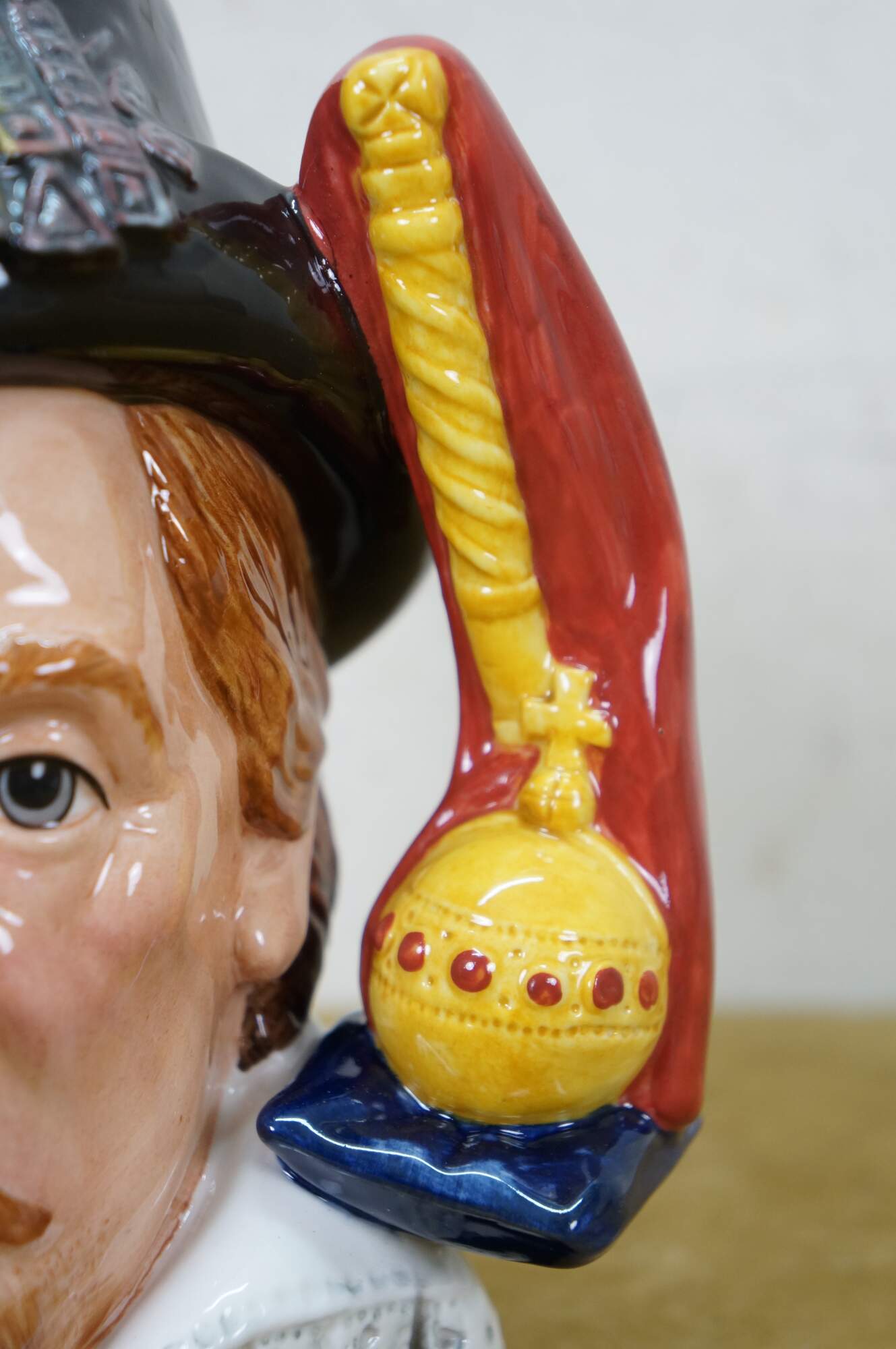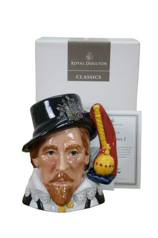 Vintage 2002 Royal Doulton Classics porcelain character jug number D7181, "King James I." Modelled by Valerie Annand. Limited Edition number 216/1000. Made in England. To Commemorate the 400th Anniversary of the Accession to the Throne 1603. Includes original box and Certificate of Authenticity.