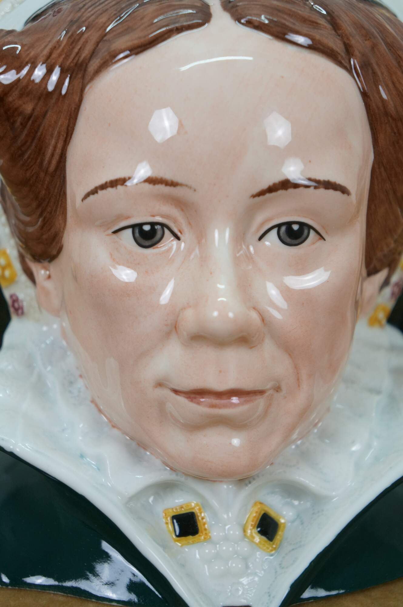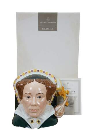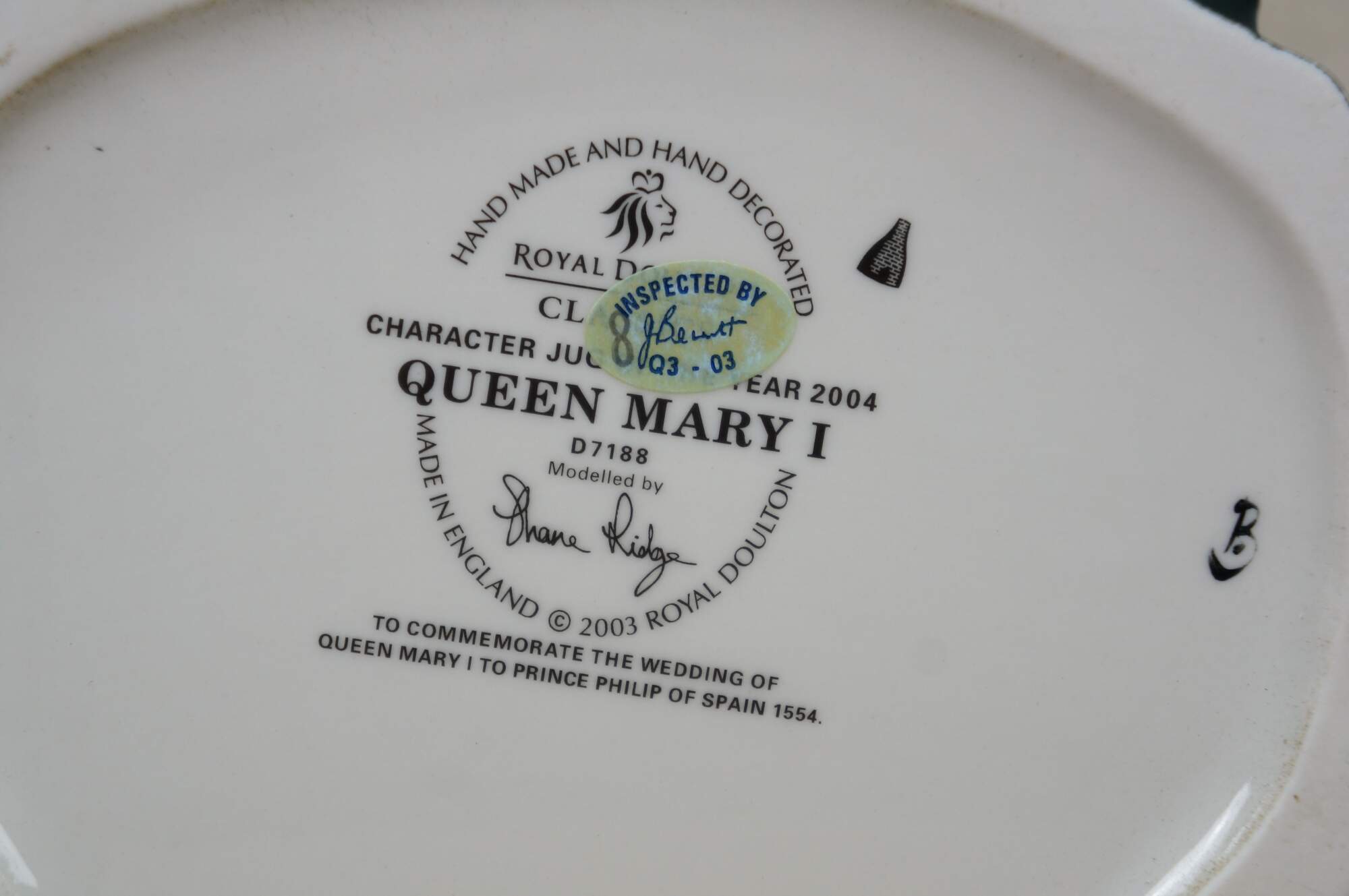 2003 Royal Doulton Classics porcelain Character Jug of the Year 2004 number D7188, "Queen Mary I." Modelled by Shane Ridge. Made in England. To Commemorate the Wedding of Queen Mary I to Prince Philip of Spain 1554. Includes original box and Certificate of Authenticity.