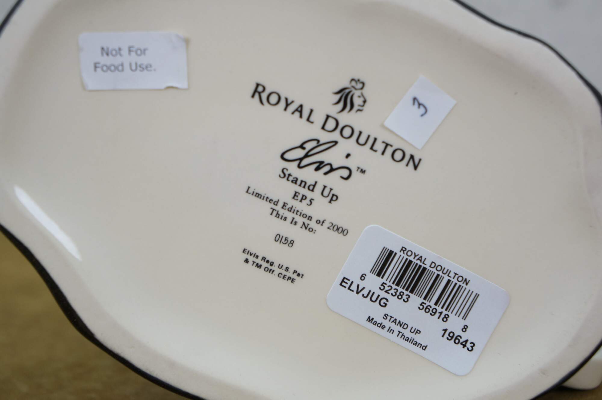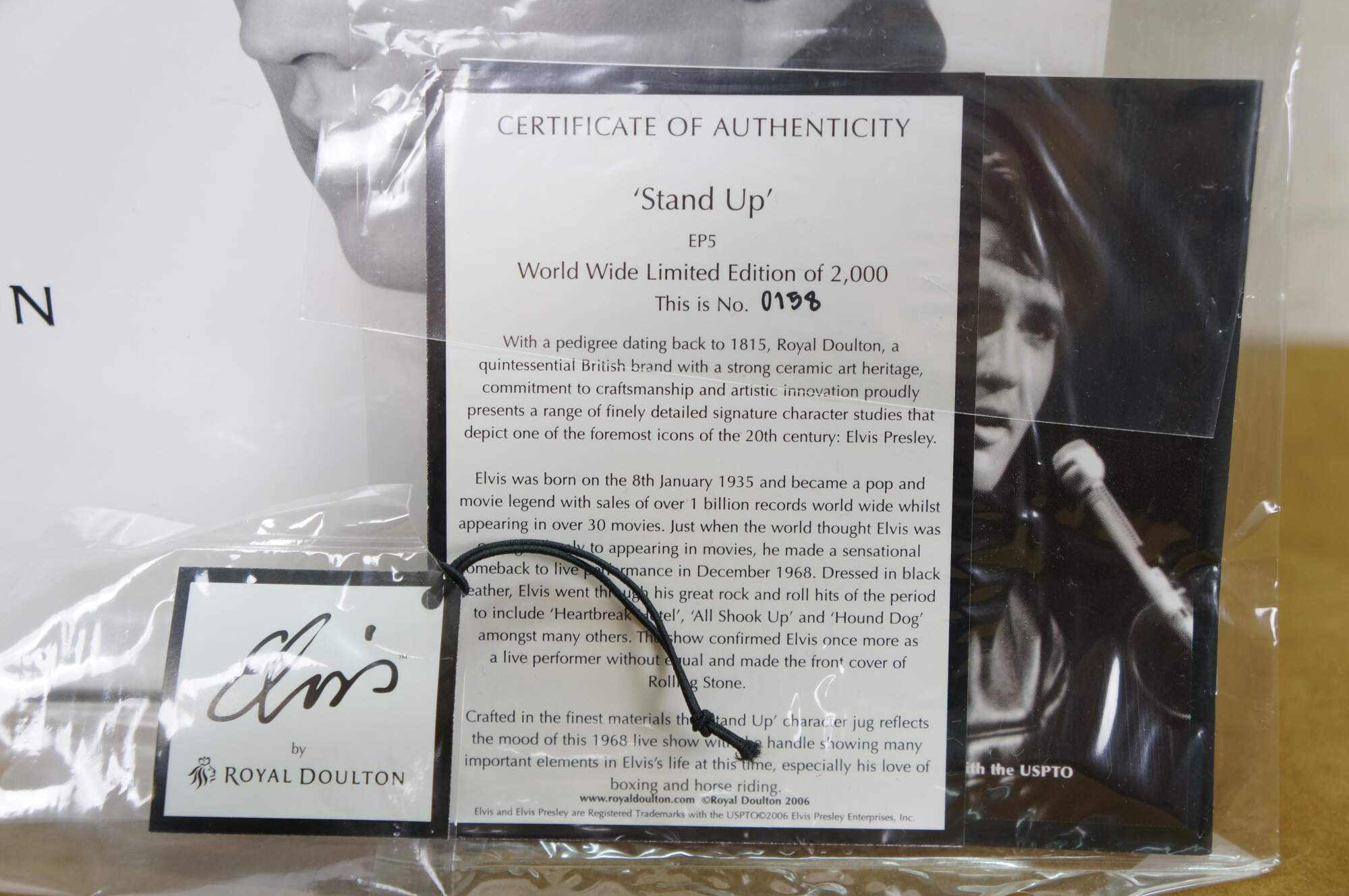 2006 Royal Doulton porcelain character jug number EP5, "Stand Up" depicting Elvis Presley. World Wide Limited Edition number 158/2000. Made in Thailand. Includes original box and Certificate of Authenticity.