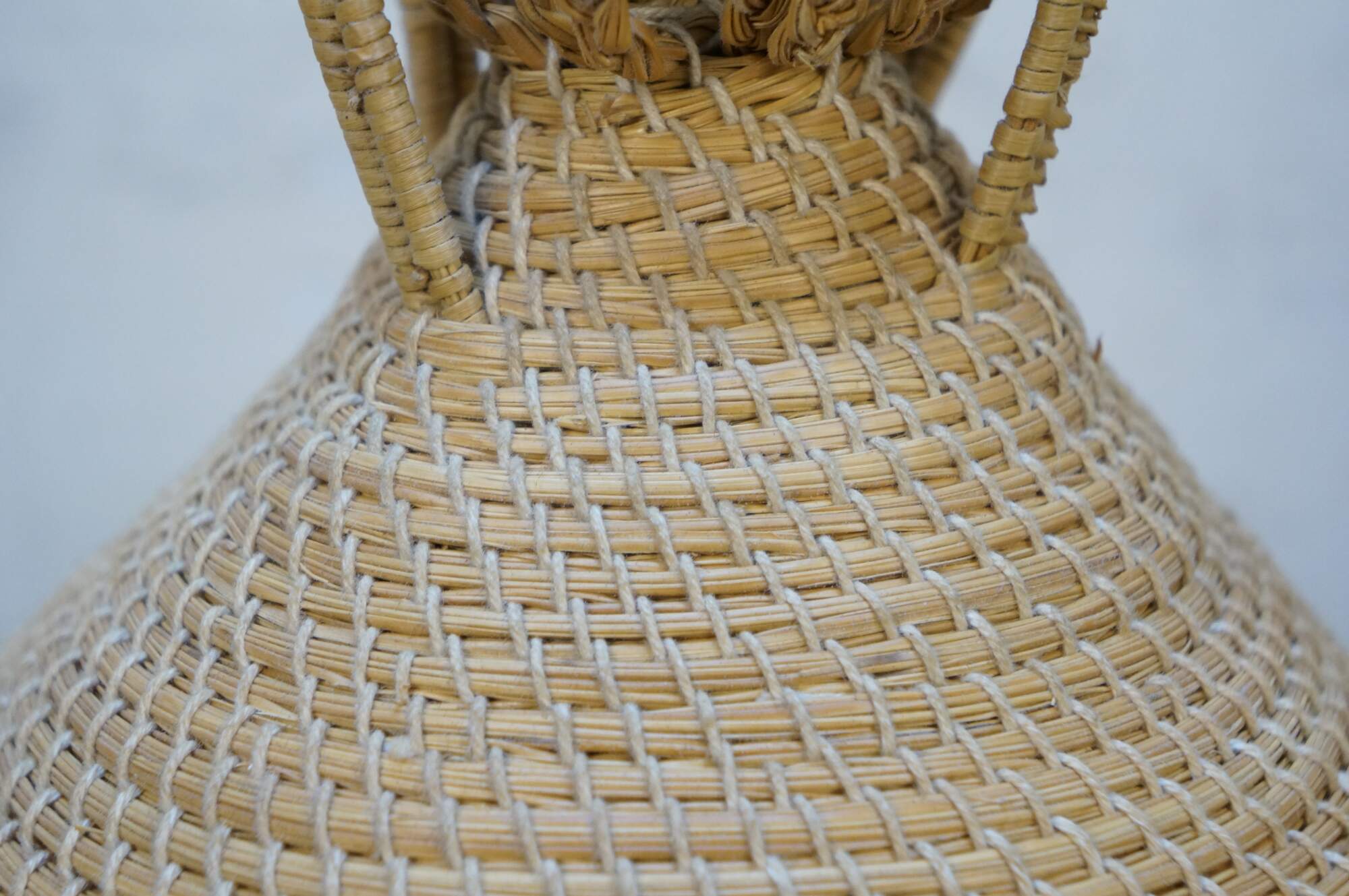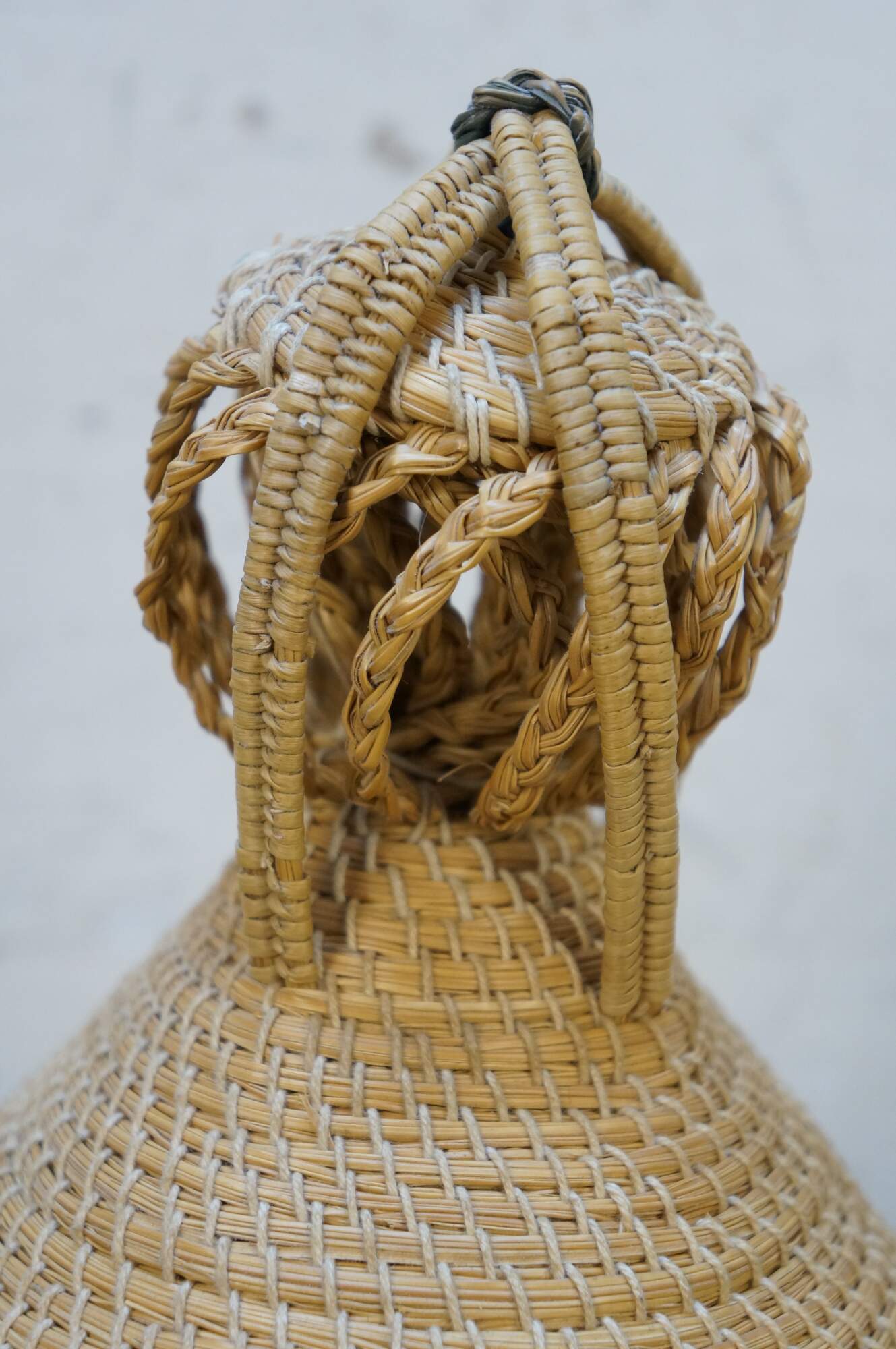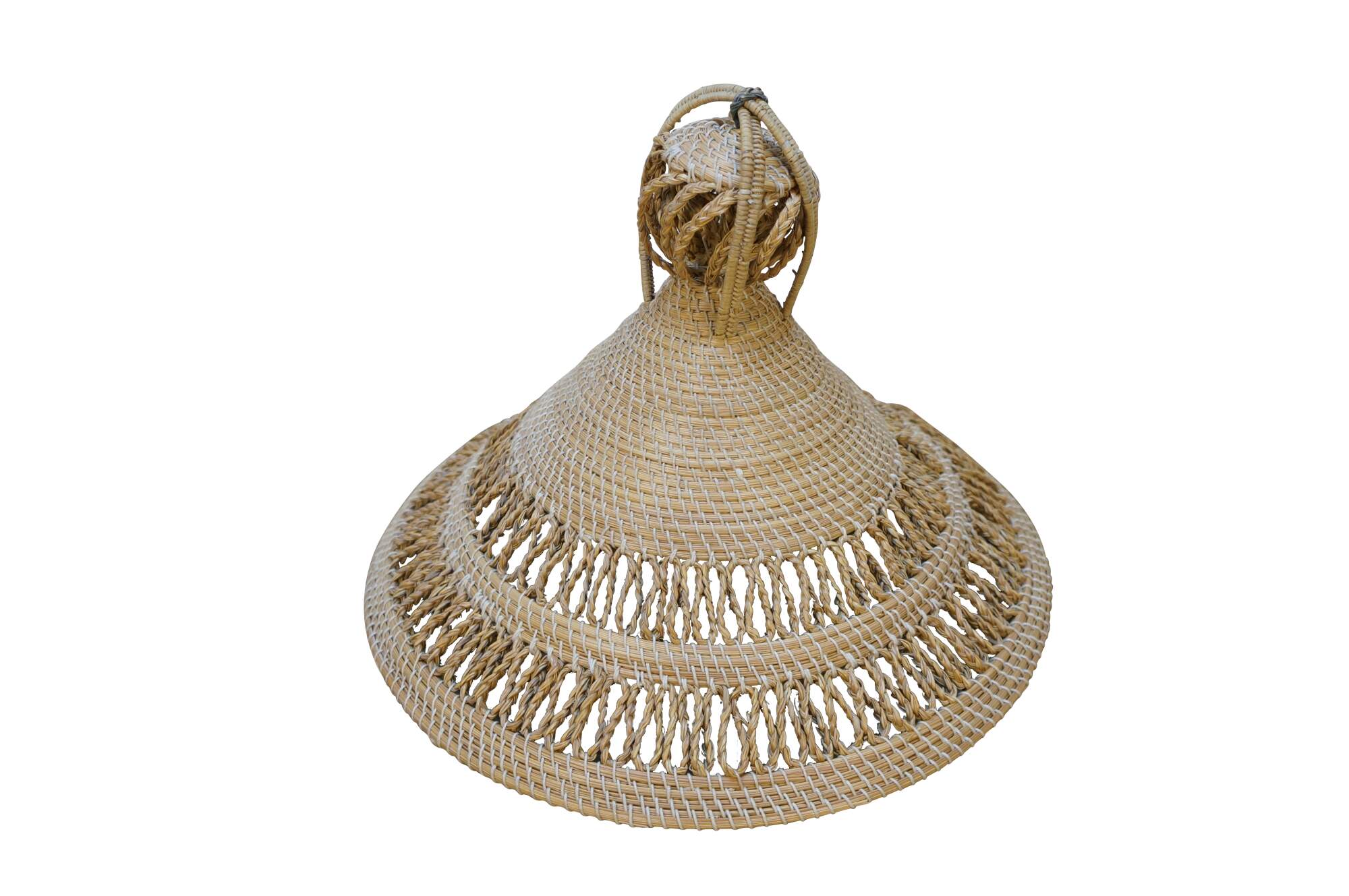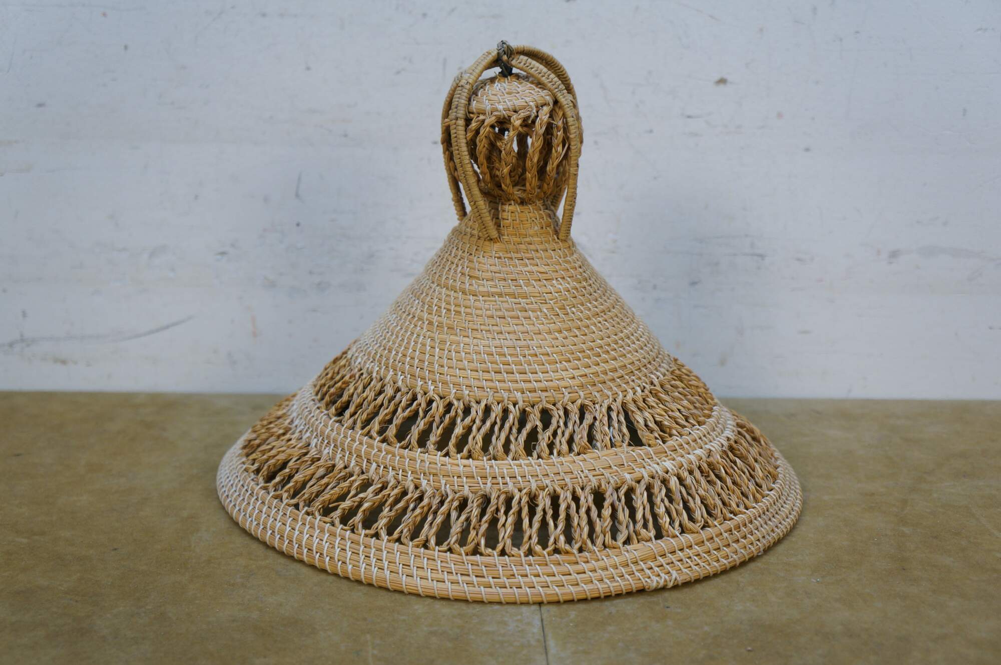 Late 20th century traditional Lesotho / Basotho mokorotlo hat. A conical hat of woven grass with knob on top.