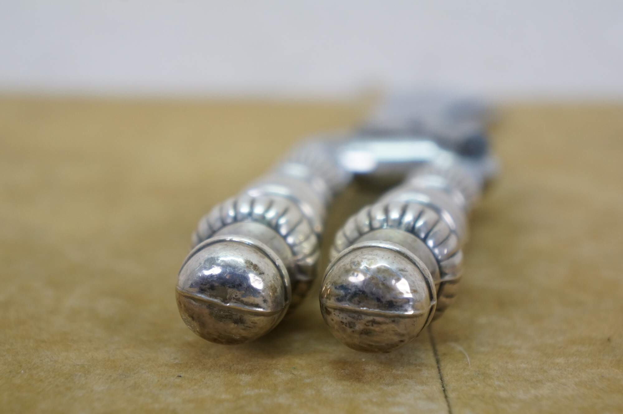 Vintage Italian sterling silver handled poultry / kitchen shears featuring turned handles with fluted accents and lockable blades. Made in Italy.