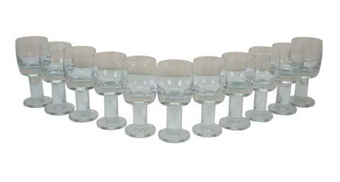 Set of 11 mid 20th century Thor clear crystal water goblets by Krosno Glass. Danish design by Svend Jensen. Sturdy mid century modern design.