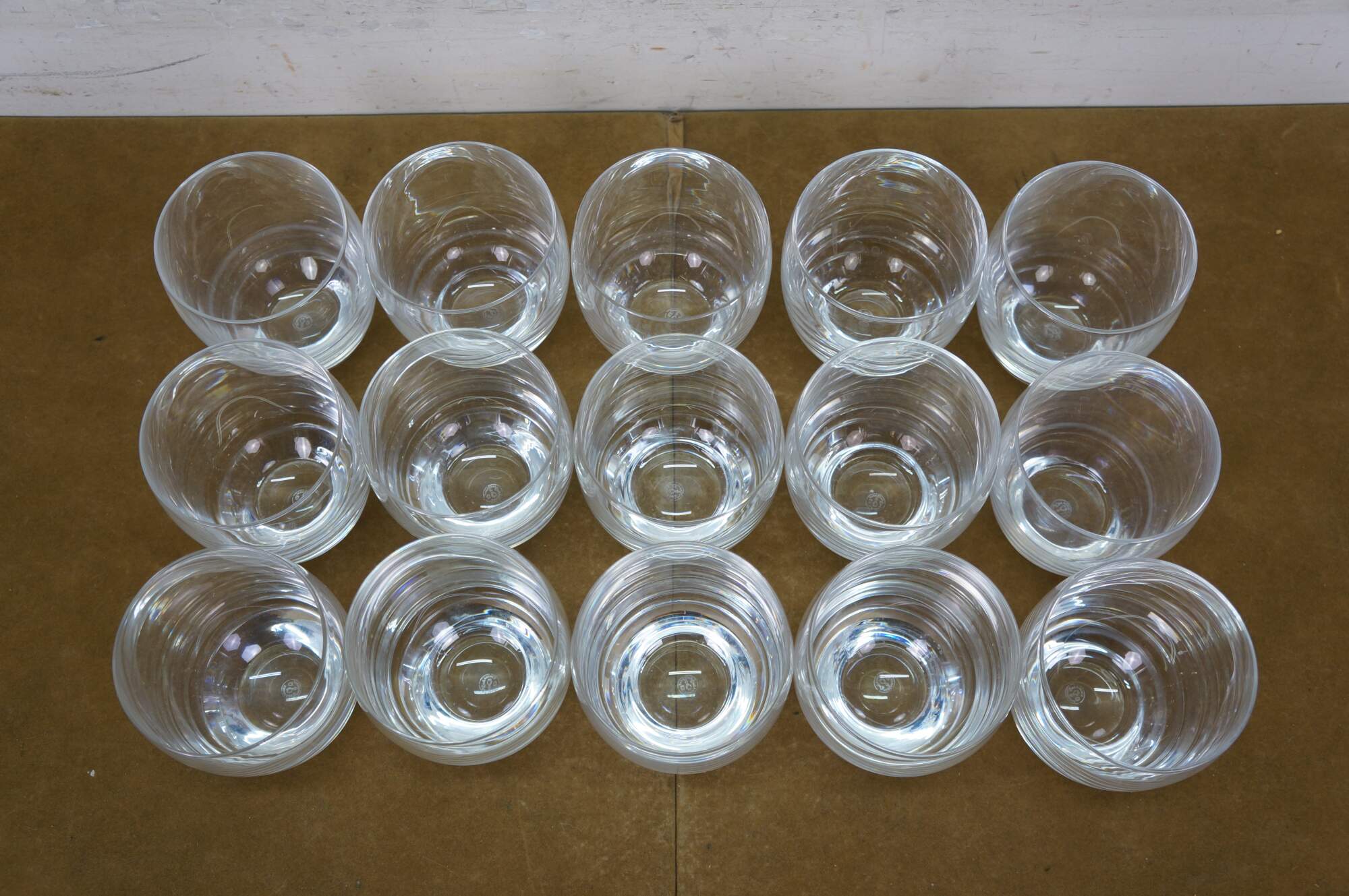 Set of 15 Baccarat Perfection clear crystal 8 oz barrel shaped flat tumblers / wine / old fashioned glasses. Made in France. Discontinued.