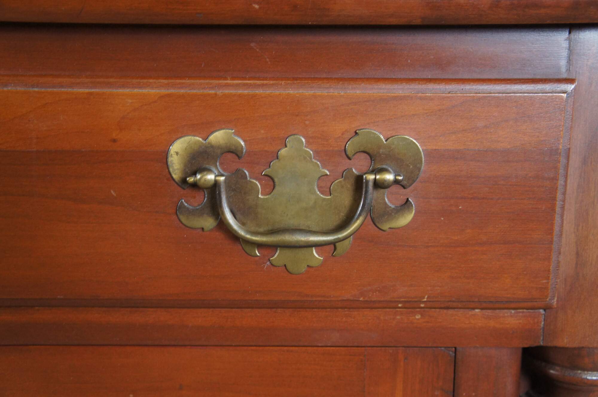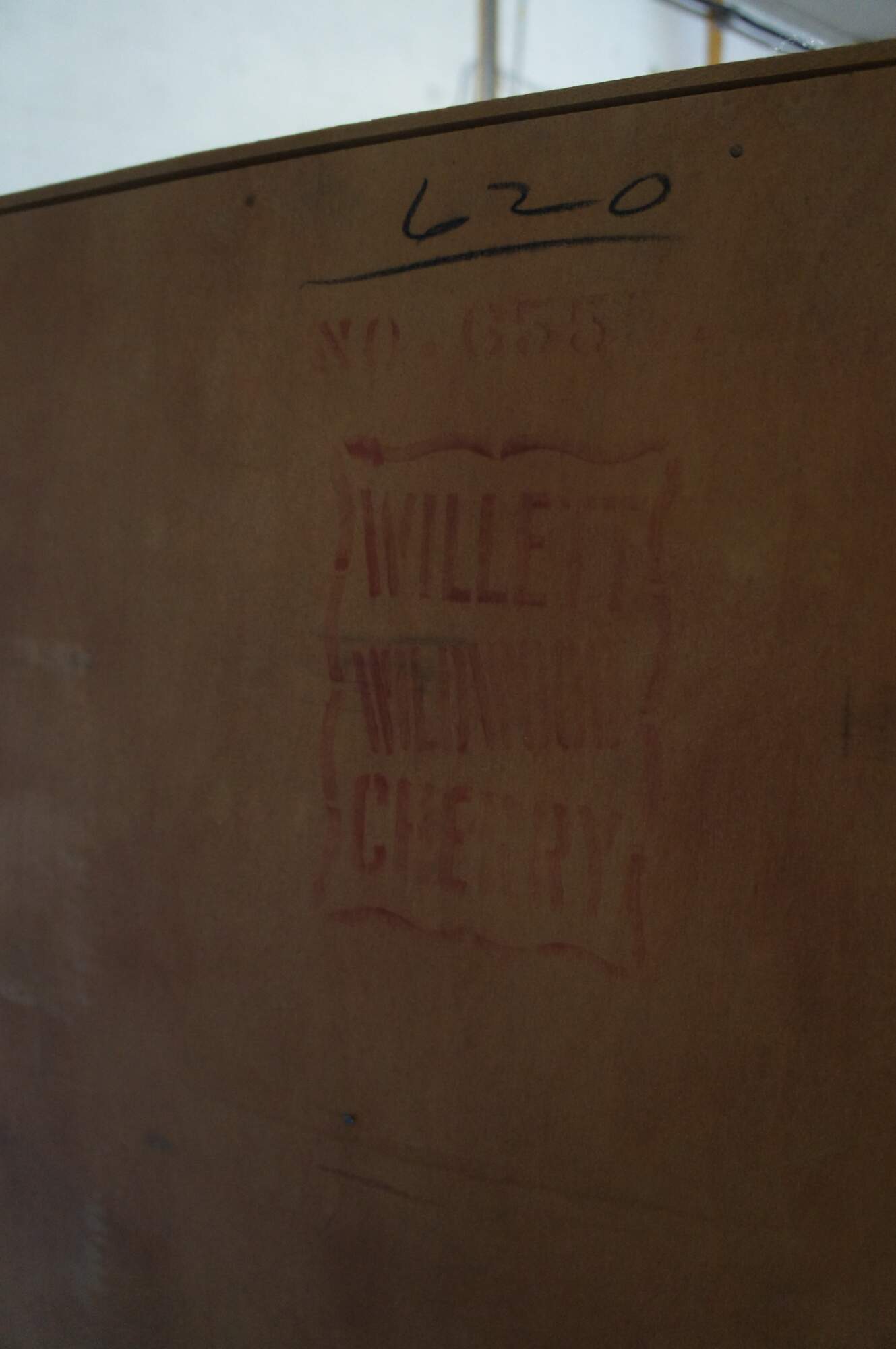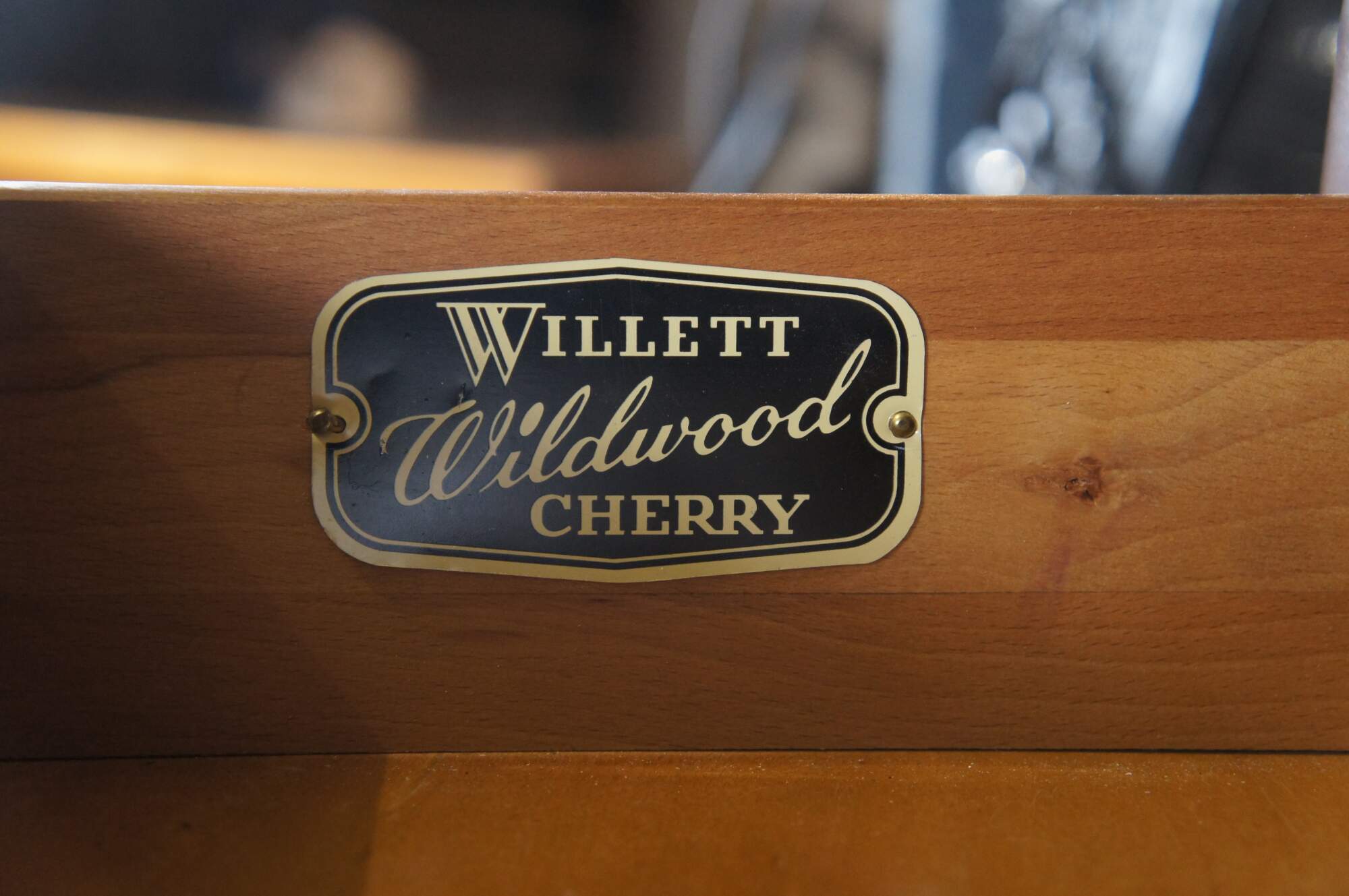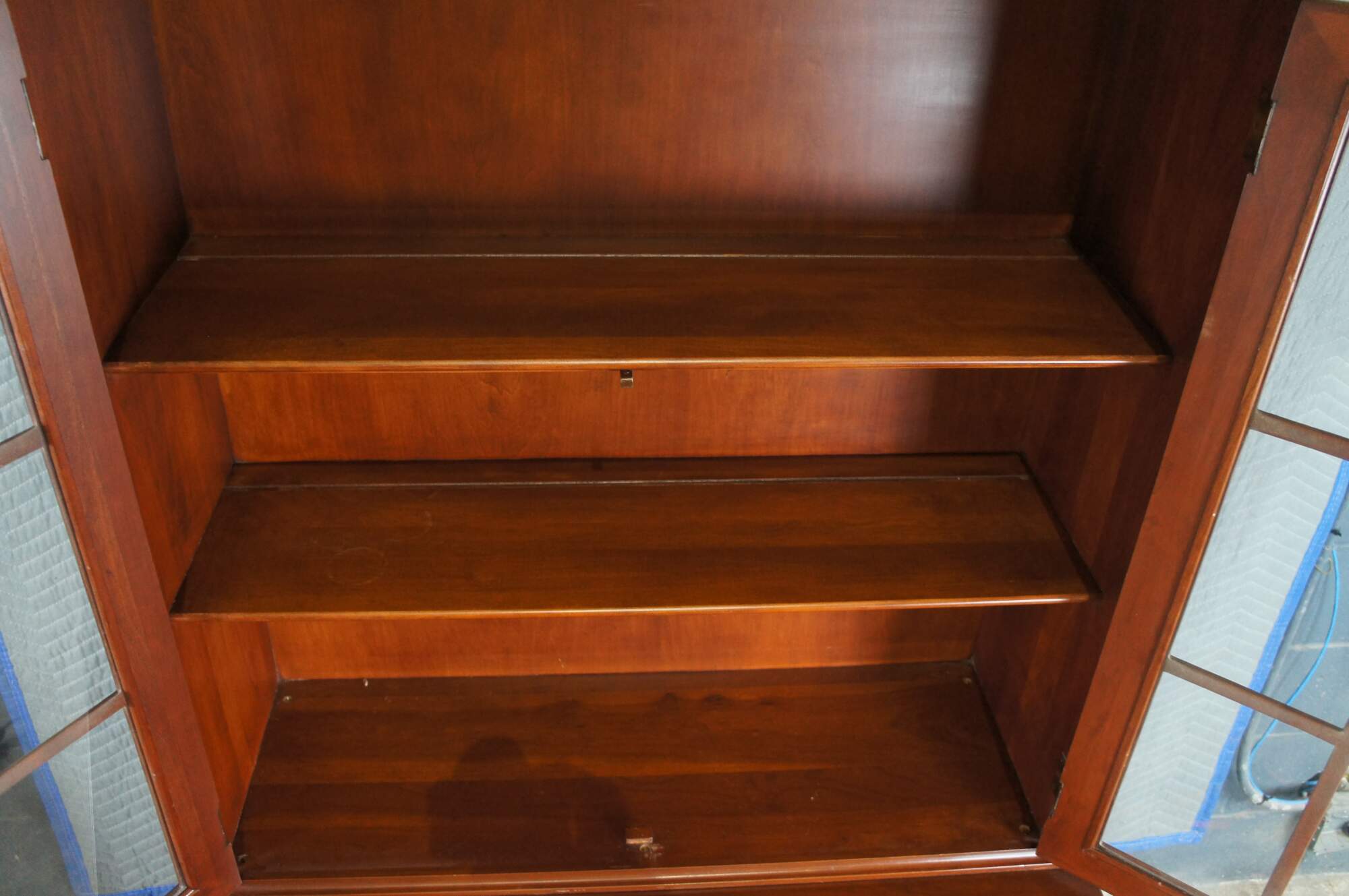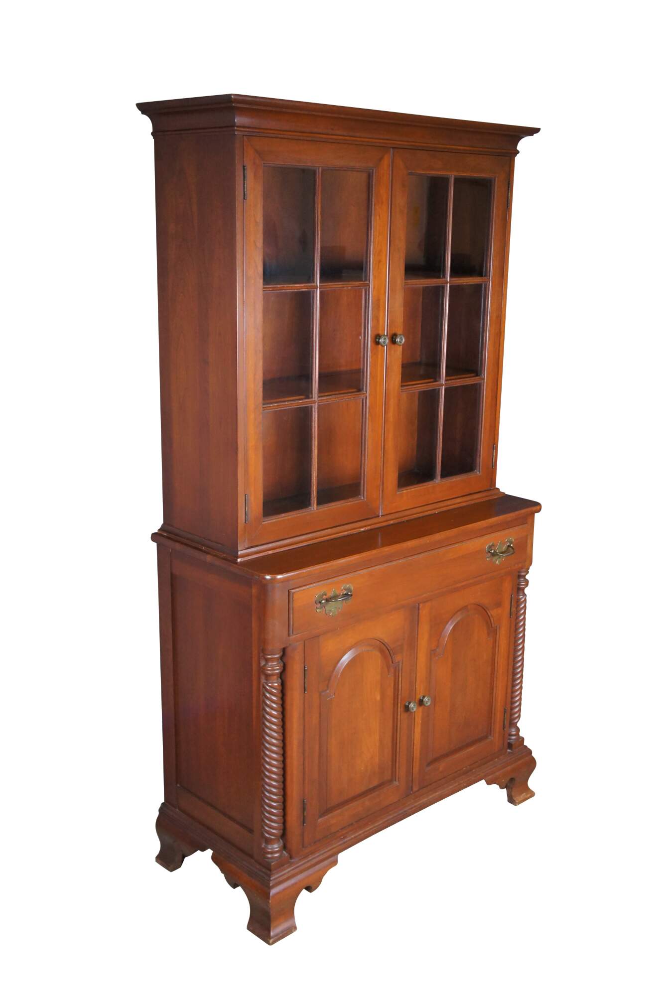 Vintage Willett Wildwood Cherry #6535 stepback cupboard / bookcase / china cabinet. featuring upper shelves and lower cabinet with rope twist accents and bracket feet.