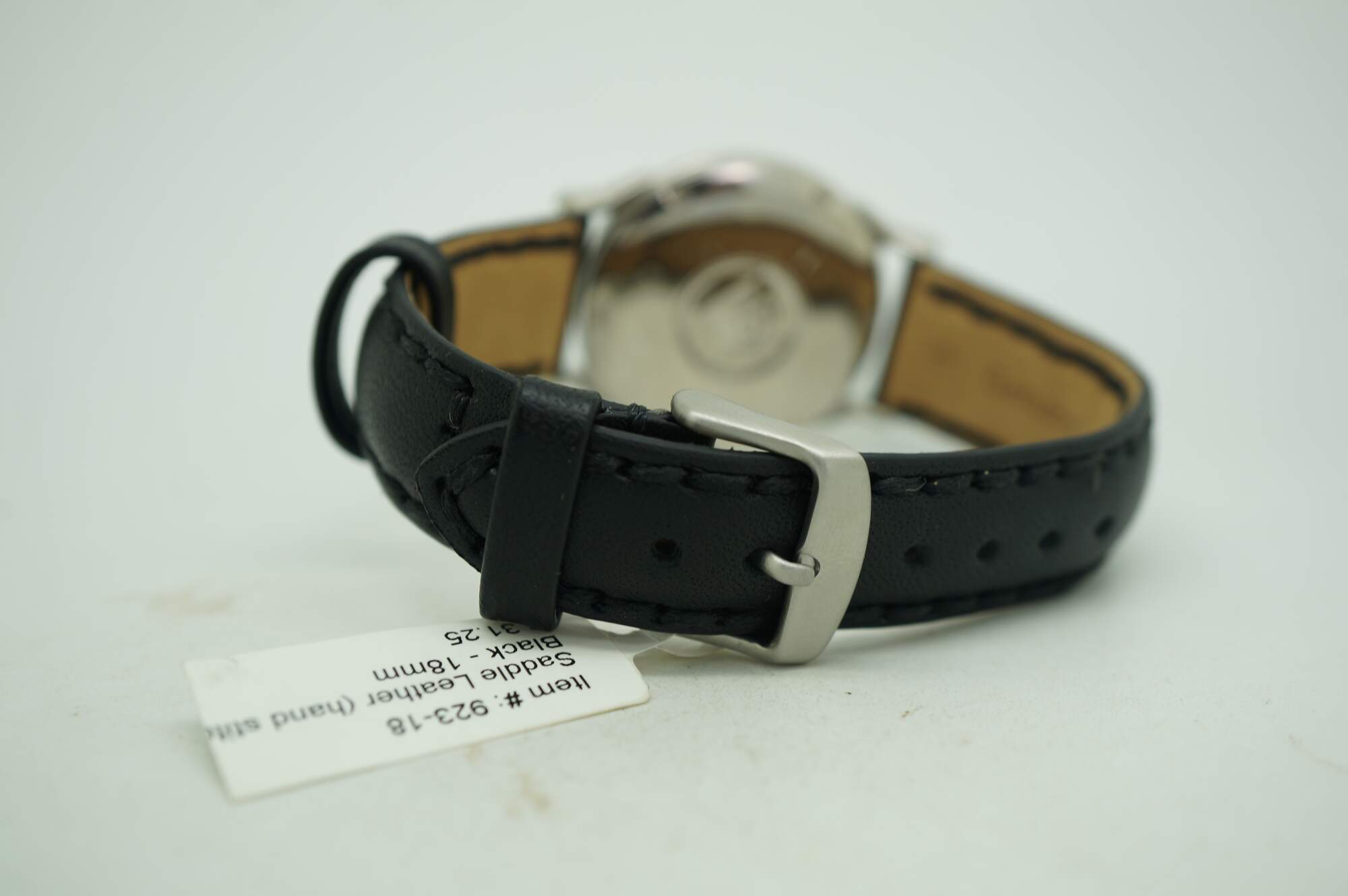 Vintage circa 1963-1967 Omega Constellation Automatic Chronometer Officially Certified wrist watch. Silver / chrome color stainless steel case; white dodecahedron shaped / pie pan dial with black and silver tick marks and hands; date number at right. Omega Watch Company - Swiss Made - 168.005 - SGR - Acier Inoxydable. Movement Unadjusted - Five (5) Positions and Temperature - Twenty Four 24 Jewels - 564 - 2535xxxx. New band by deBeer Watch Bands - Item Number 923-18 - Saddle Leather (hand stitching) - Black - 18mm - Weber Jewelers of Dayton, OH.