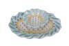 Vintage 1995 Victoria and Richard Mackenzie-Childs, Ltd earthenware pottery Brighton Pavillion oval serving platter and small custard dish / bowl. Rippled edge design painted with a starburst studded lattice at the center and wreath of berries and leaves around the edge.