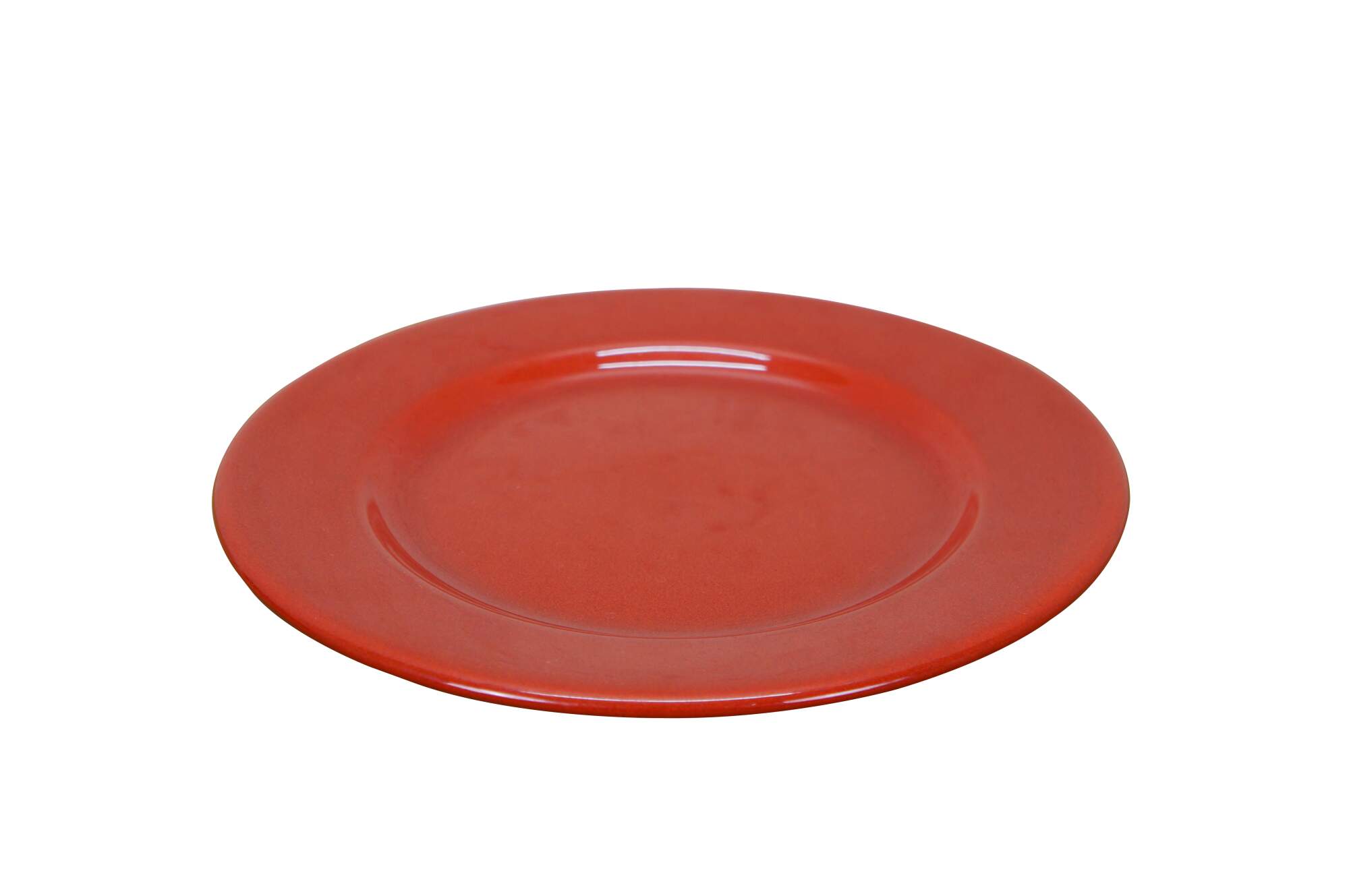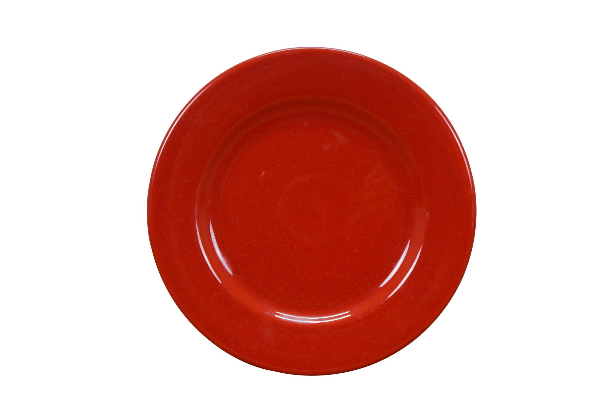 Set of 8 late 20th century Trend Colors by Oxford red ceramic dinner plates. Microwave/ Dishwasher Safe - Made in Brazil - 5004. Discontinued.