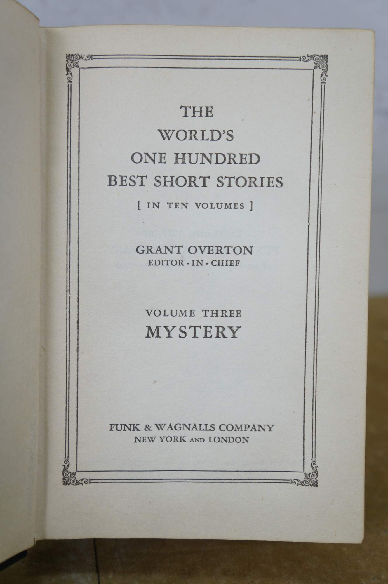 Antique early 20th century hard cover copy of "The World's 100 Best Short Stories" - (In Ten Volumes) - Grant Overton, Editor-in-Chief - Volume III Mystery - Published by Funk & Wagnells Company, . Hard cover / hard back, blue cloth binding with stamped details. No jacket.