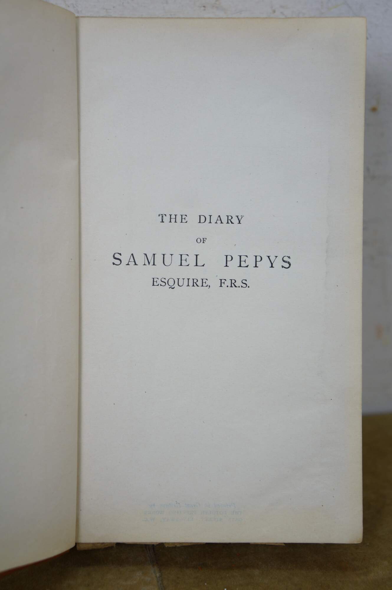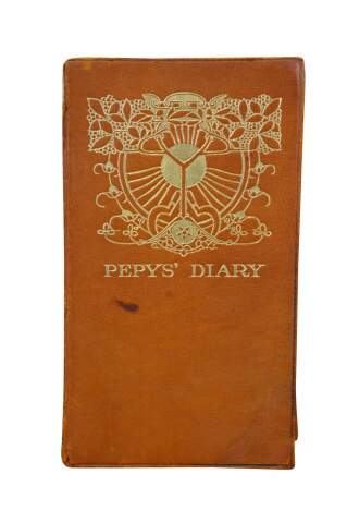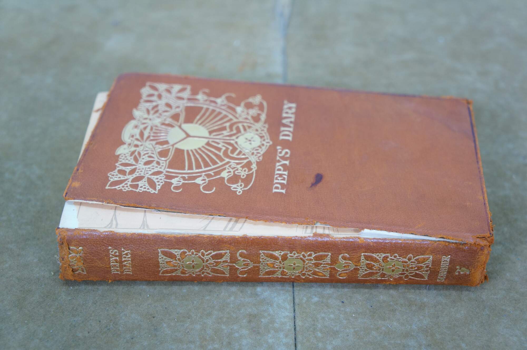 Antique early 20th century soft cover copy of "The Diary of Samuel Pepys Esquire, F.R.S." - Edited by Lord Braybrook - Published by Simpkin, Marshall, Hamilton, Kent & Co Ltd / Charles Scribner's Sons - Title page design by Garth Jones - Printed in Great Britain by The Botolph Printing Works - Soft cover, orange leather binding with stamped gilt details. No jacket.