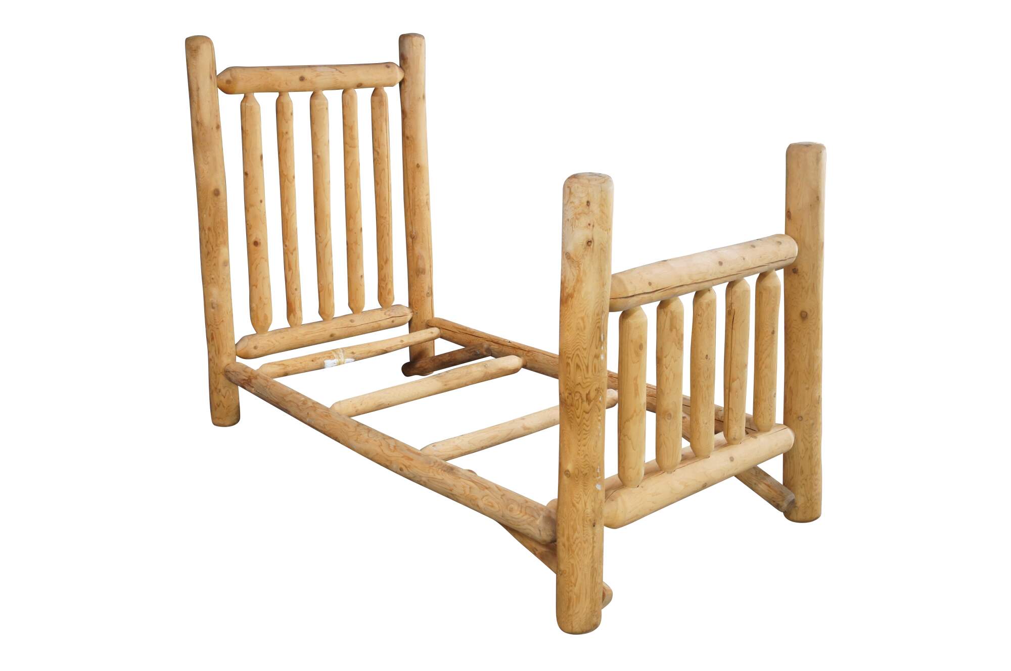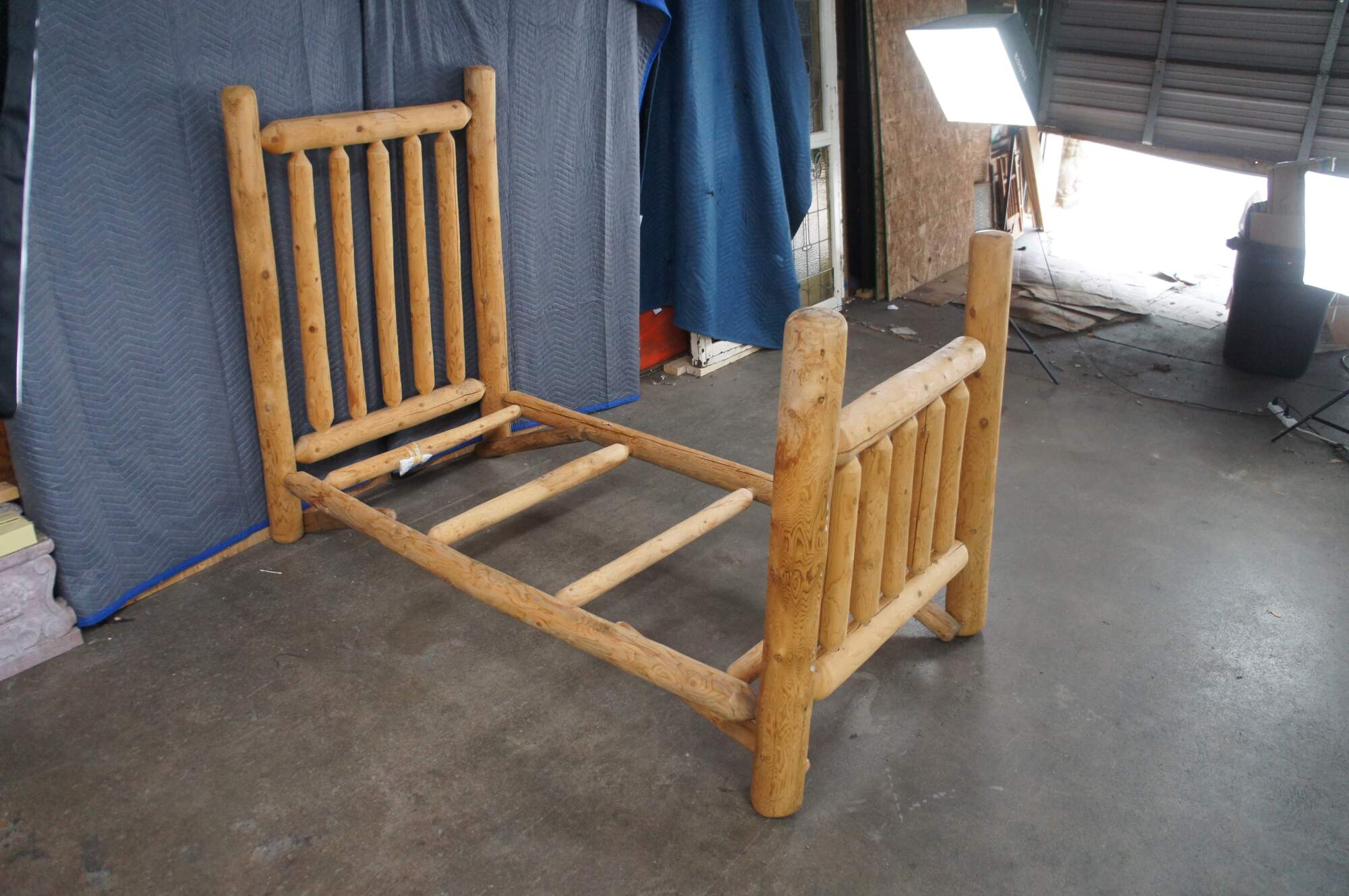 Vintage pine hand crafted log bed. Circa 1995. Great for use in any lodge or cabin themed space.