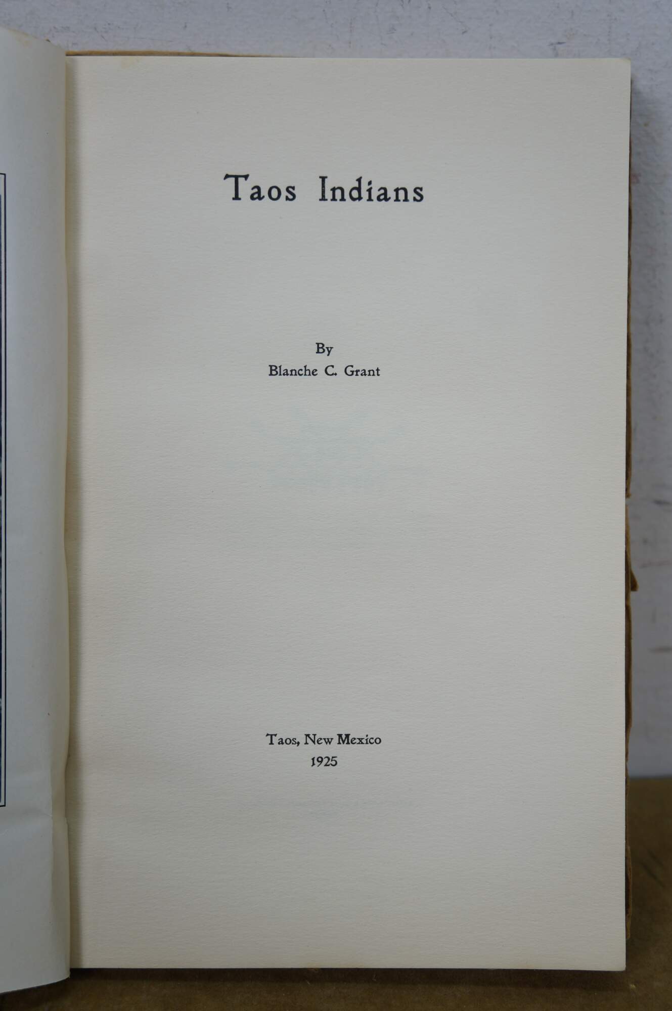 Antique Paper back copy of "Taos Indians" by Blance C. Grant - Printed in Taos, New Mexico 1925 - Copyright Blanche C. Grant 1925 - First Edition - Published by the Santa Fe New Mexican Publishing Corporation. Soft cover, brown paper binding.