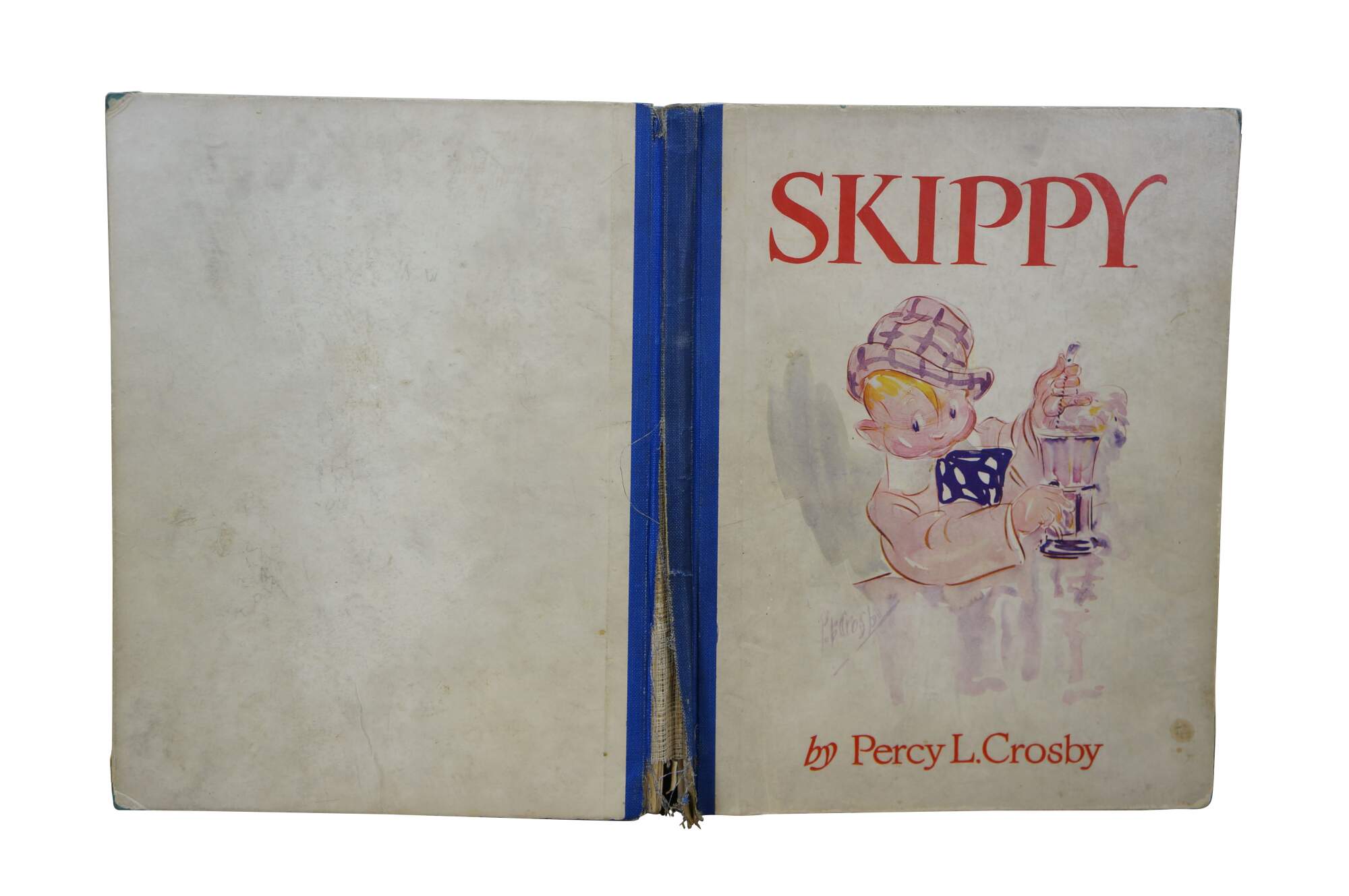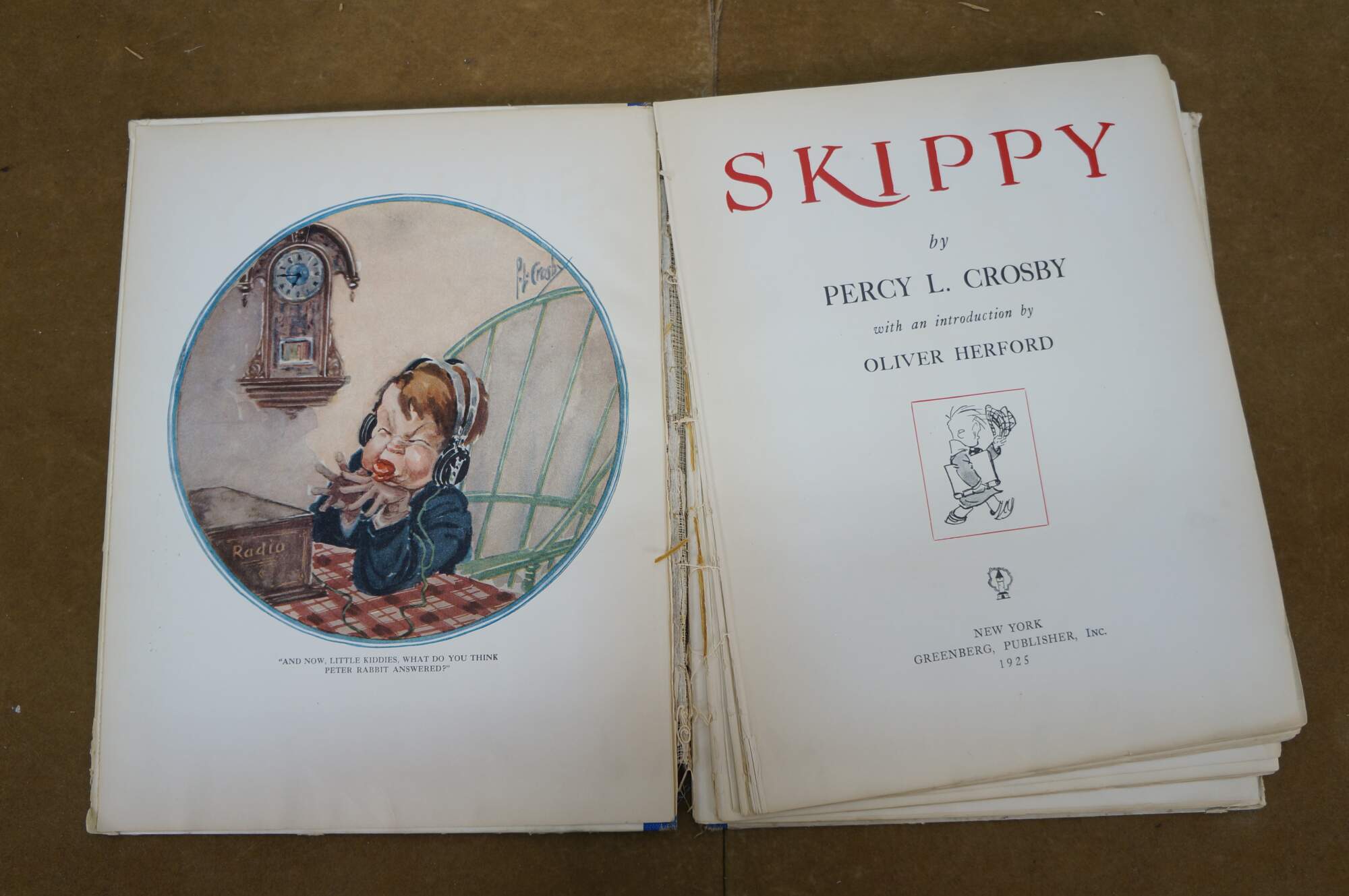 Antique hard cover copy of "Skippy" by Percy L. Crosby with an Introduction by Oliver Herford - New York, Greenberg, Publisher, Inc, 1925 - Copyright Life Publishing Co - Registered US Patent Office by Percy Crosby. Hard cover / hard back, printed paper binding with blue cloth spine.