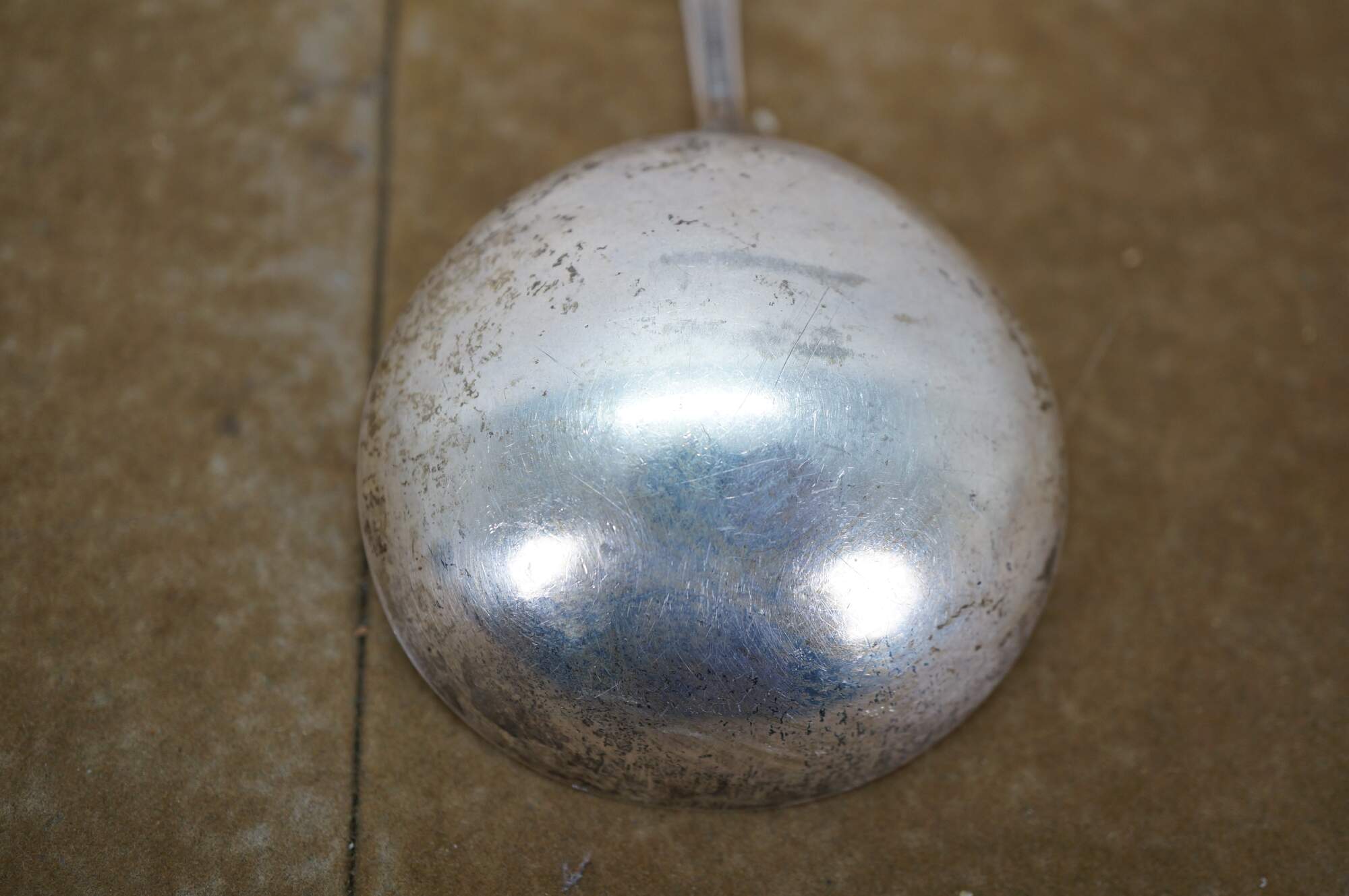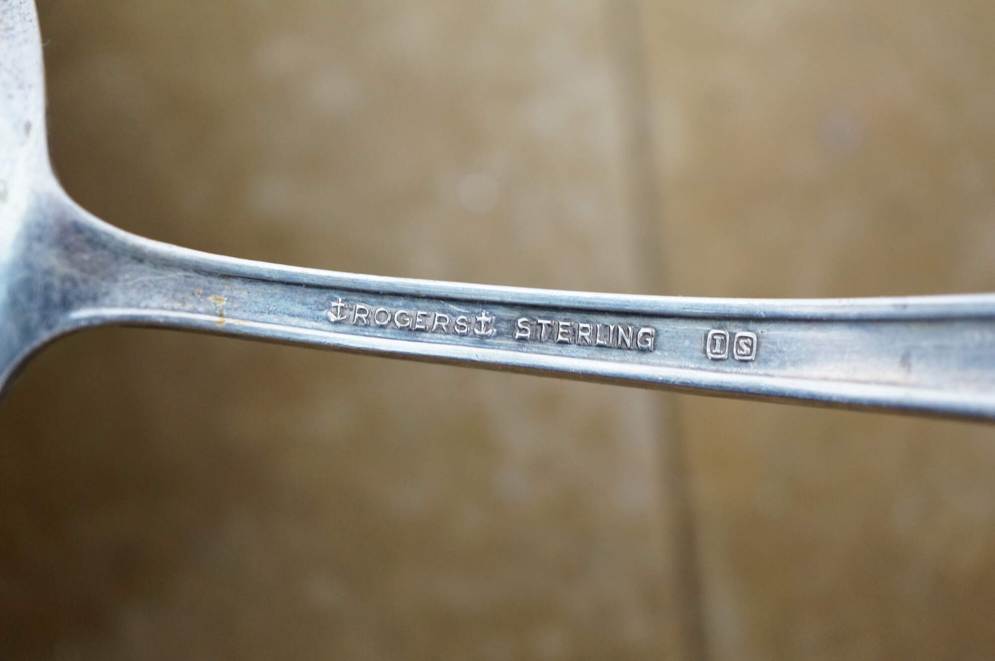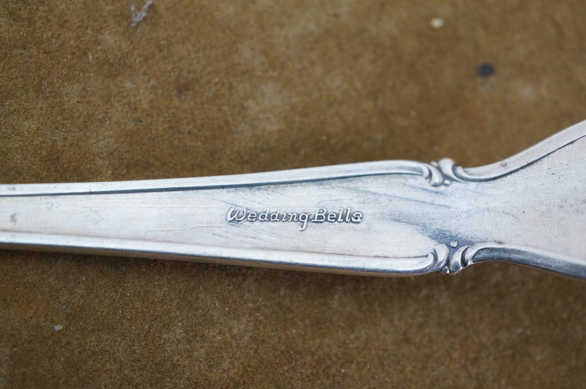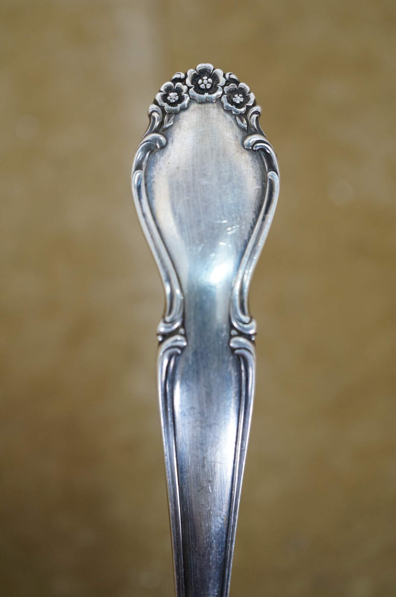 Mid 20th century William Rogers Mfg Co / International Silver Co sterling silver sauce ladle spoon in the Wedding Bells pattern (produced circa 1948-1959, designed by Alexandra A Dabrowski).
