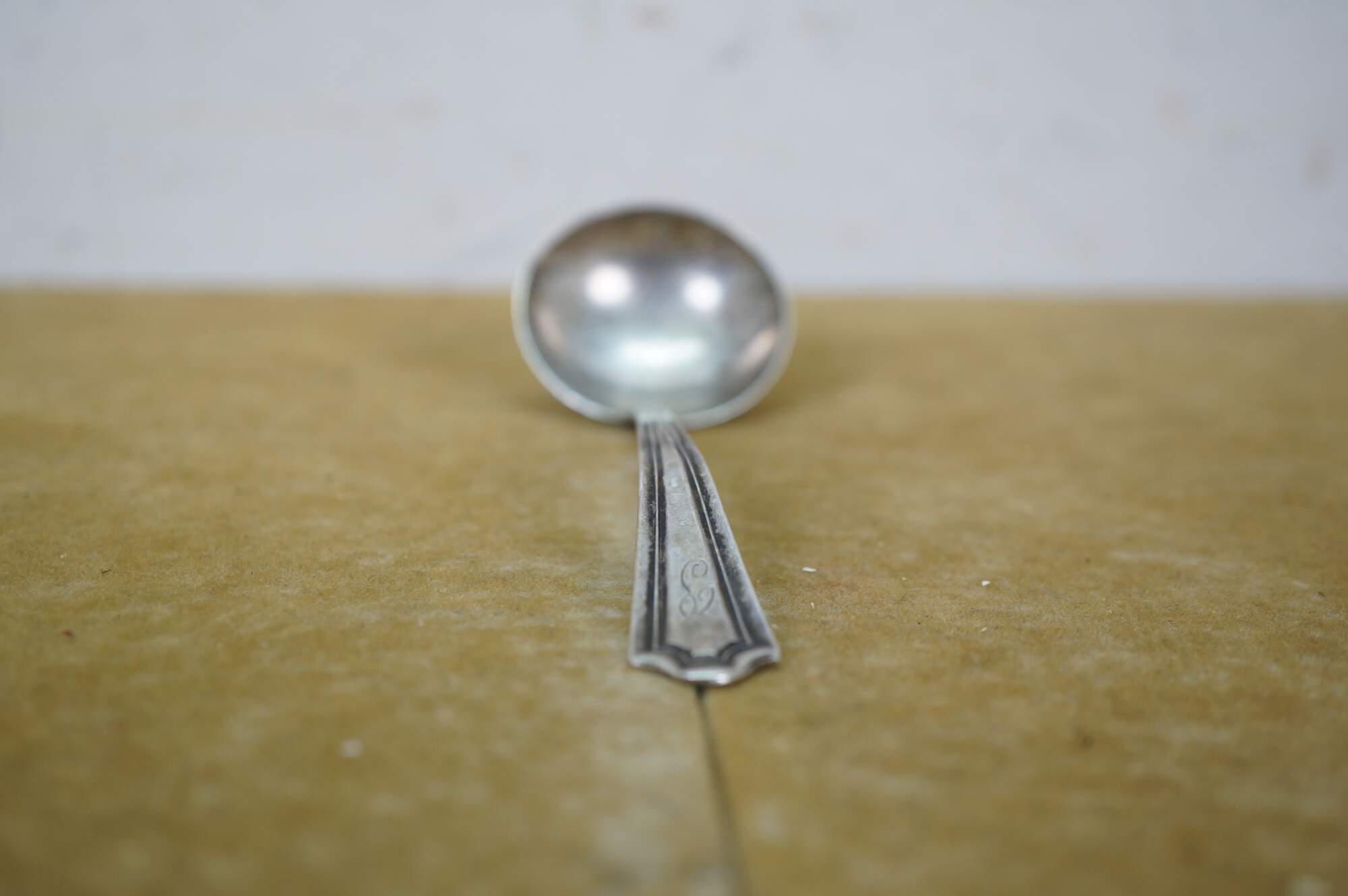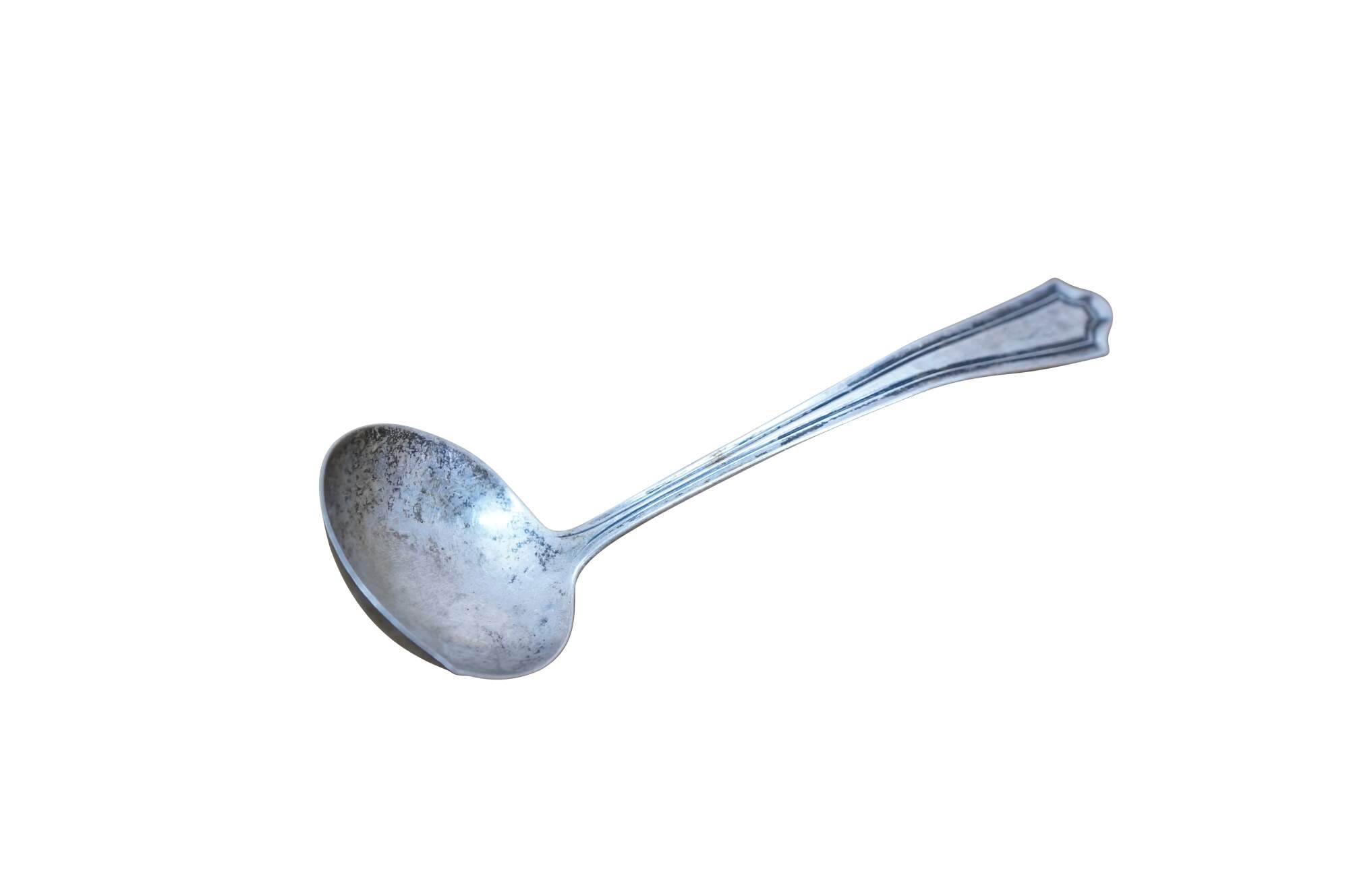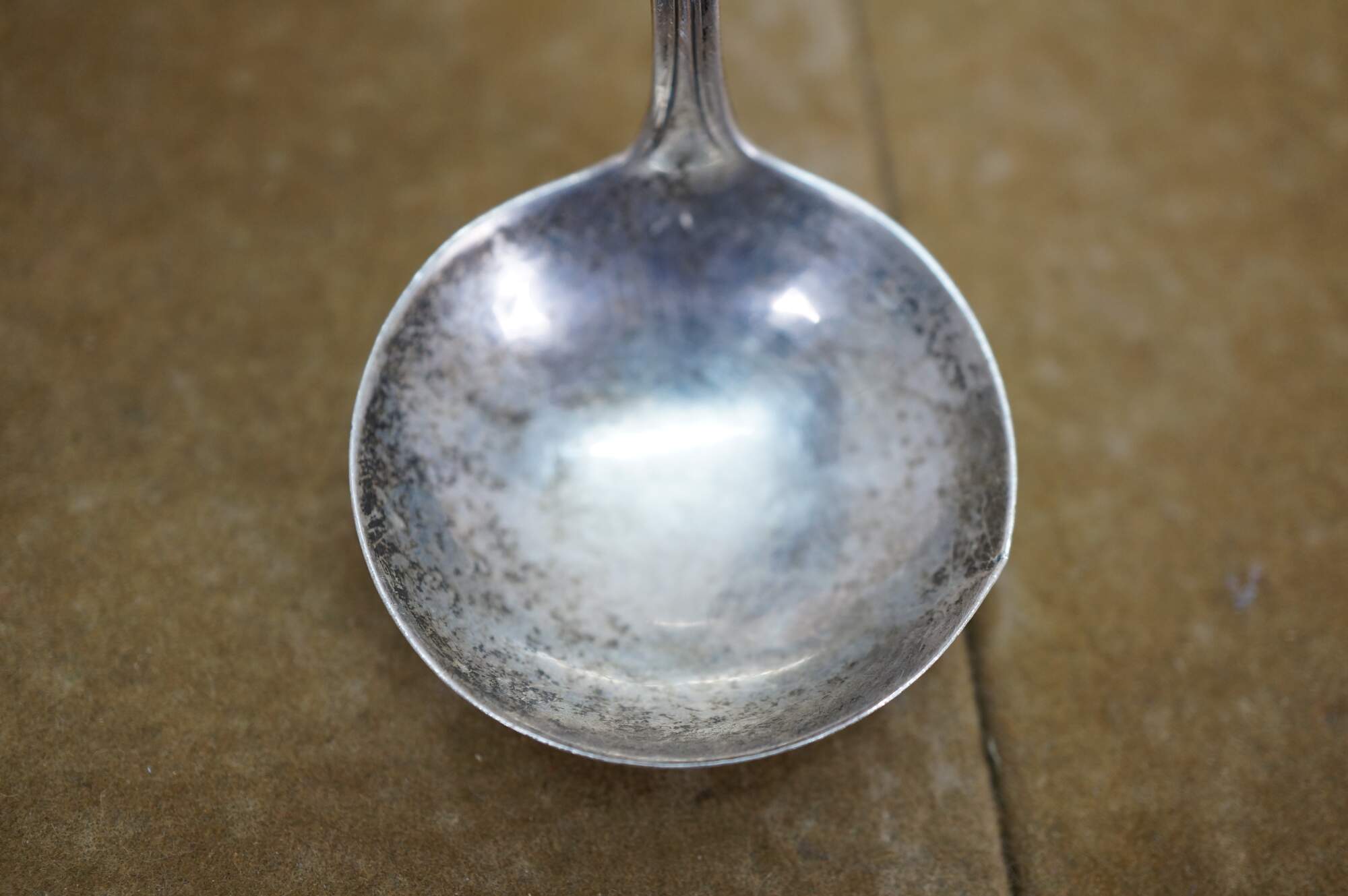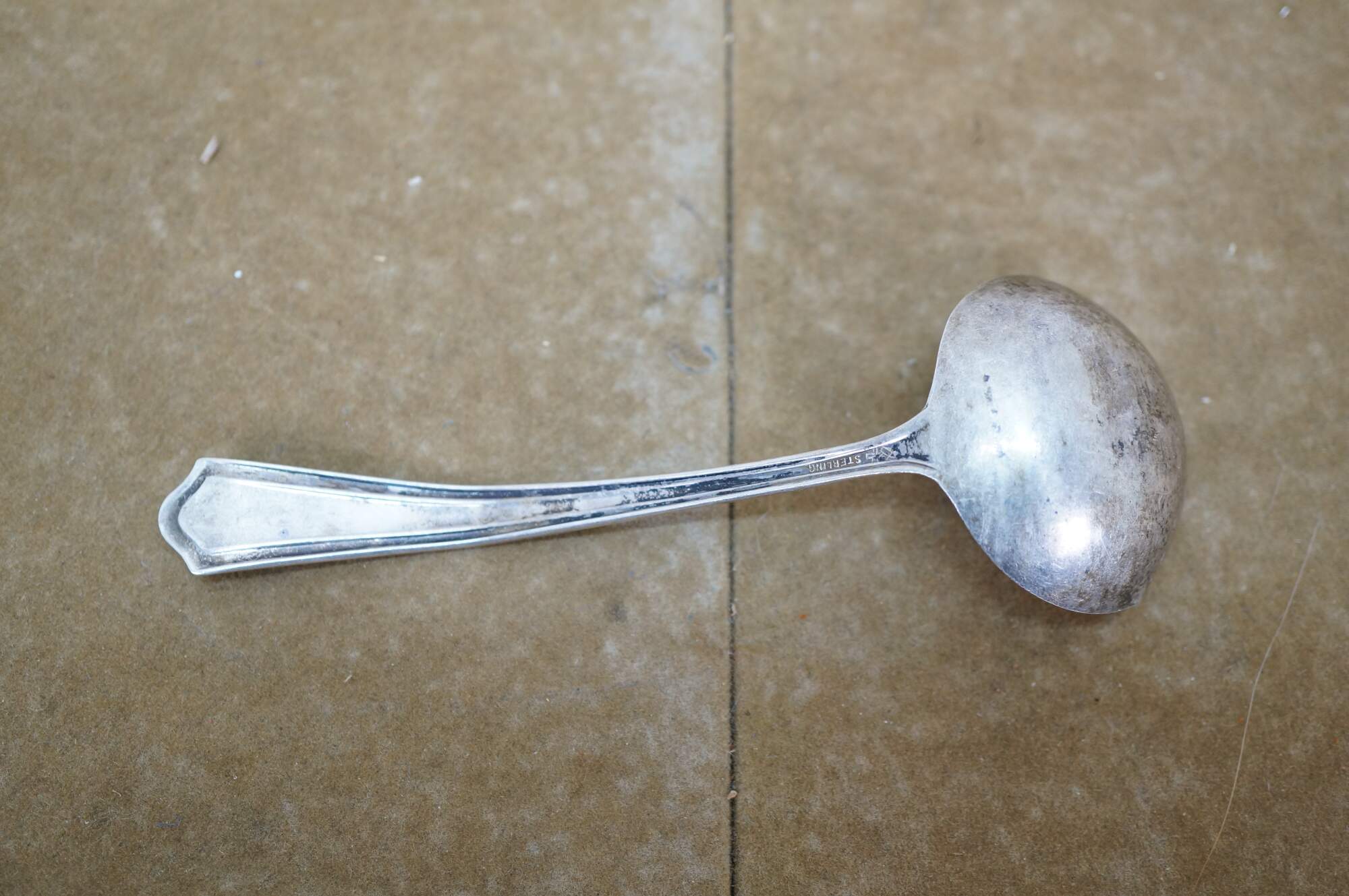Early 20th century Manchester Silver Co sterling silver cream / sauce ladle in the Mary Warren pattern (introduced 1910). Monogrammed with the letter P.