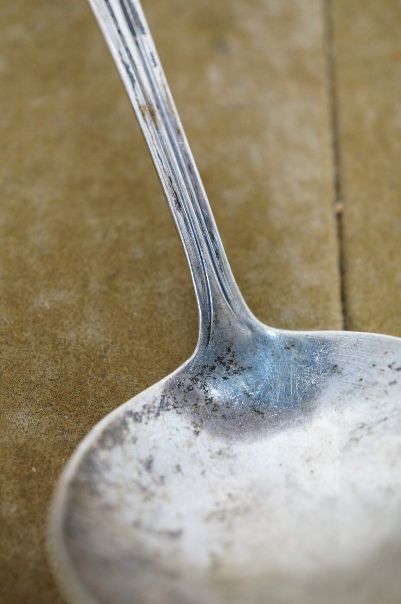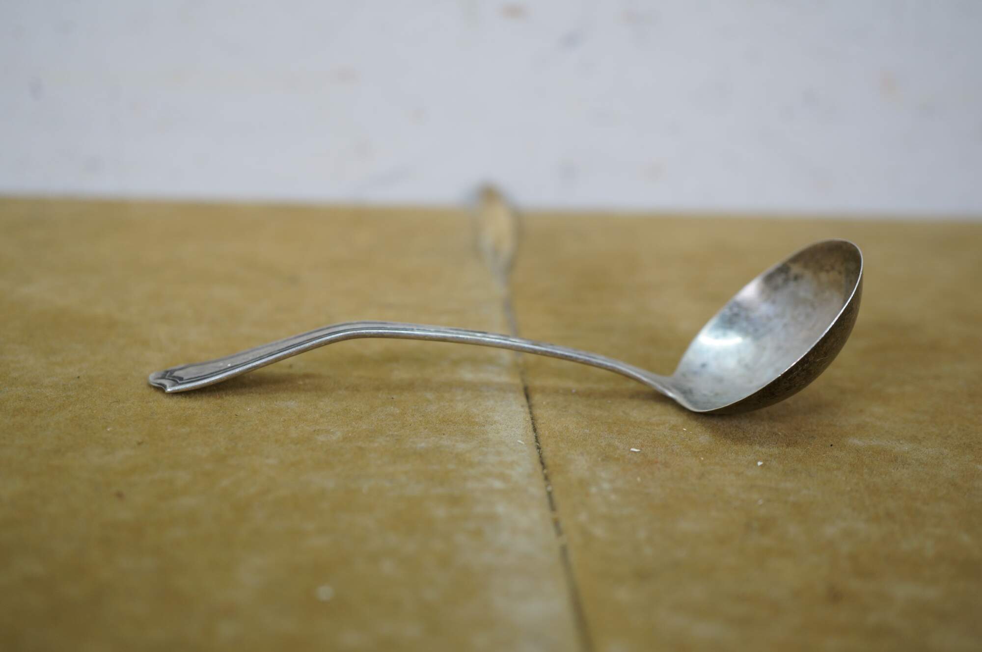 Bent, Tarnish, ding to lip.
