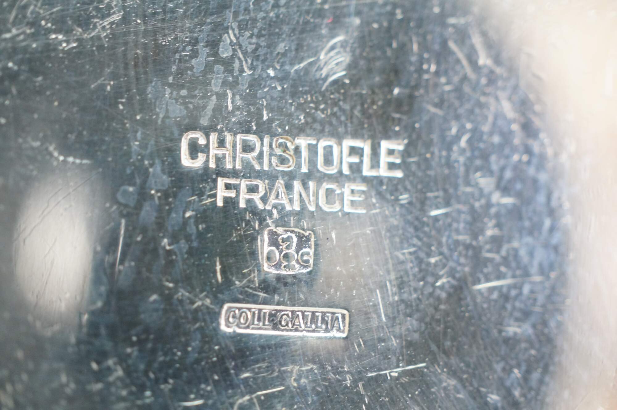 "Charles Christofle was born in Paris in 1805 amongst small industrialists specializing in the manufacturing of buttons. The only boy in a family of four, he apprenticed with his brother-in-law Hughes Calmette, a manufacturer of "provincial" copper jewelry in 1821. He took over the business 10 years later, founding the company that bears his name in 1830, and in 1832 deposited his master's mark at the Garantie de Paris for "adornment". He developed his factory by positioning it towards export jewelry made of precious metal. The following year, he married Anne Henriette Bouilhet (1819 -1839) with whom he had two children, a daughter Marie Rose (1836-1918) and a son Paul (1838 -1907). While searching for technical innovations, Charles Christofle took out a patent for the manufacturing of metallic fabrics in 1837. He then produced silver filigree pieces and hangings, epaulettes and braids for the army. Armed with this diverse skillset, he participated in the Exhibition of Products of French Industry in Paris in 1839. This first participation inaugurated a long series of national and universal exhibitions, where the House would win numerous awards. At one exhibition in 1844 in Paris, he received a gold medal. In 1842, Charles Christofle acquired the patents for silver and gold metal electroplating from the Frenchman Henri de Ruolz and the Englishman Elkington. More durable and less harmful than traditional techniques, electroplating and gilding made it possible to manufacture pieces on a massive scale. Christofle was the only patent holder in France for 15 years. One of his first clients was the French King, Louis-Philippe I, who ordered a full service from him for the Chateau d'Eu in Normandy, a vacation spot for the French royal family. The company became famous after Emperor Napoleon III ordered a 4,000-piece service, including the surtouts, in 1851. The centerpiece of the goldsmith's surtouts was recovered from the ruins of the Tuileries Palace and is now in the Museum of Decorative Arts. Its titles of "Goldsmith of the King" and "Supplier of the Emperor" allowed the house to become famous and to be solicited by foreign sovereigns such as the Emperor Maximilian of Mexico, the Tsar of Russia, the German Kaiser, the Austro-Hungarian Empire, the Sultan Abdülaziz of the Ottoman Empire. When Charles Christofle died, his son Paul (1838-1907) and his nephew Henri Bouilhet (1830-1910) succeeded him and continued to develop the company. Thanks to the development of new techniques (massive electroplating, enamels, patinas, natural impressions) and the opening of new factories (Saint-Denis and Karlsruhe), Christofle became one of the major goldsmiths of the century. Its collections cover not only tableware and decoration, but also objets d'art, decorative statuary, prizes for races or agricultural competitions, and monumental decor for gilding, for example the decorations on the roof of the Opéra Garnier." (Christofle / Wikipedia)