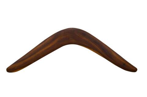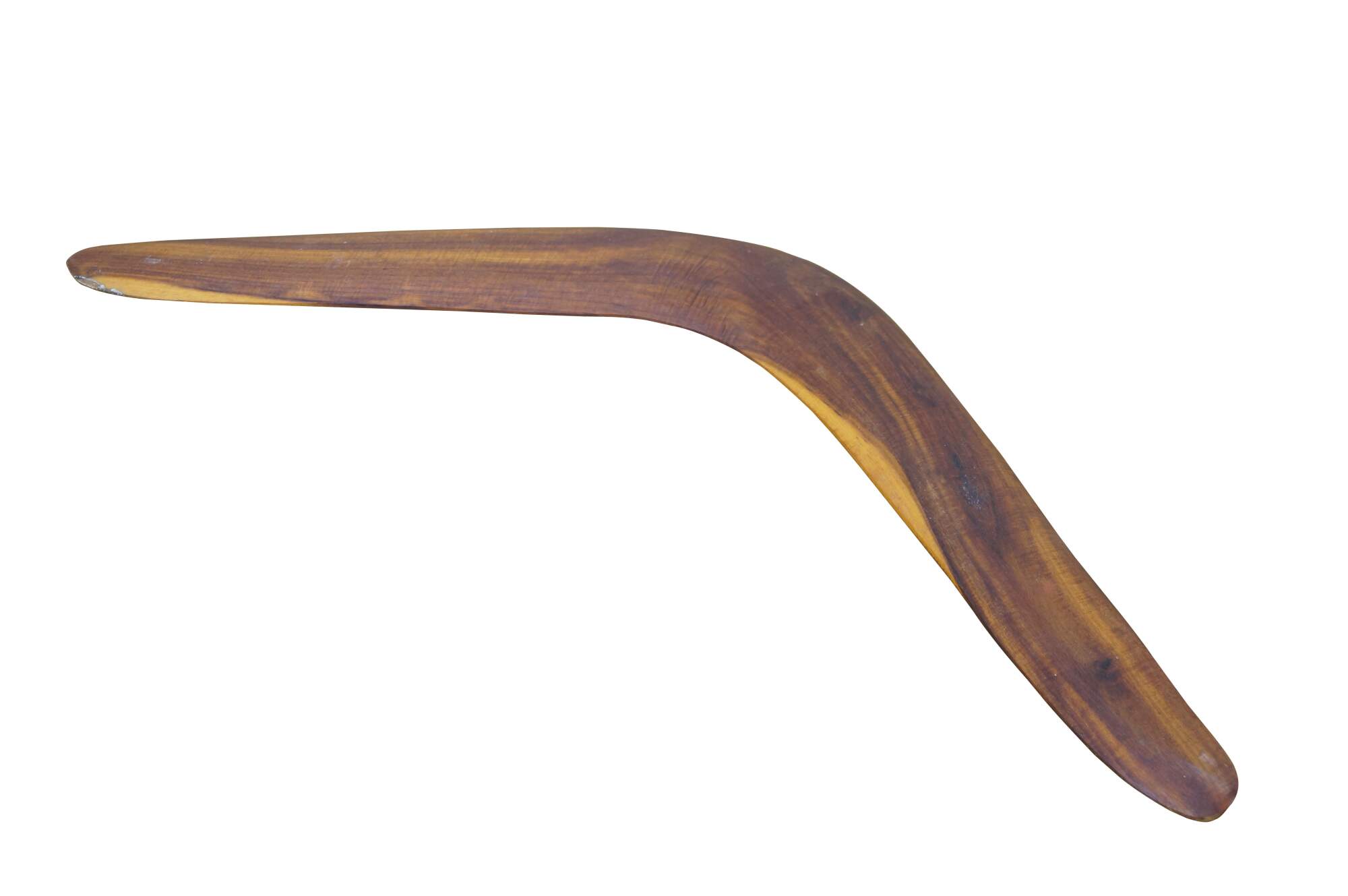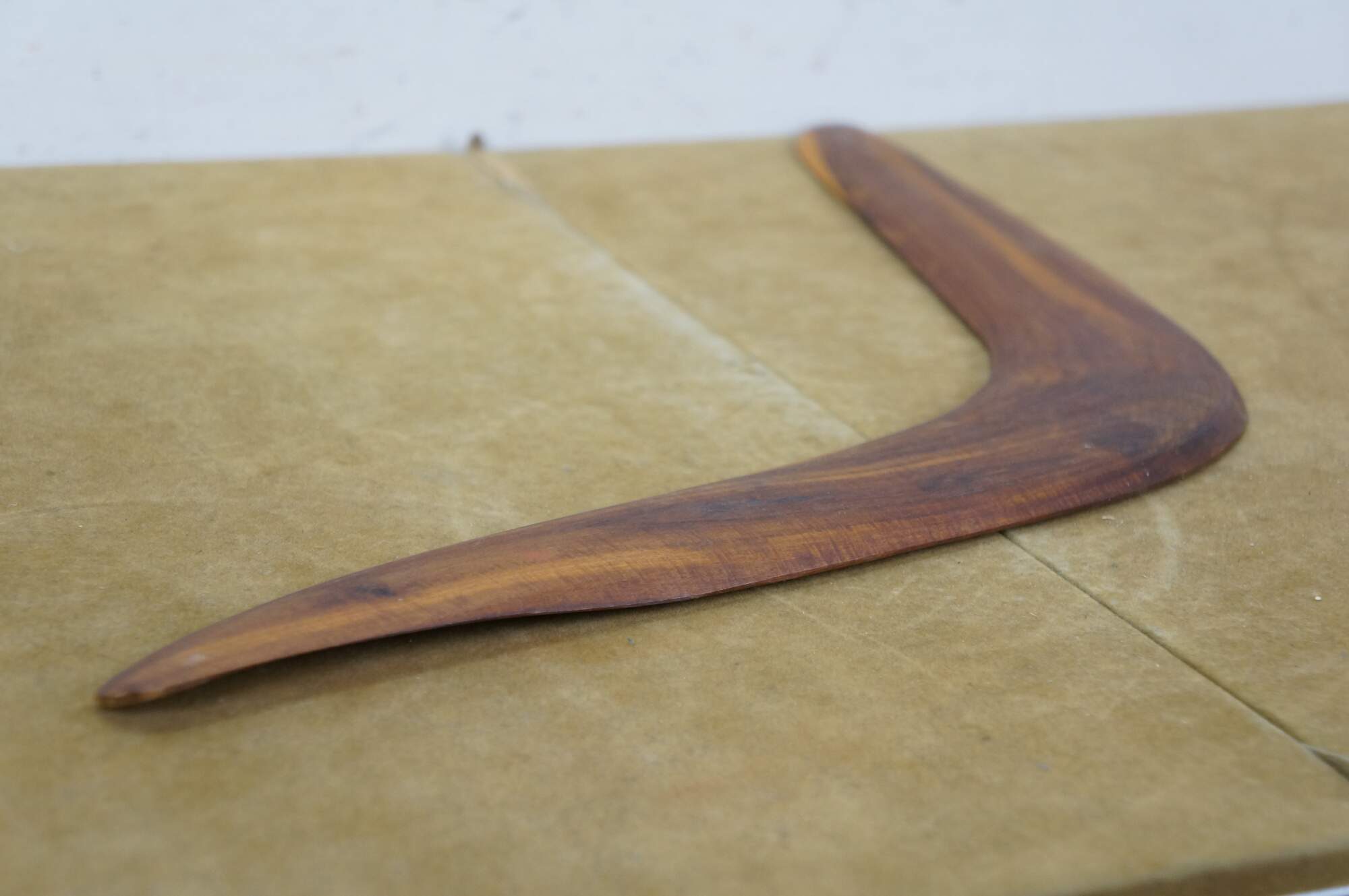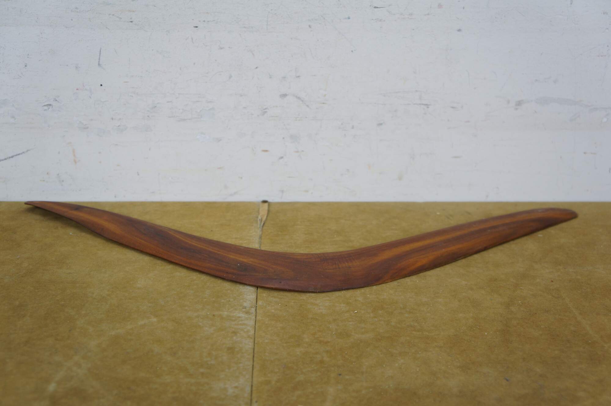 Late 20th century Australian aboriginal wooden boomerang - symmetrical shape with a beautiful two toned grain.