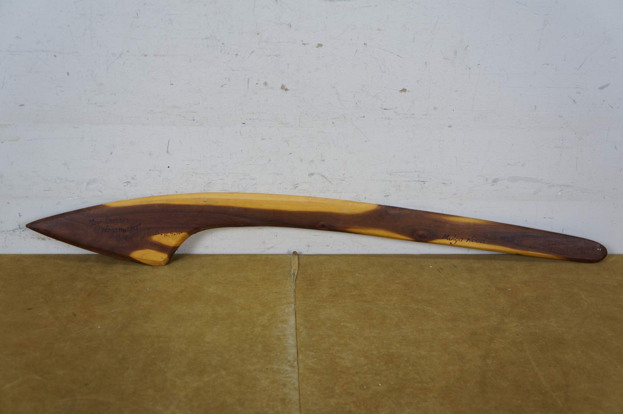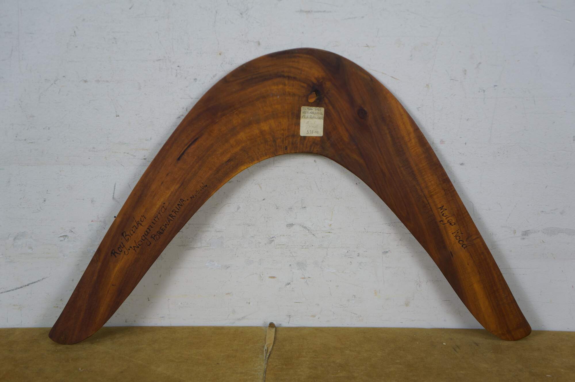 2 Roy Barker Signed Australian Aboriginal Mulga Wood Boomerangs Throwing Sticks