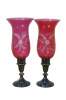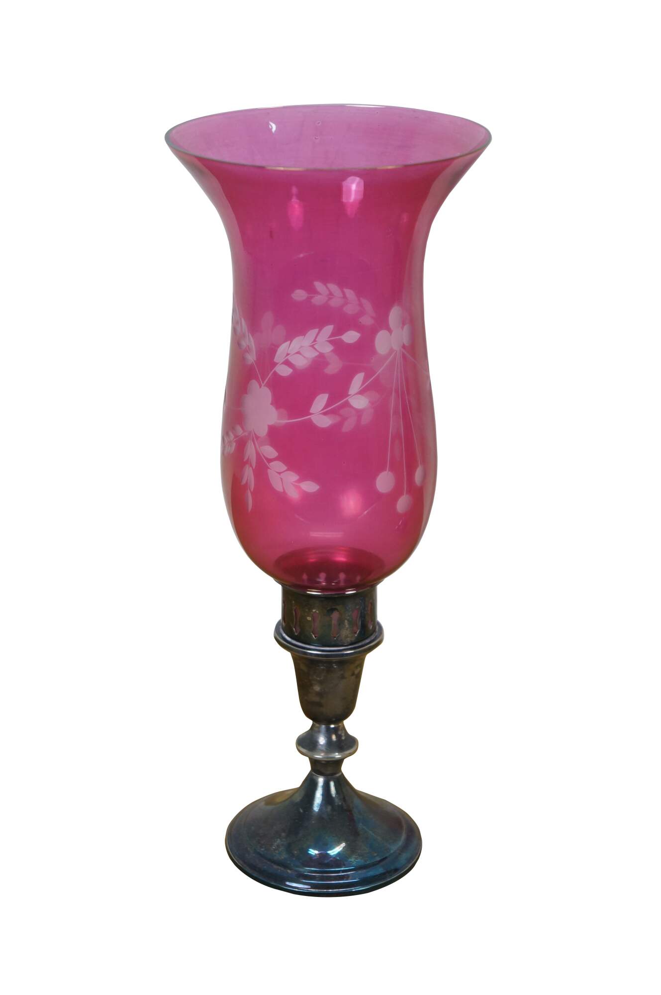 2 Towle 3180 Silverplate Cranberry Glass Hurricane Candle Holder Pair