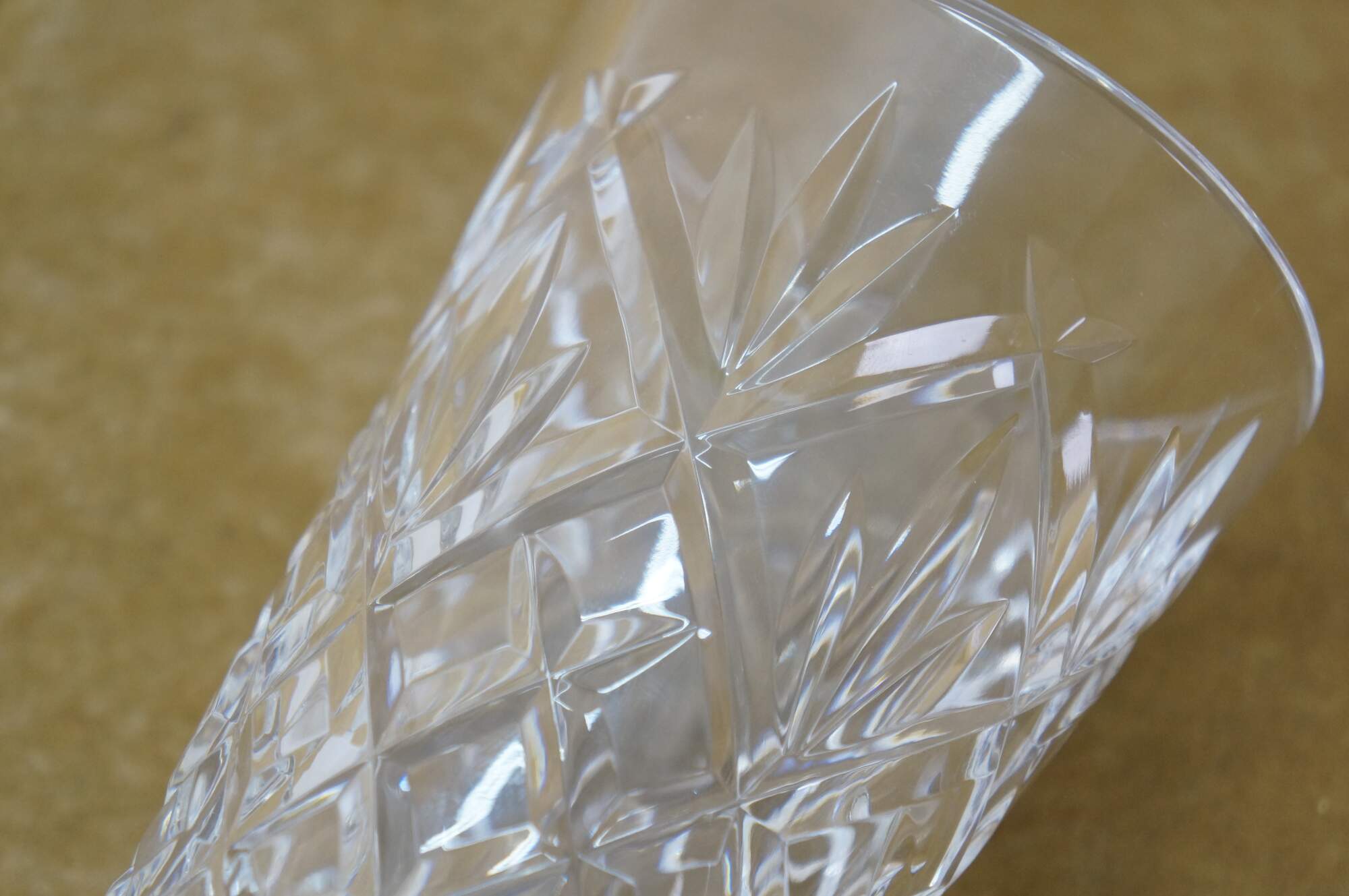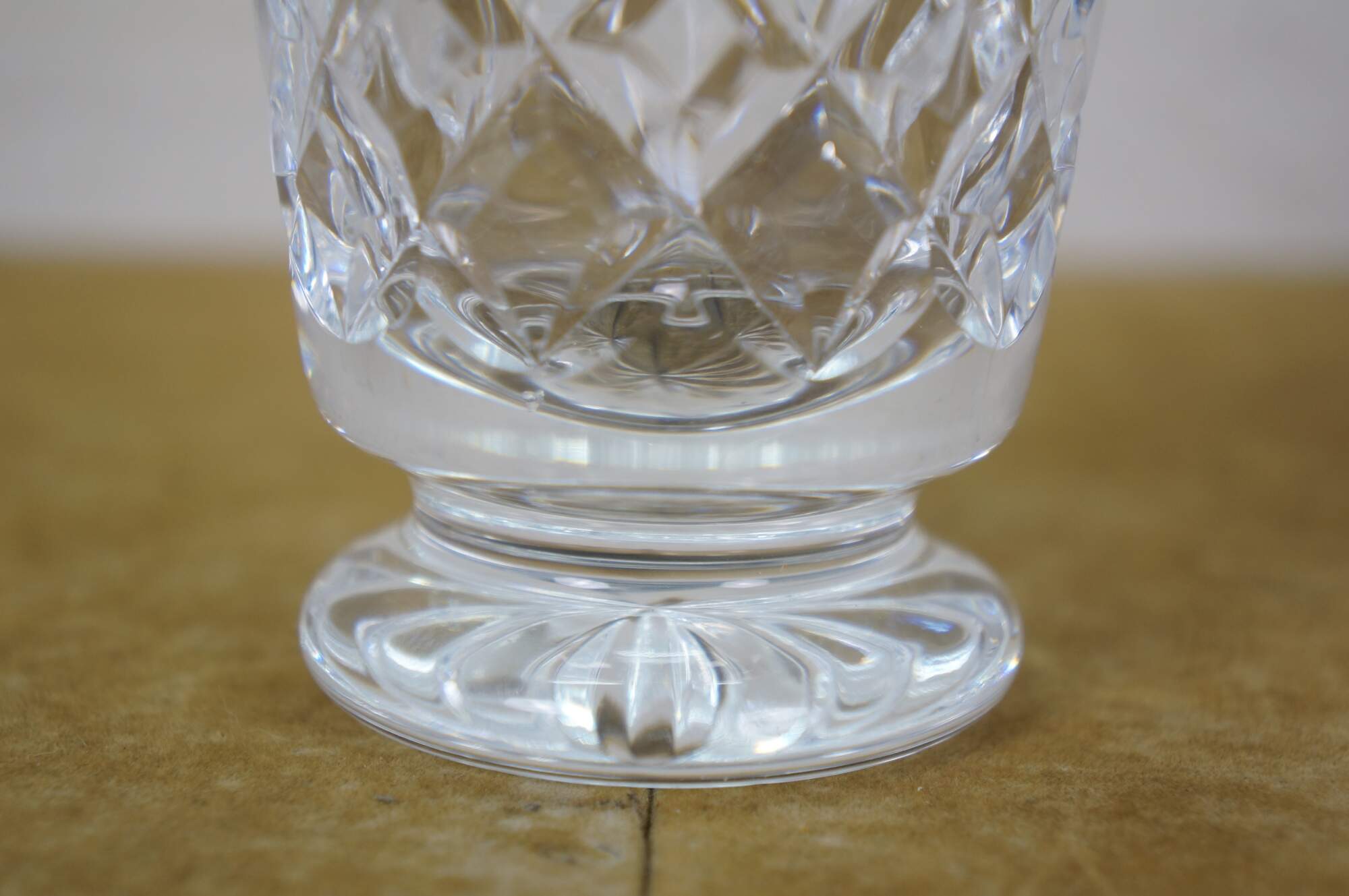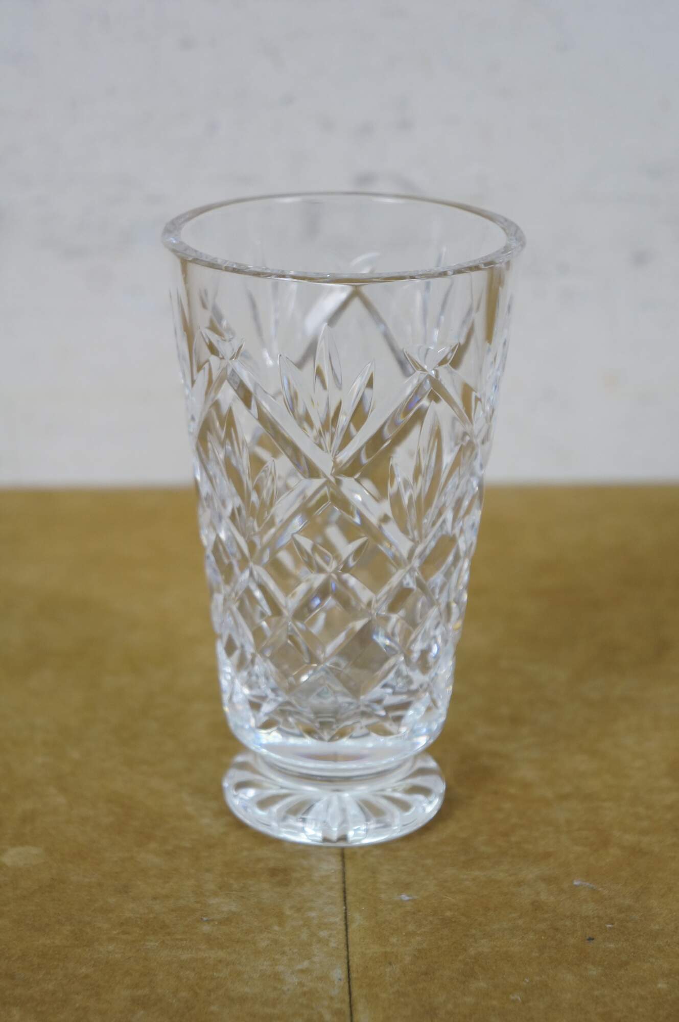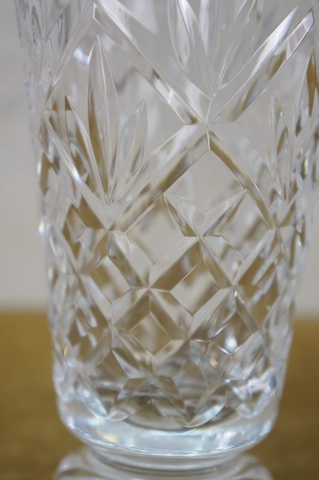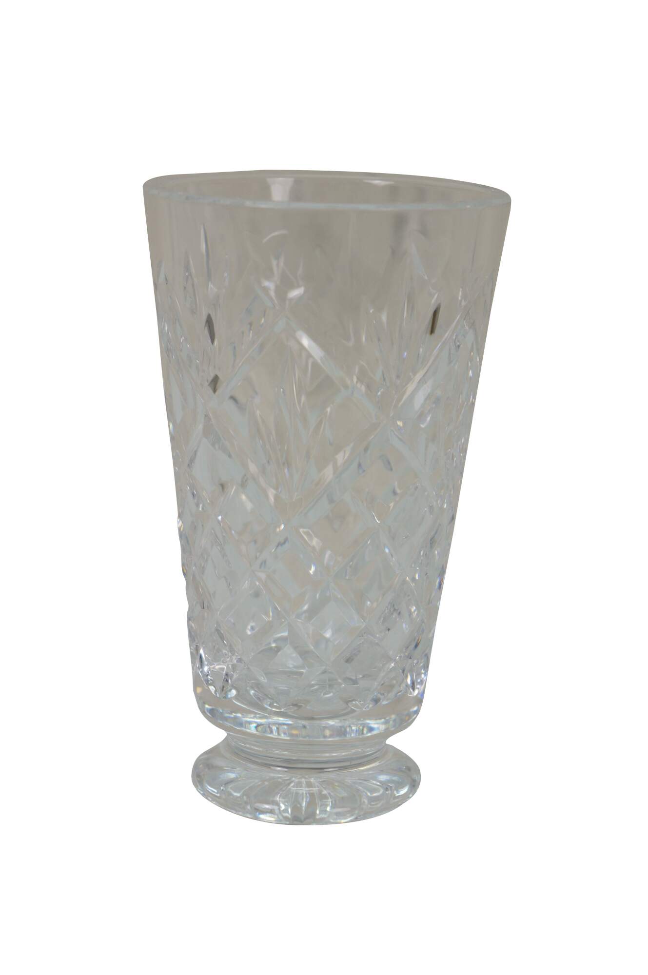 Late 20th century Waterford clear cut crystal Innisfree flower vase. Round pedestal foot with trumpet shaped body with diamond and fan shaped cuts.