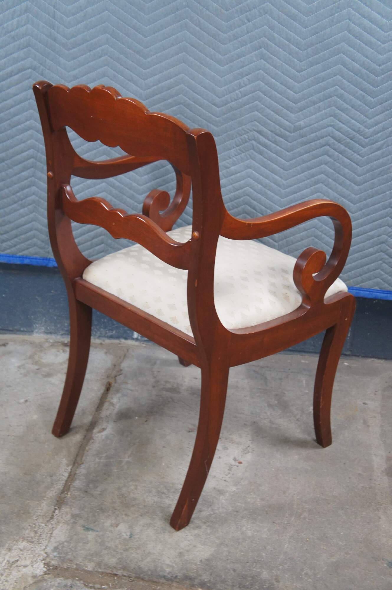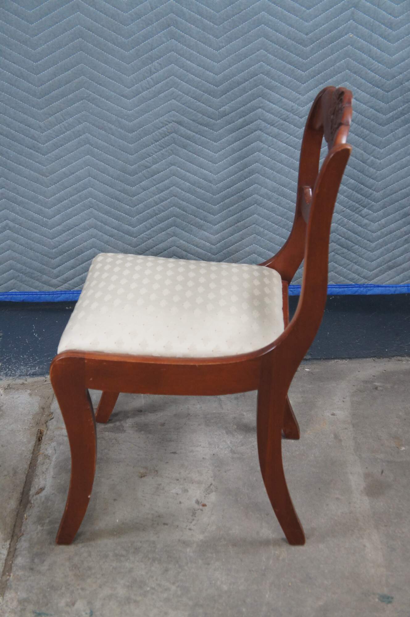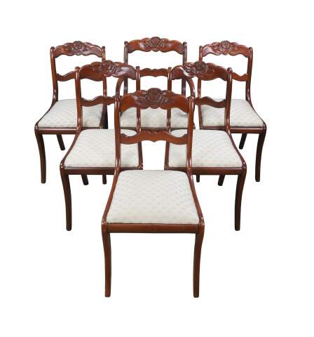 Vintage Willett Wildwood Cherry collection dining chairs featuring a serpentine ladderback design with rose medallion crest.