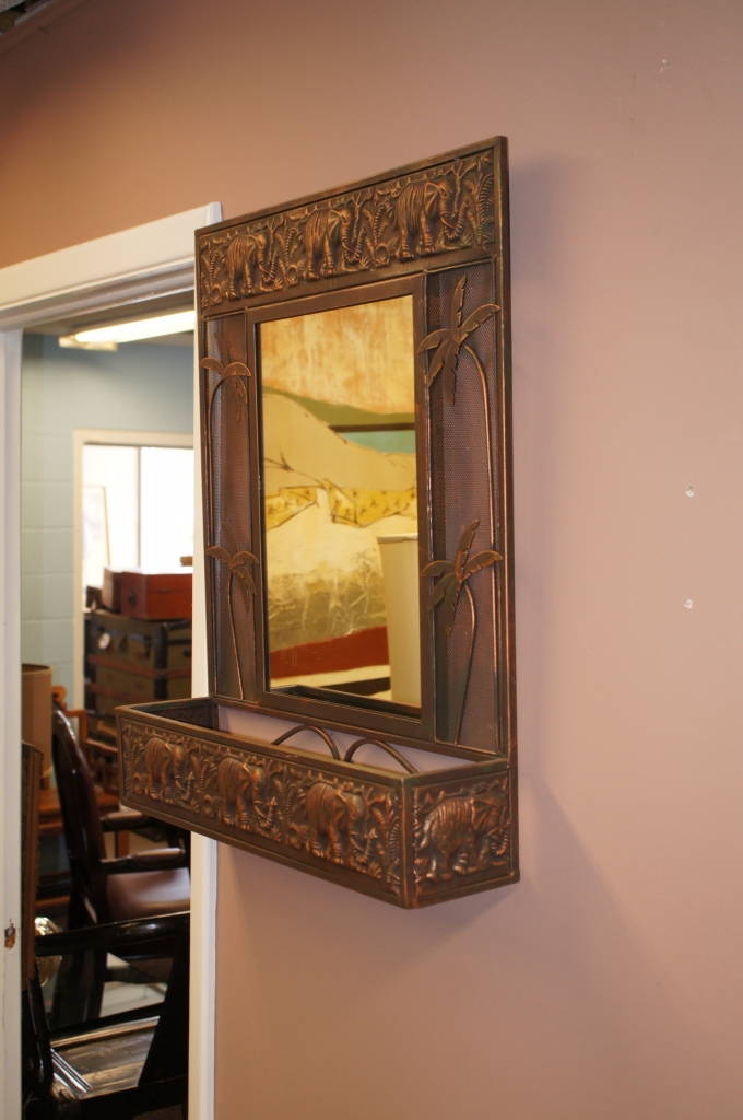 Amazing Medal Elephant Mirror With Storage Basket Ornate Detailed Floral Pattern