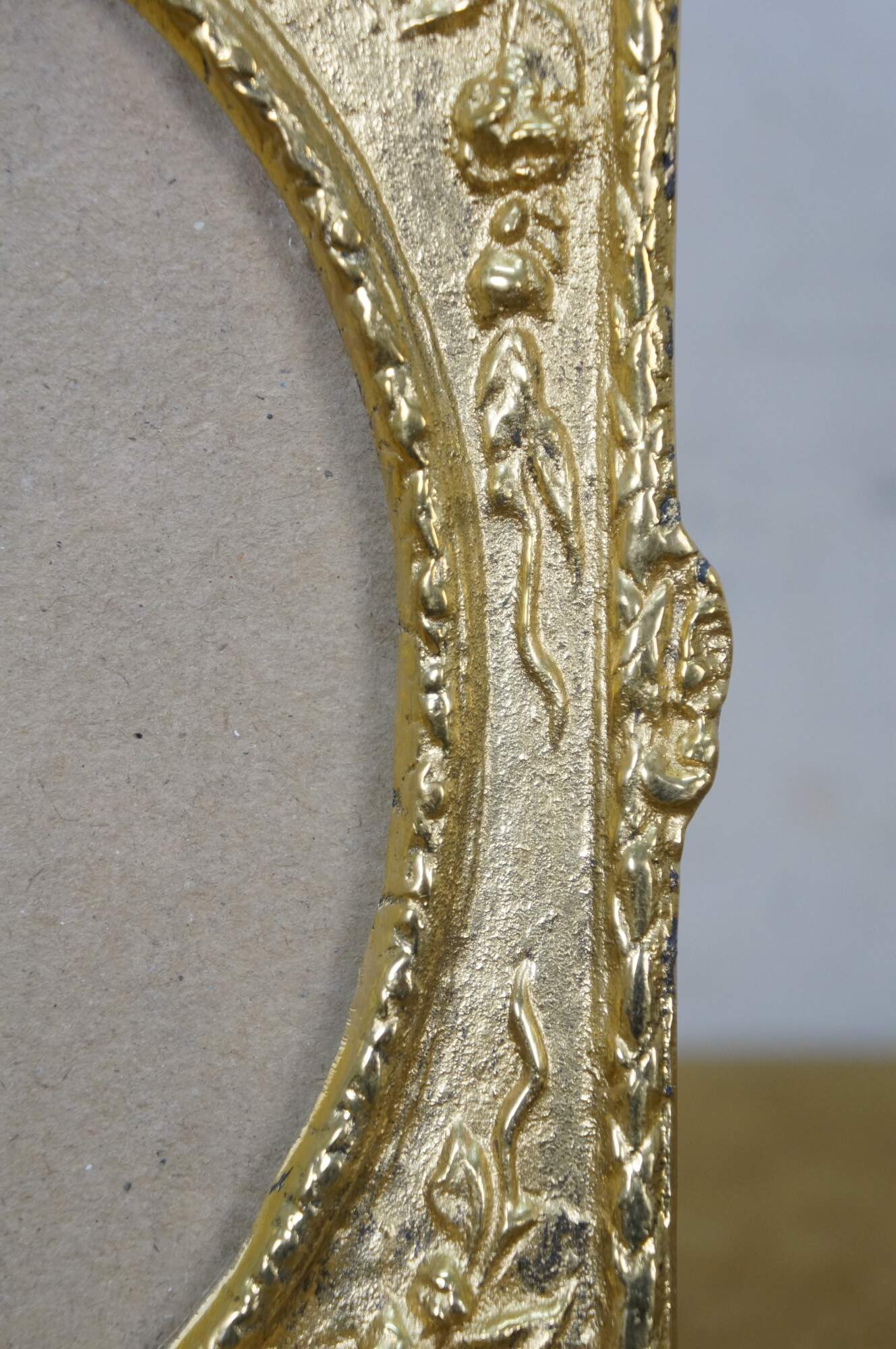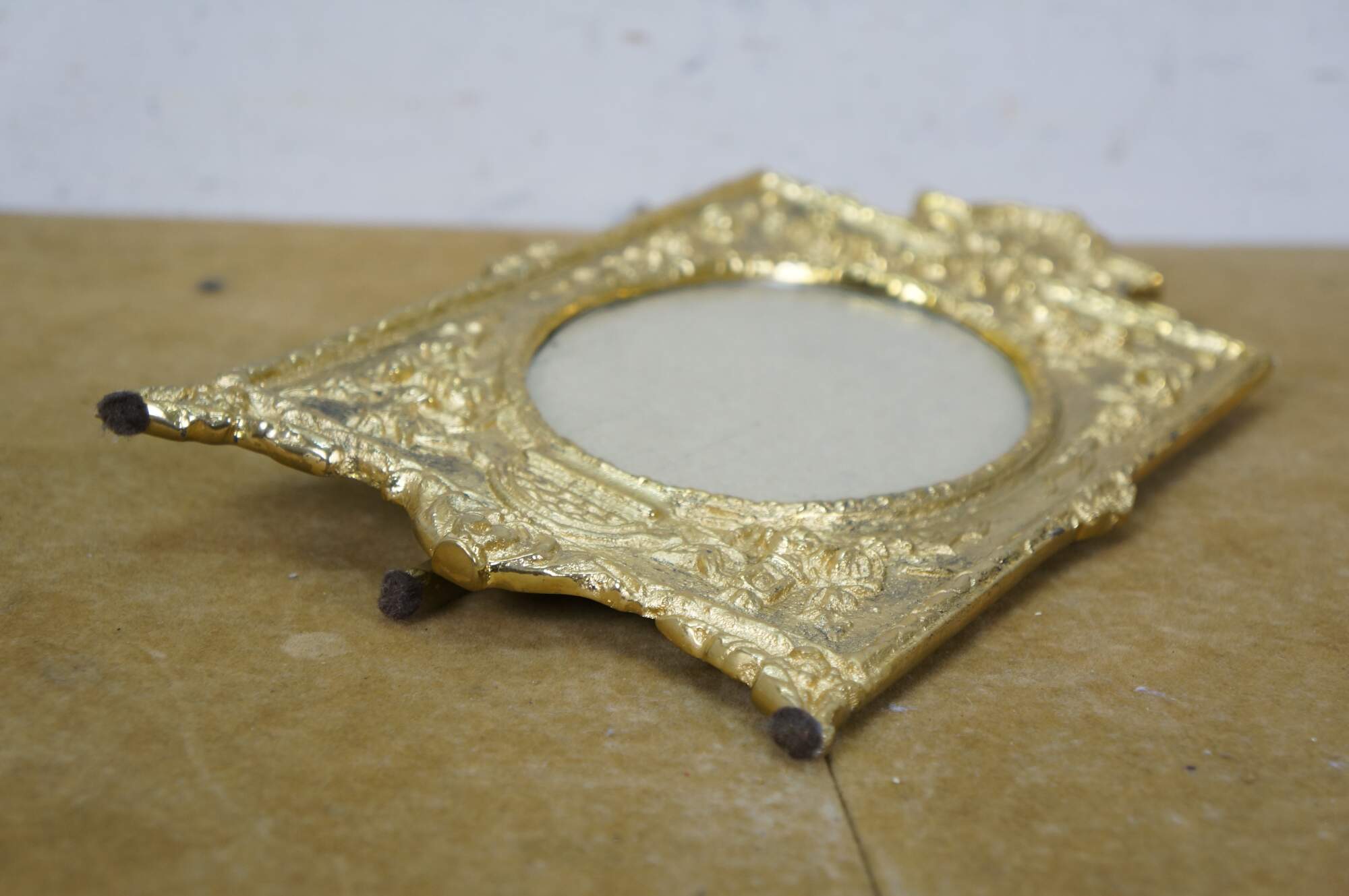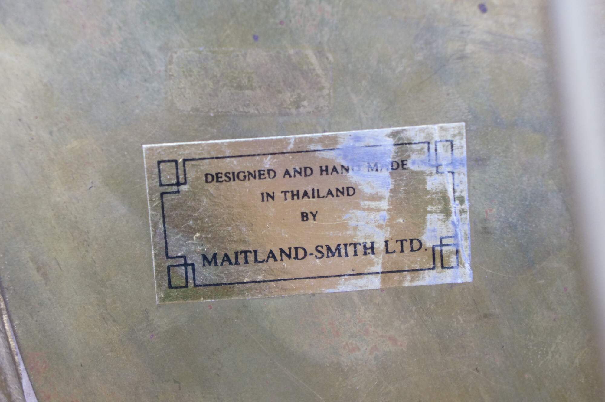 Late 20th century Maitland Smith antiqued brass photo frame with baroque styling and easel back. Designed and Handmade in Thailand by Maitland-Smith Ltd.