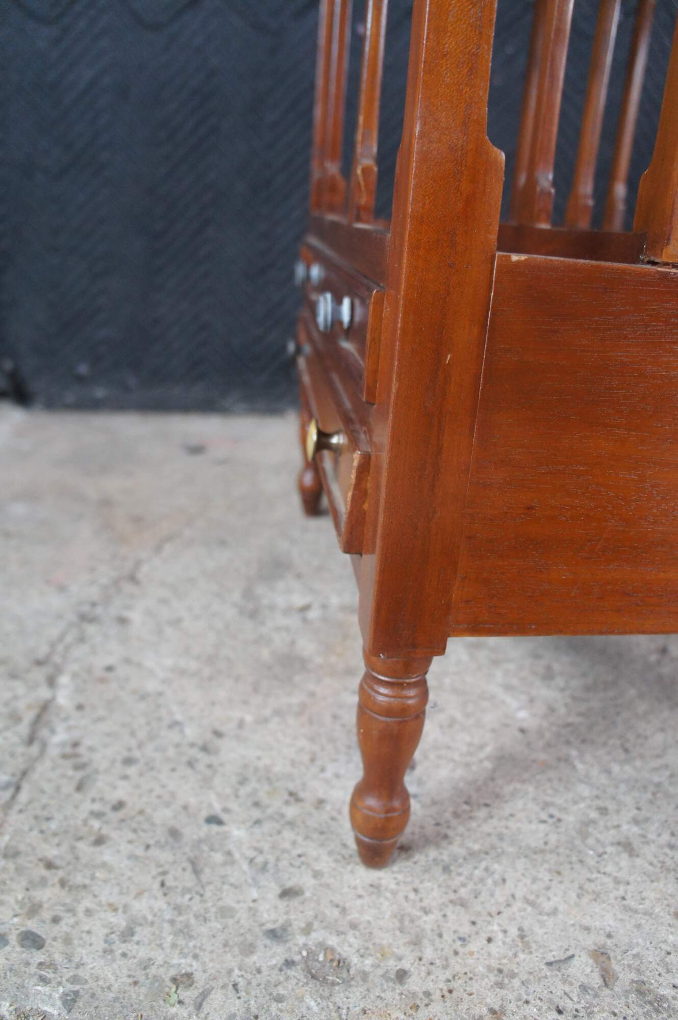 Late 20th Century Georgian Style Canterbury Magazine or Sheet Music Rack. Made from mahogany with five sloped rails along the top separating the compartments and two lower dovetailed drawers. The stand is supported by turned legs with arrow feet.