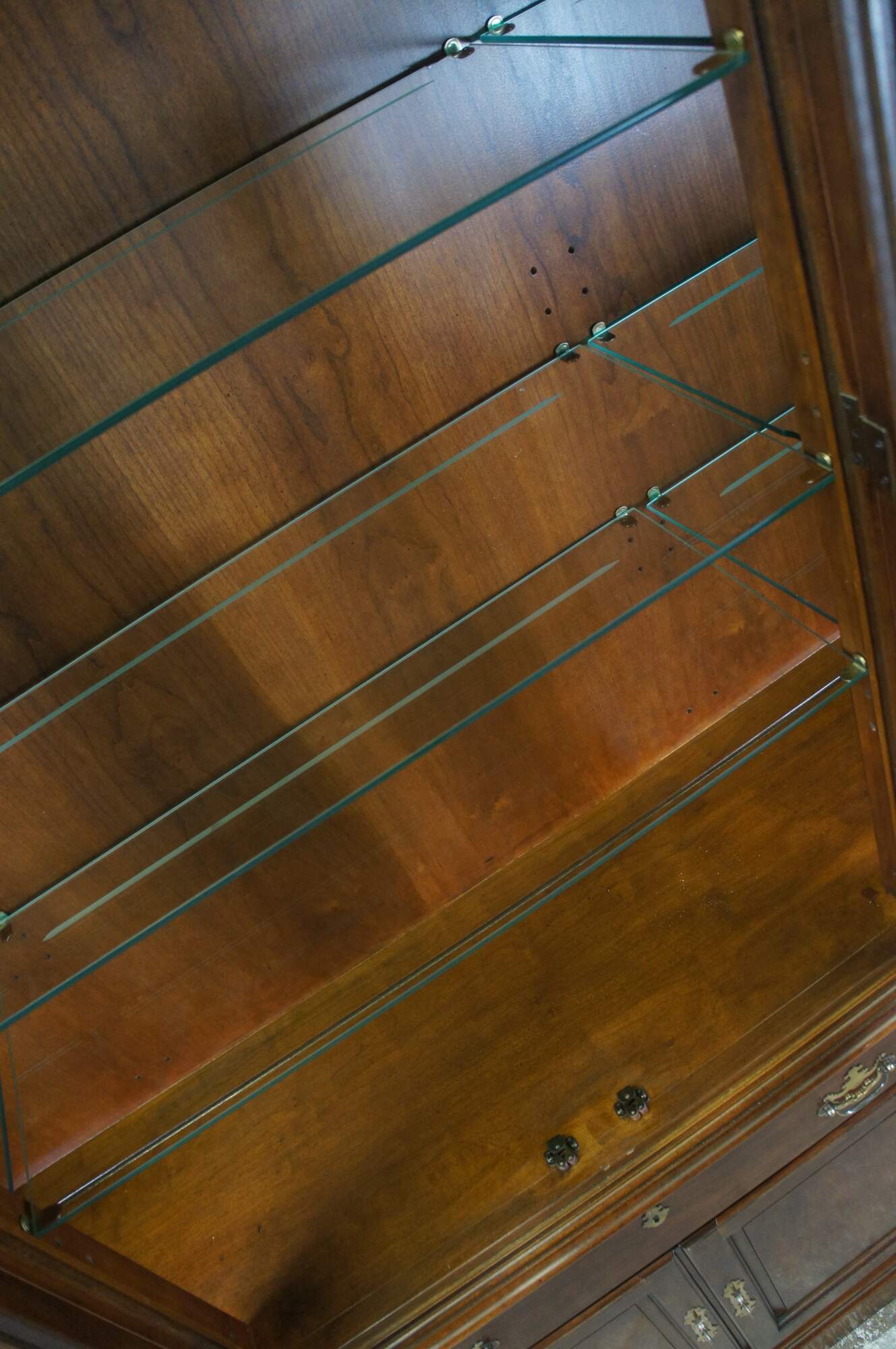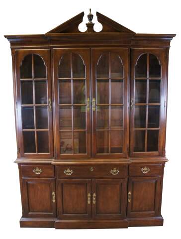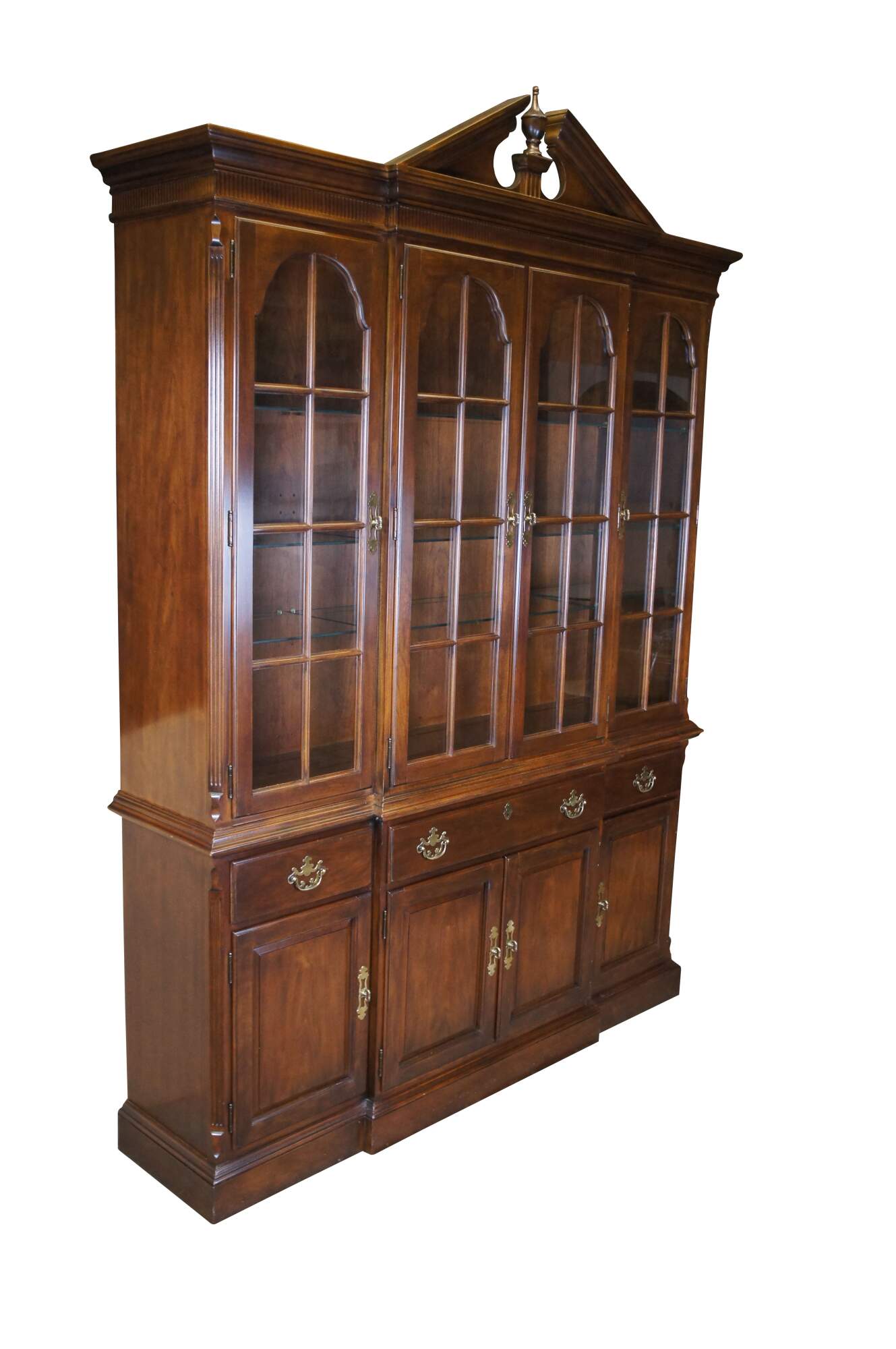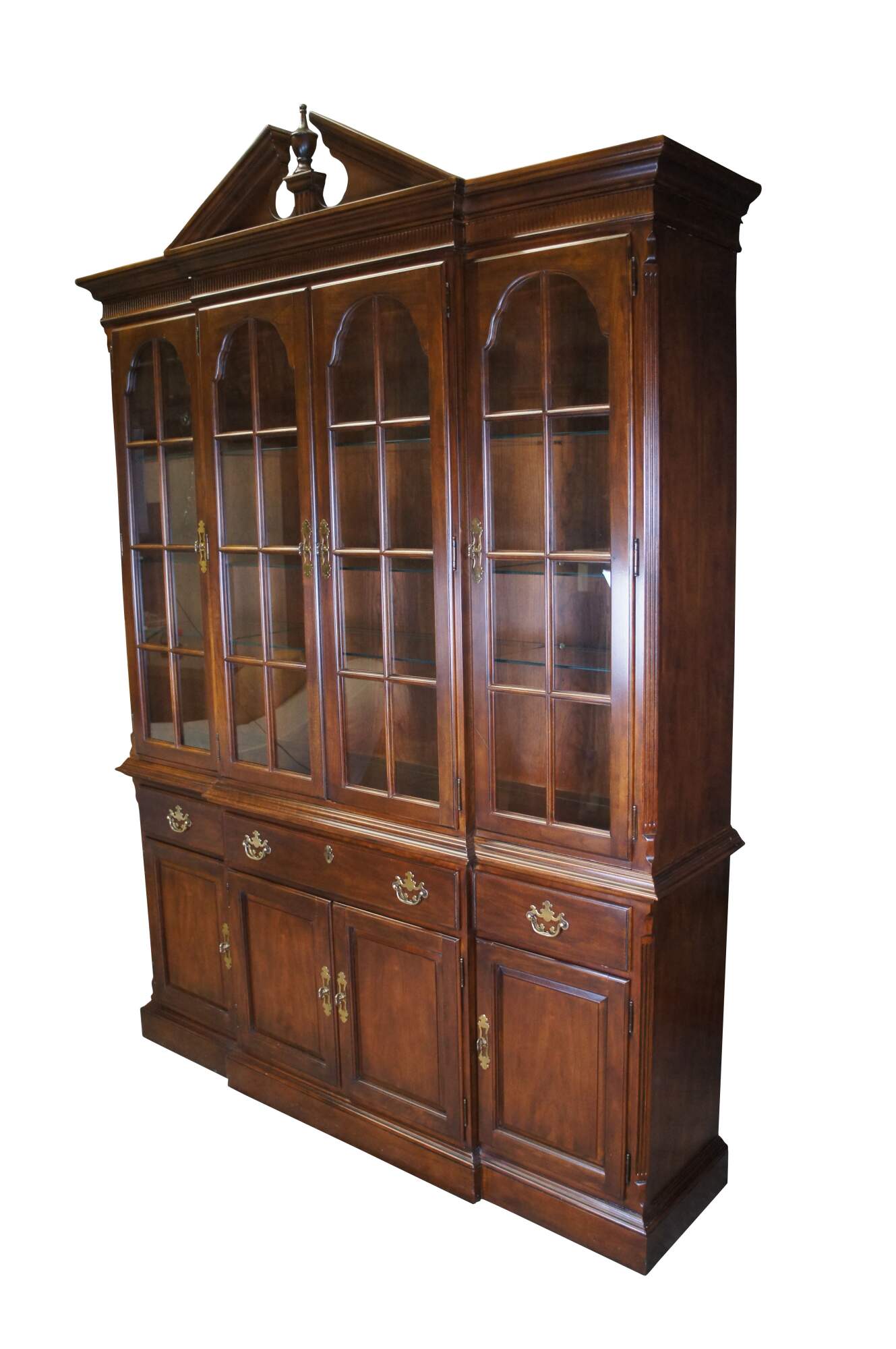 1987 Drexel Heritage Cherry Open Pediment Illuminated China Display Cabinet 92"