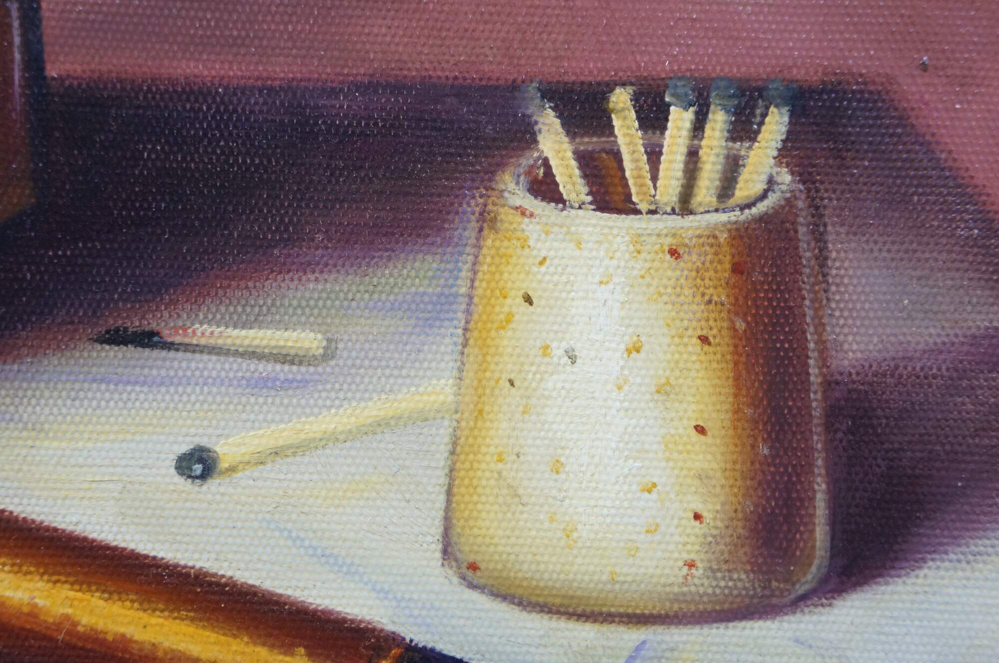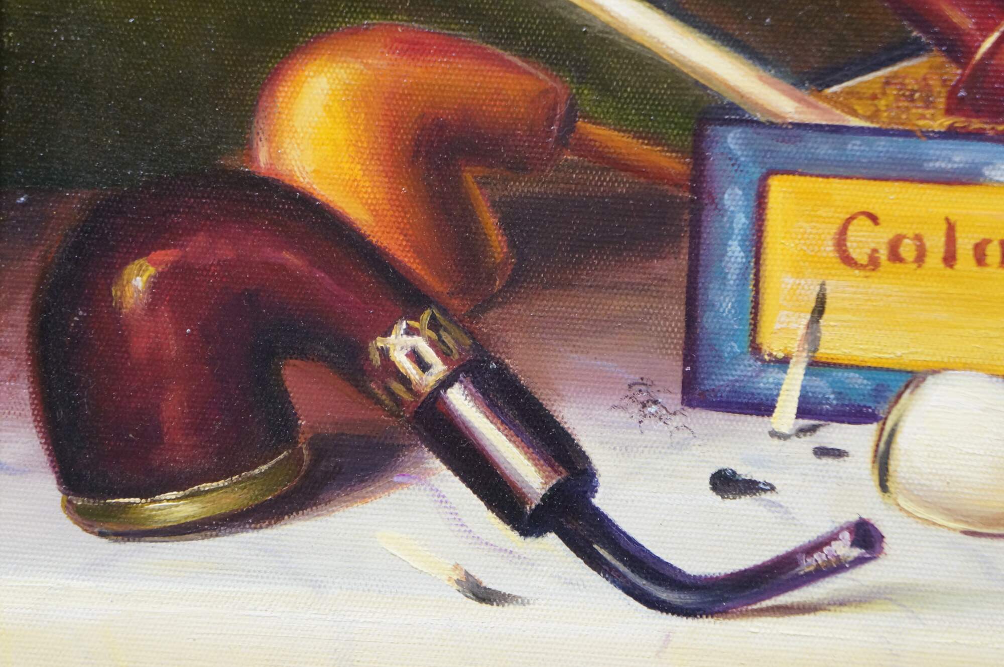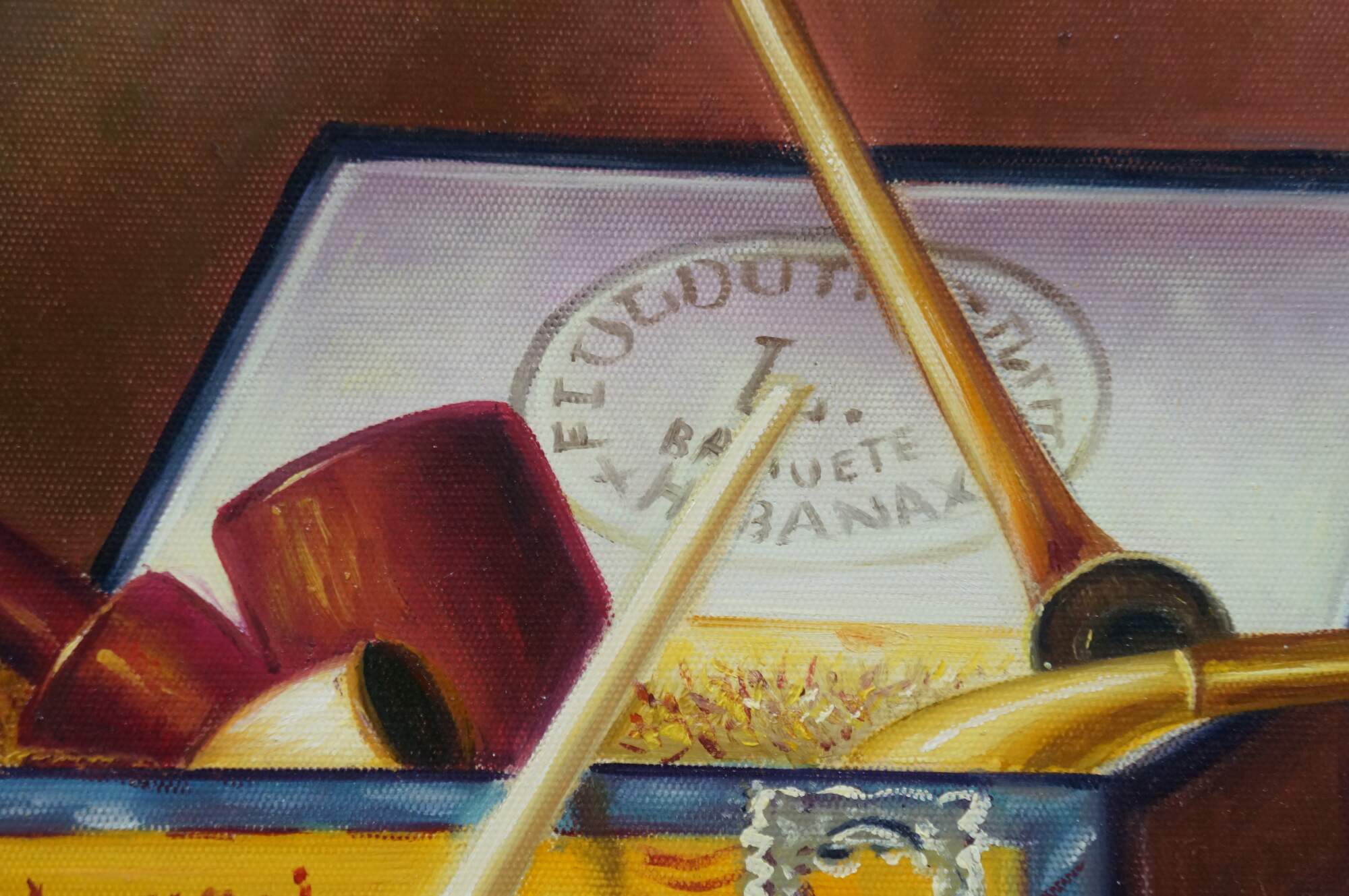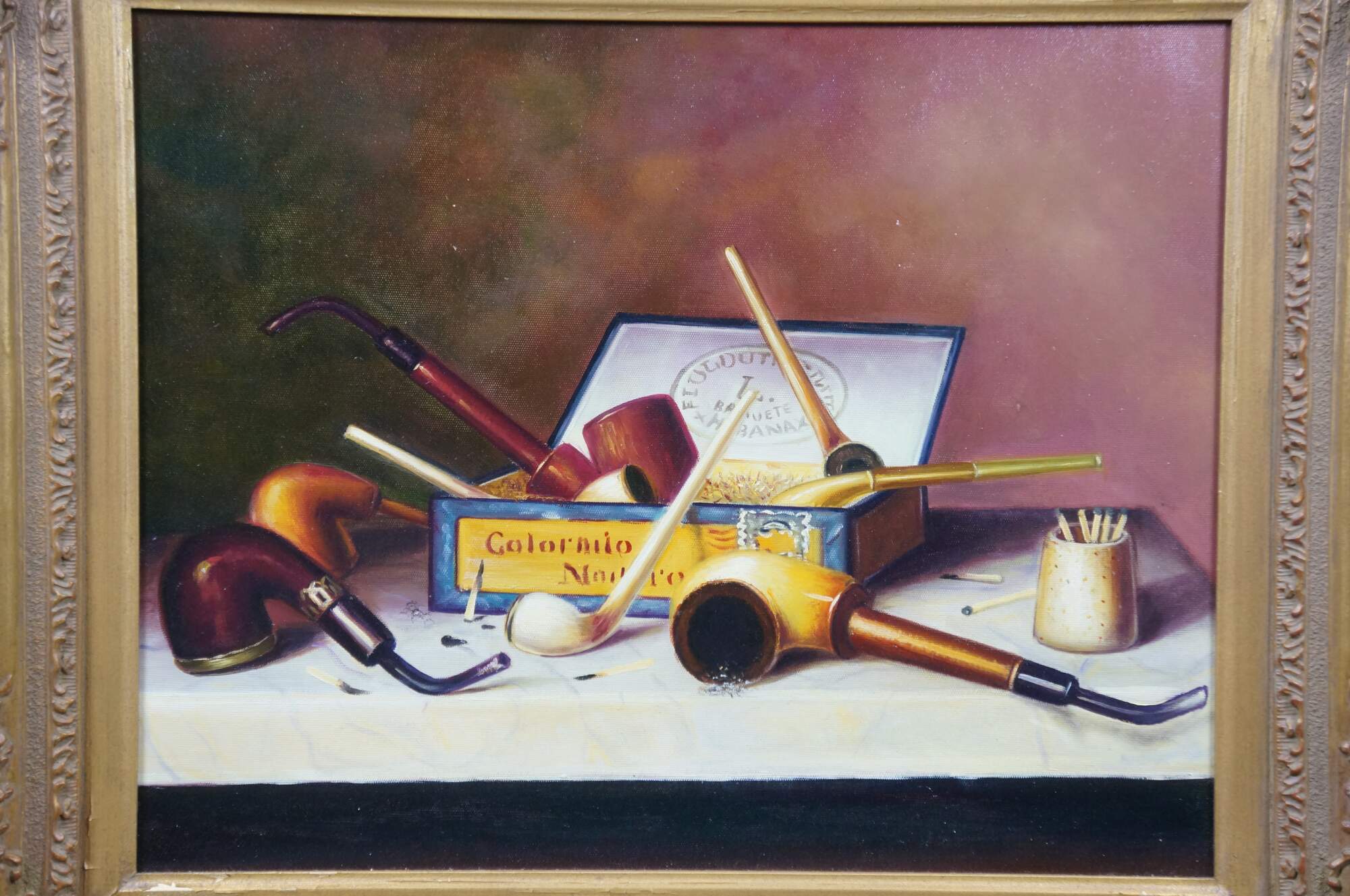 Social Club Still Life Tobacco Pipes Oil Painting After William Michael Harnett