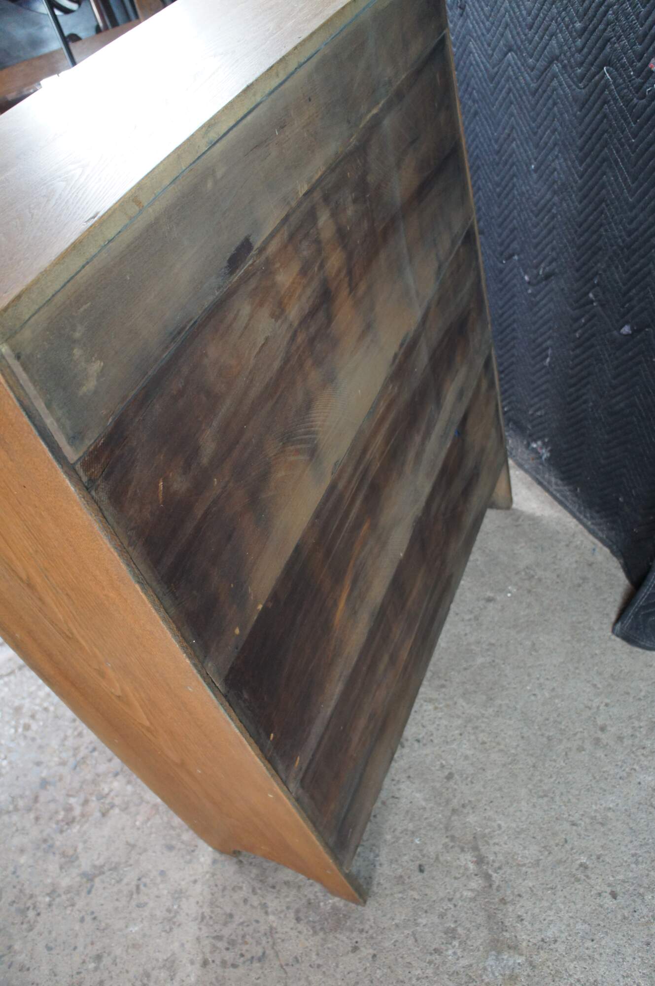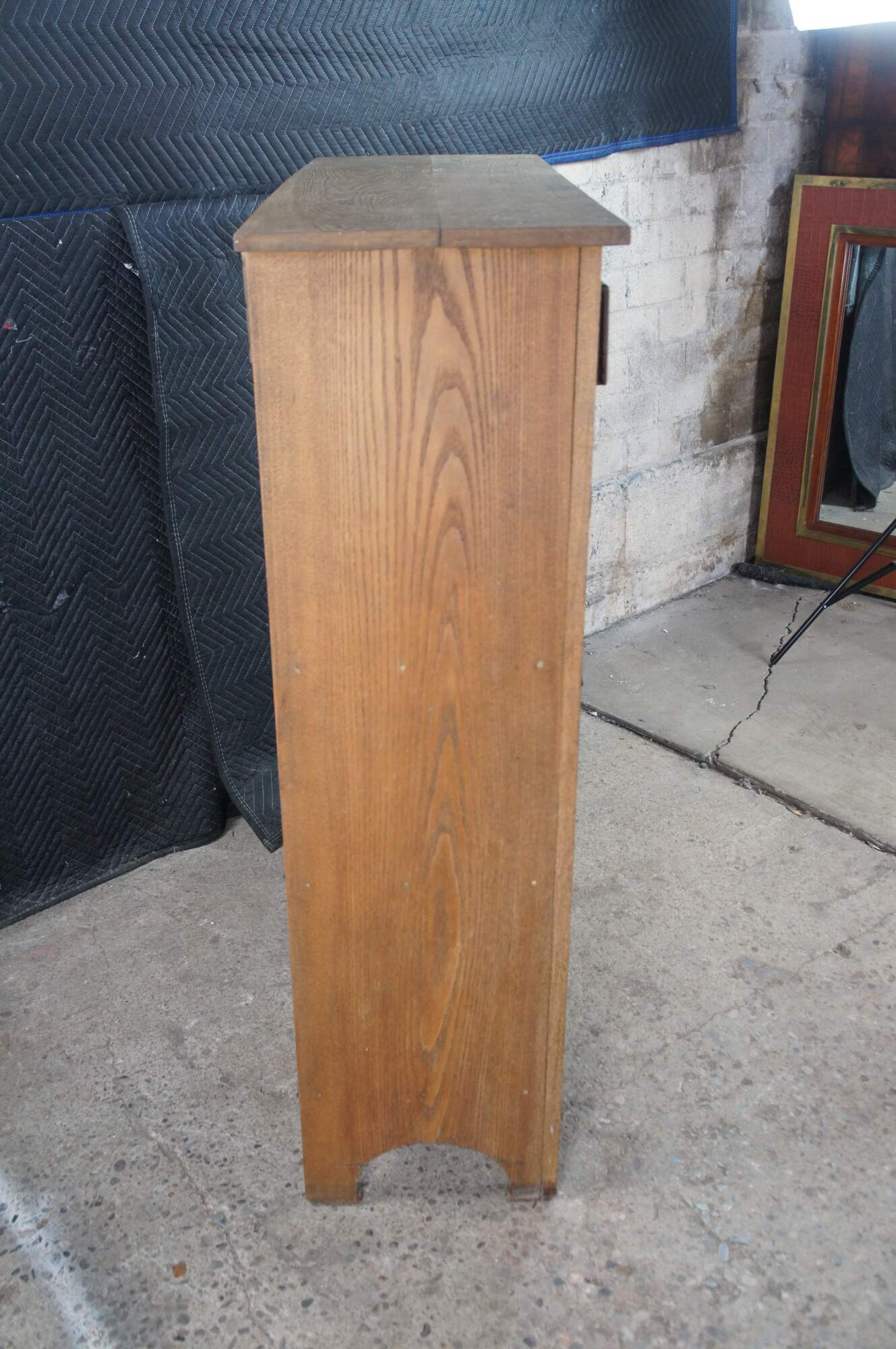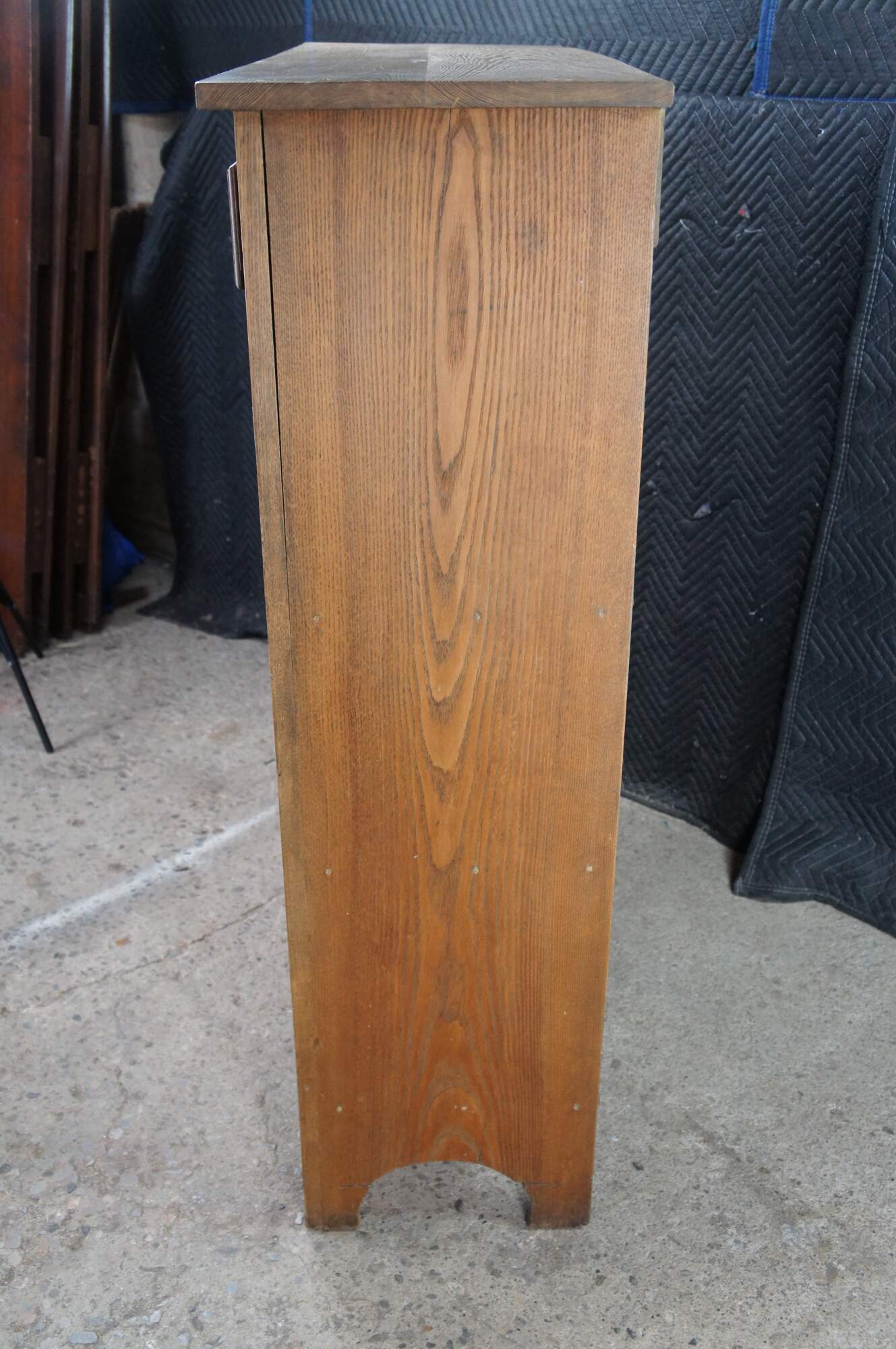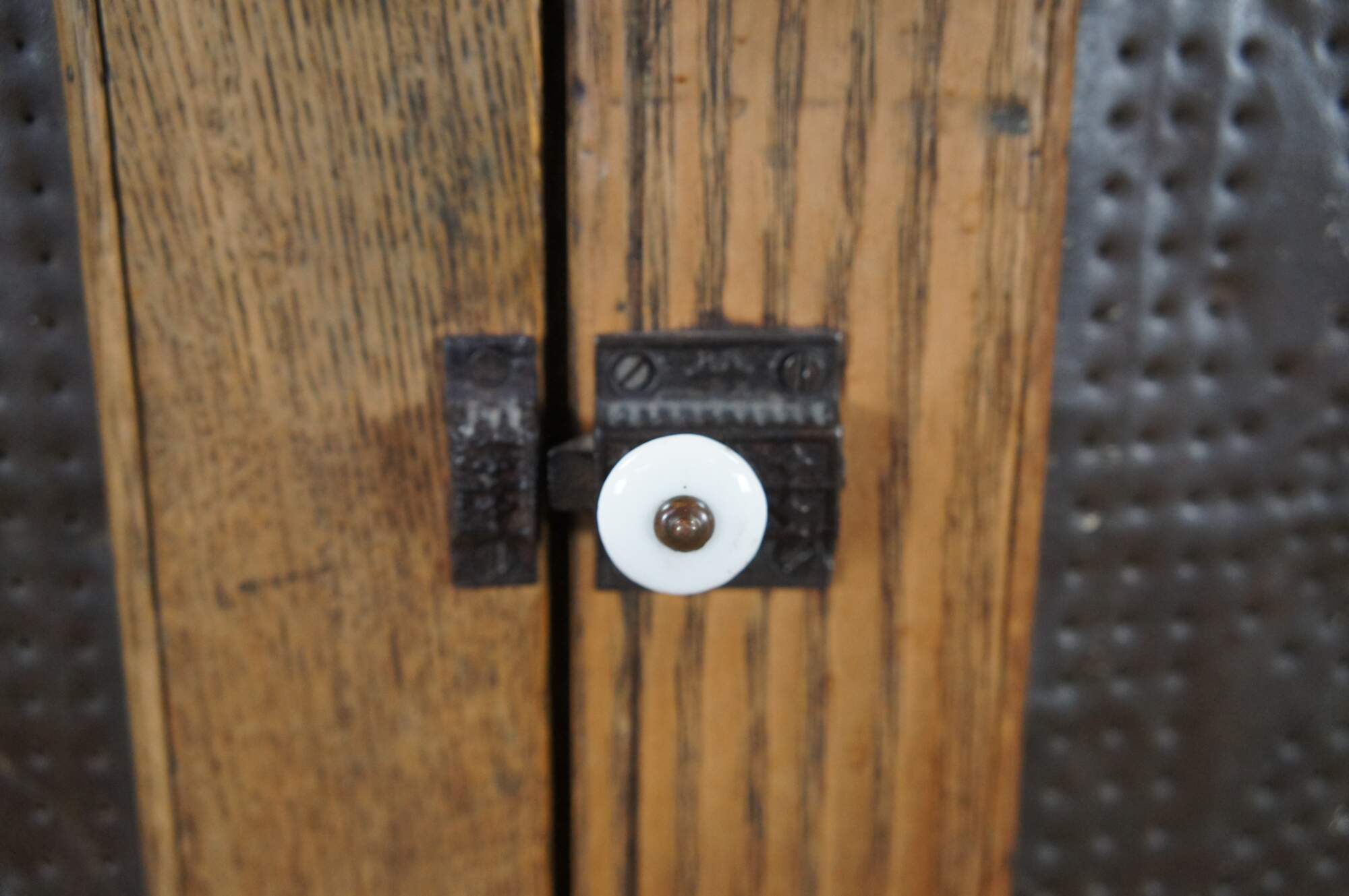 Antique Early American Country Farmhouse pie safe / cupboard / jelly cabinet, kitchen pantry. Made of quartersawn oak featuring punched tin panels with three shelves and two drawers.