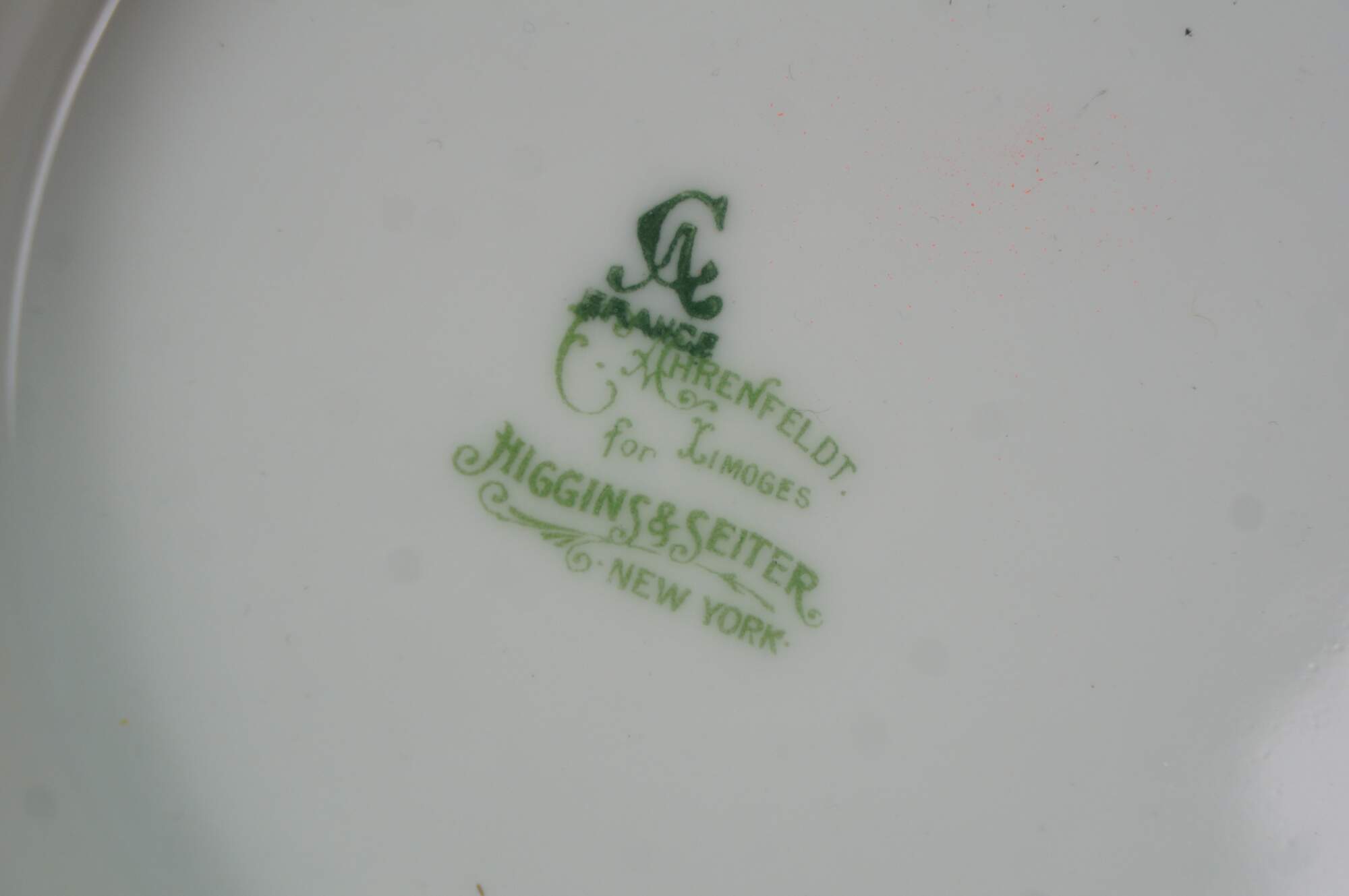 "Charles Ahrenfeldt started decorating porcelain in France in 1884. Finally he also established a porcelain factory. Earlier he gained experience in 1840s decorating porcelain in Paris and managing a firm exporting porcelain. His son Charles J. Ahrenfeldt took over the business in 1894 and built another factory in Montjovis near Limoges. In 1917 the factory was taken over by M. Grob, one of managers. His widow started running it in 1934. After buying the company in 1958 by a financial investor, the business was scaled down and in 1969 it was finally closed." (The Old Stuff)
