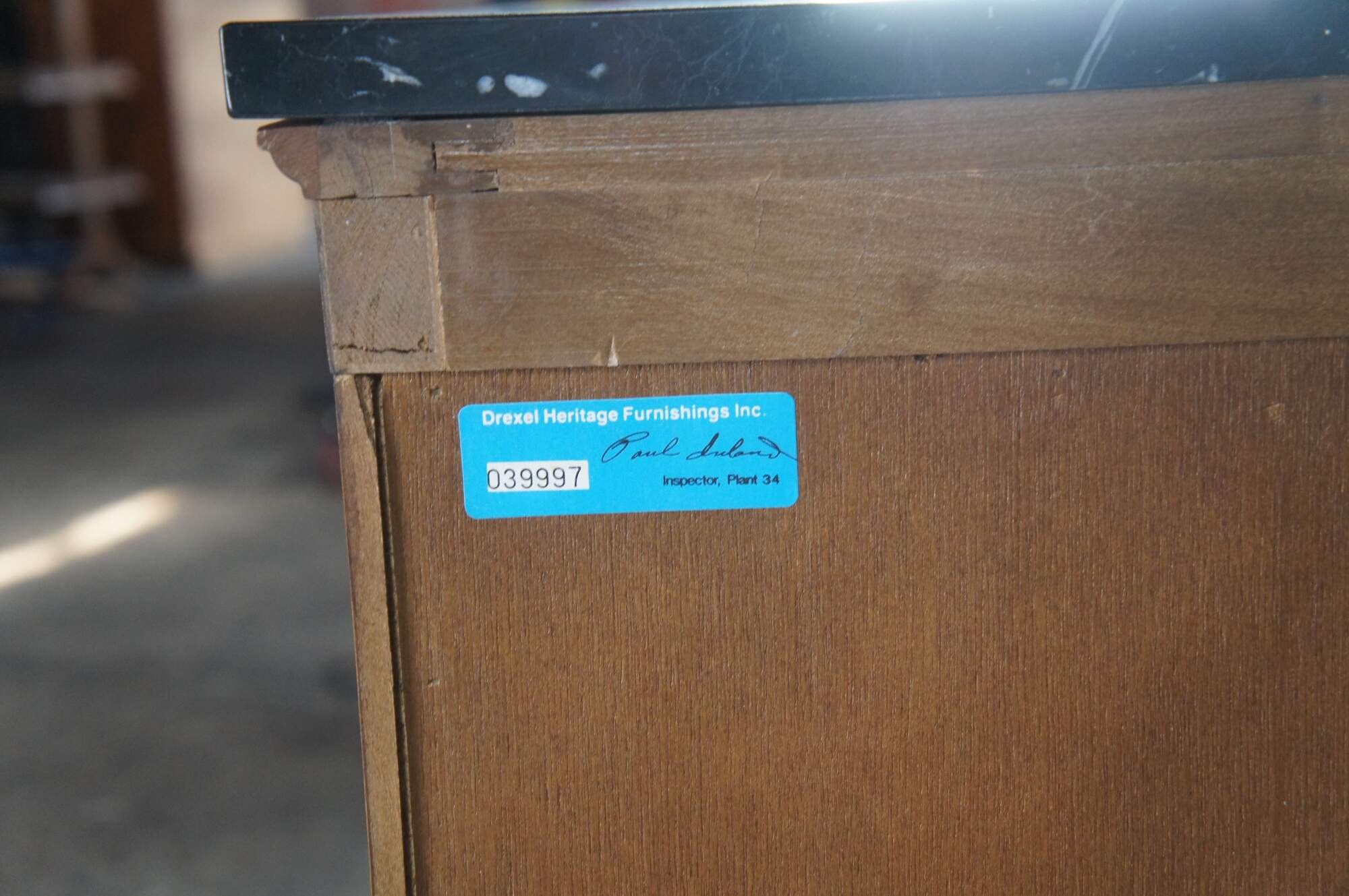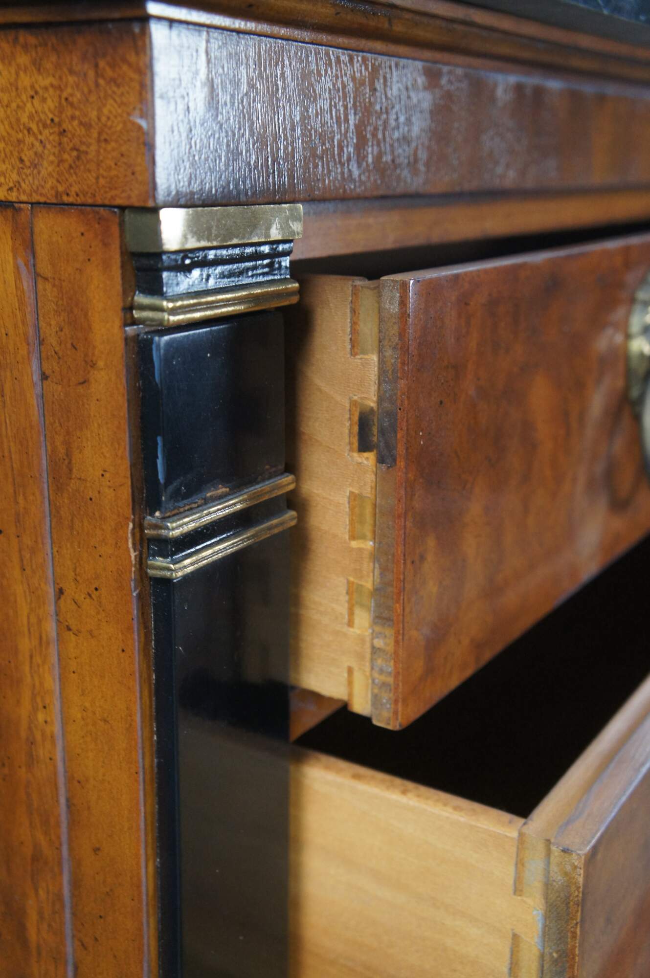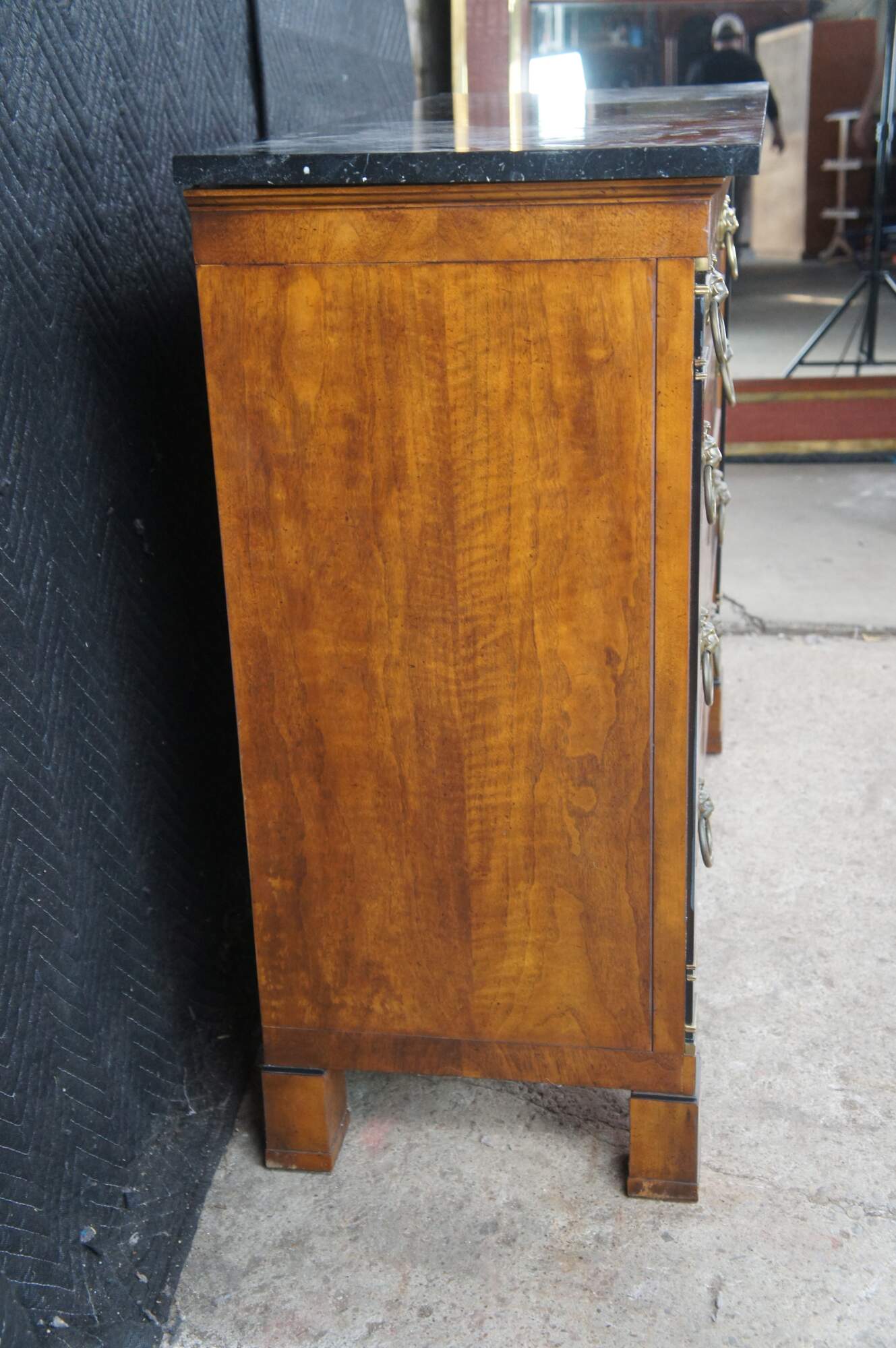 Drexel Heritage French Empire Style Walnut Burl Marble Top Commode Chest Dresser